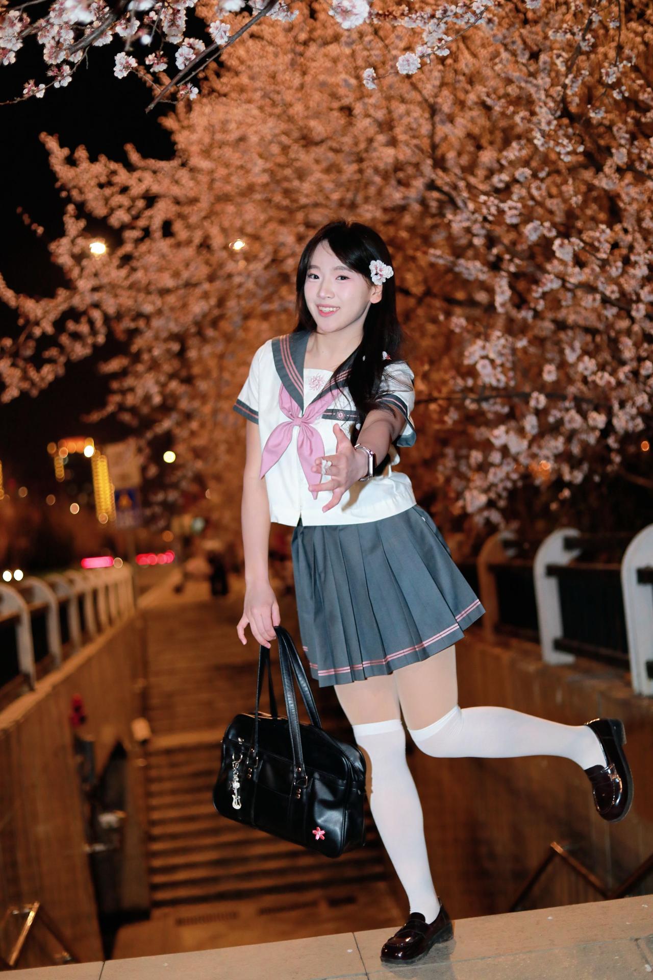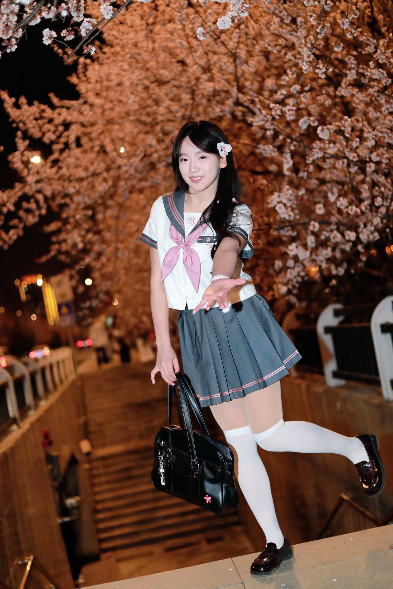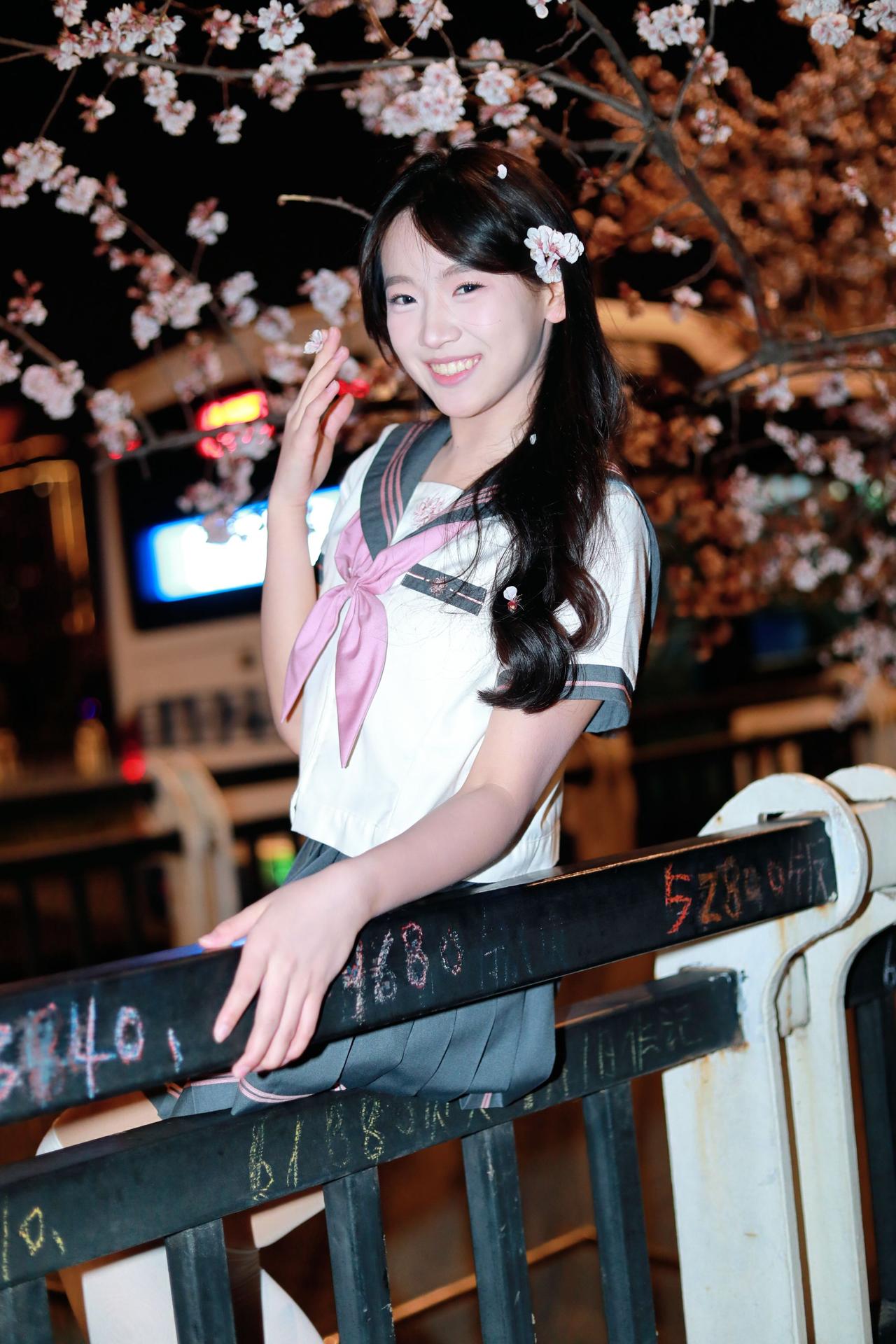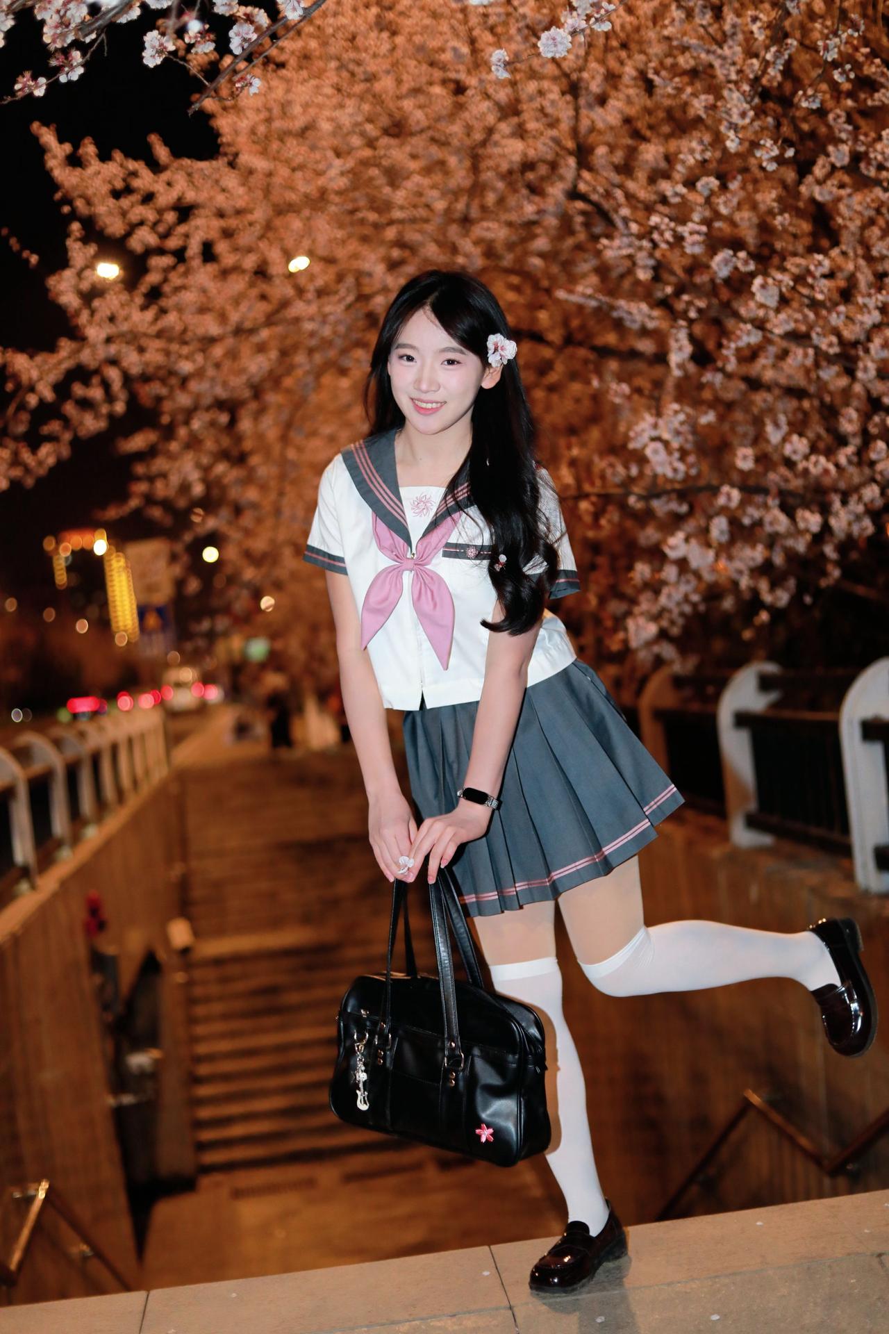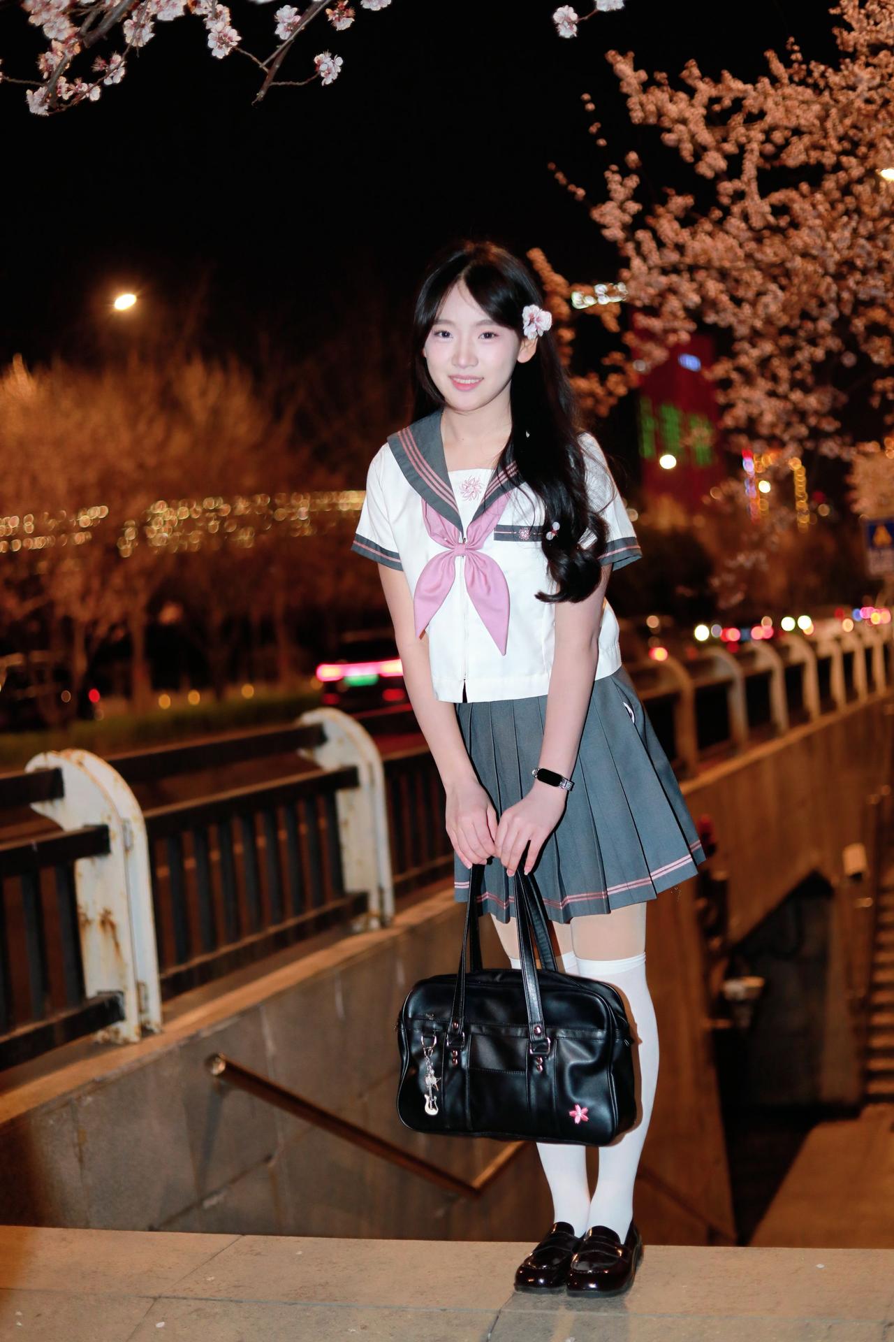 人像摄影约拍跟拍jk与杏花杏花夜景人像原创原图直出照片我镜头里的美女jk制服穿搭