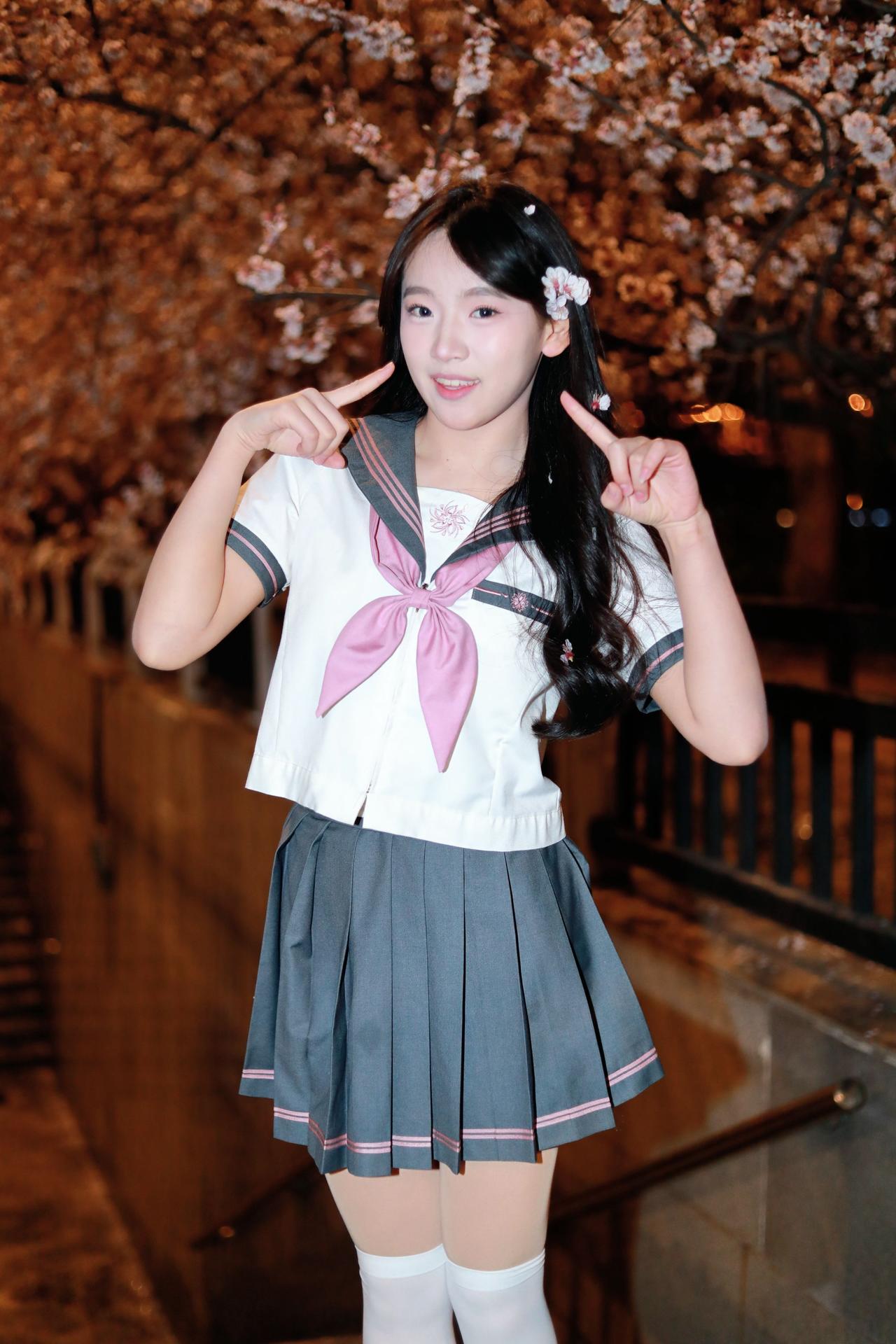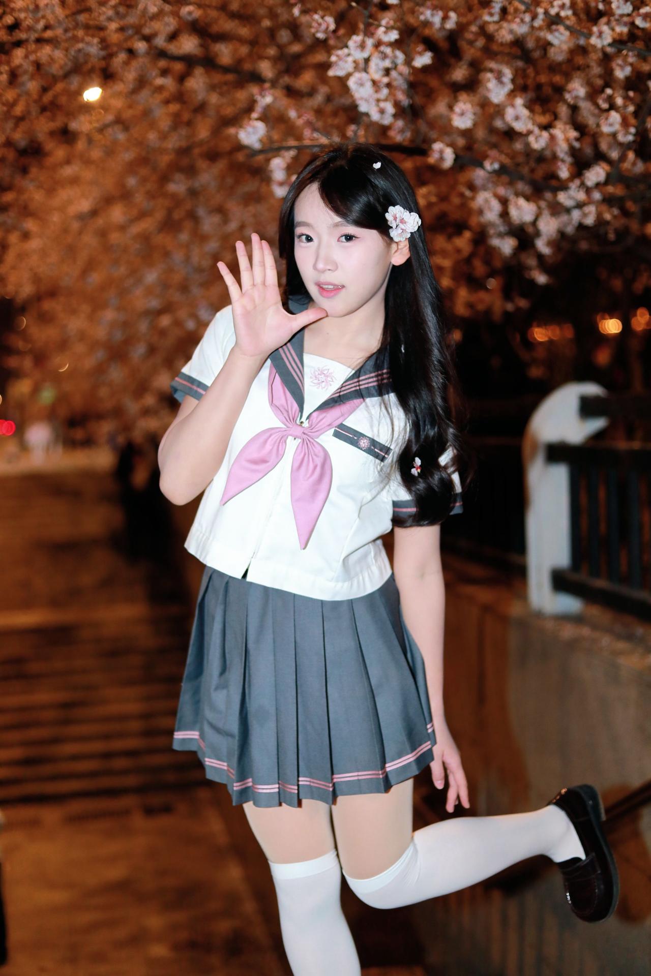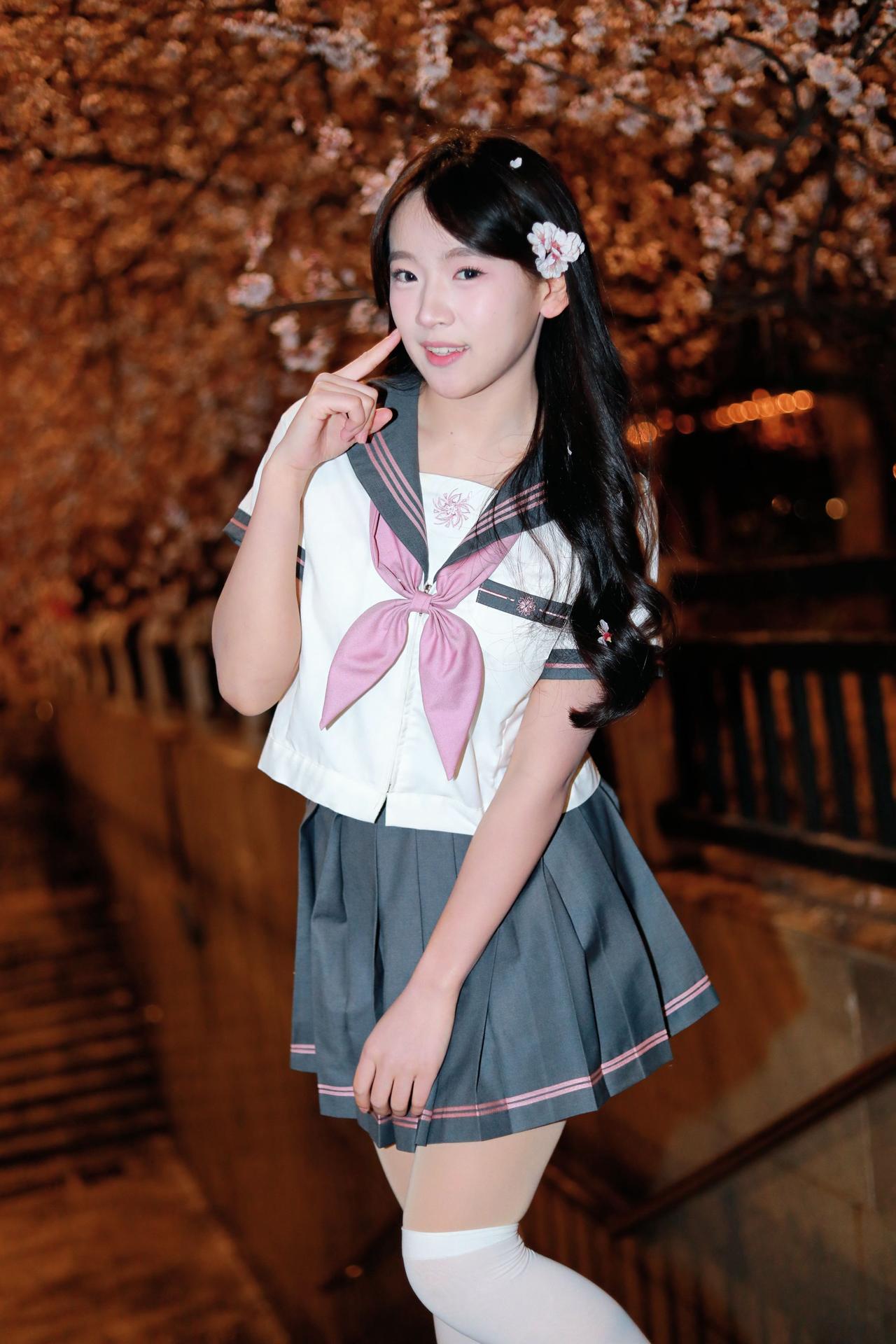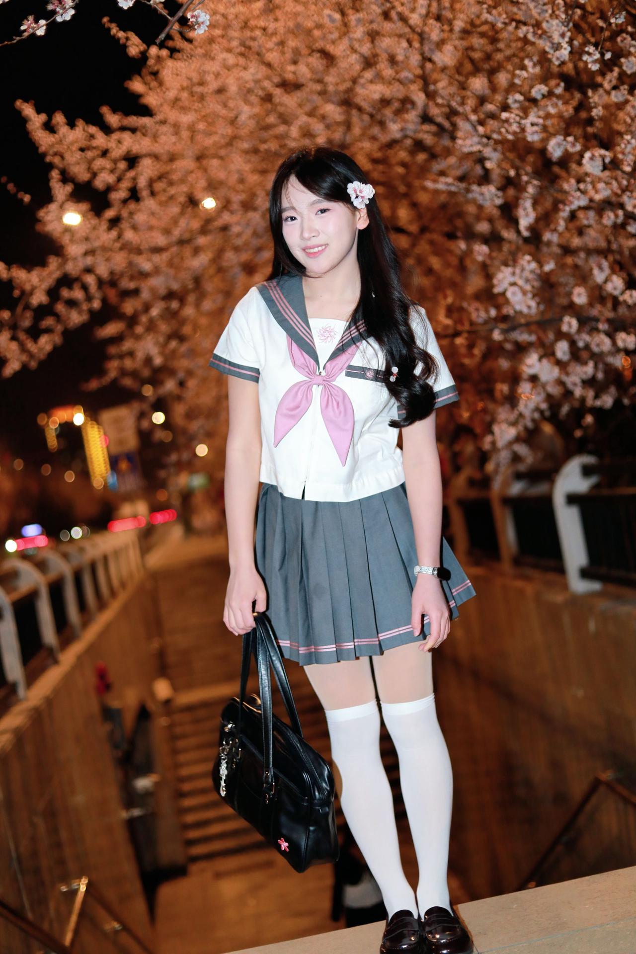 人像摄影约拍跟拍jk与杏花杏花夜景人像原创原图直出照片我镜头里的美女jk制服穿搭