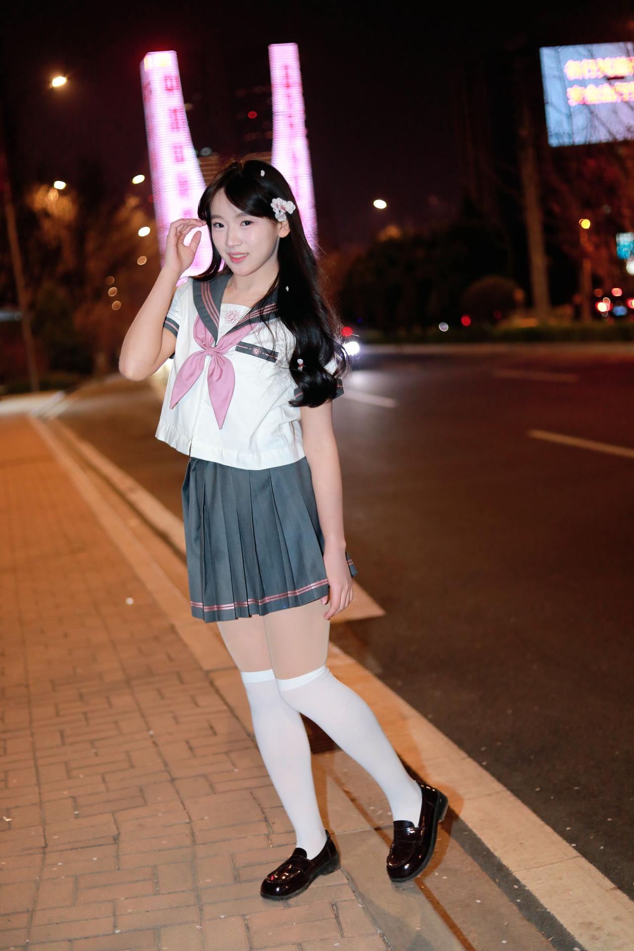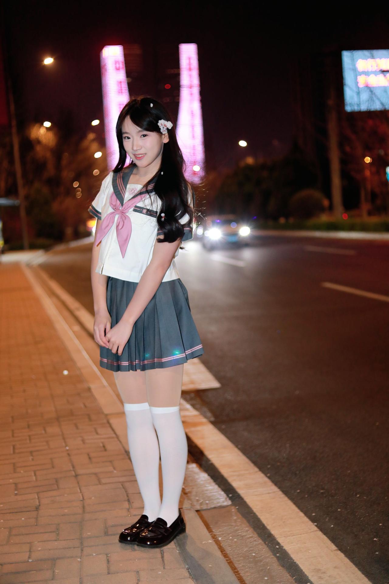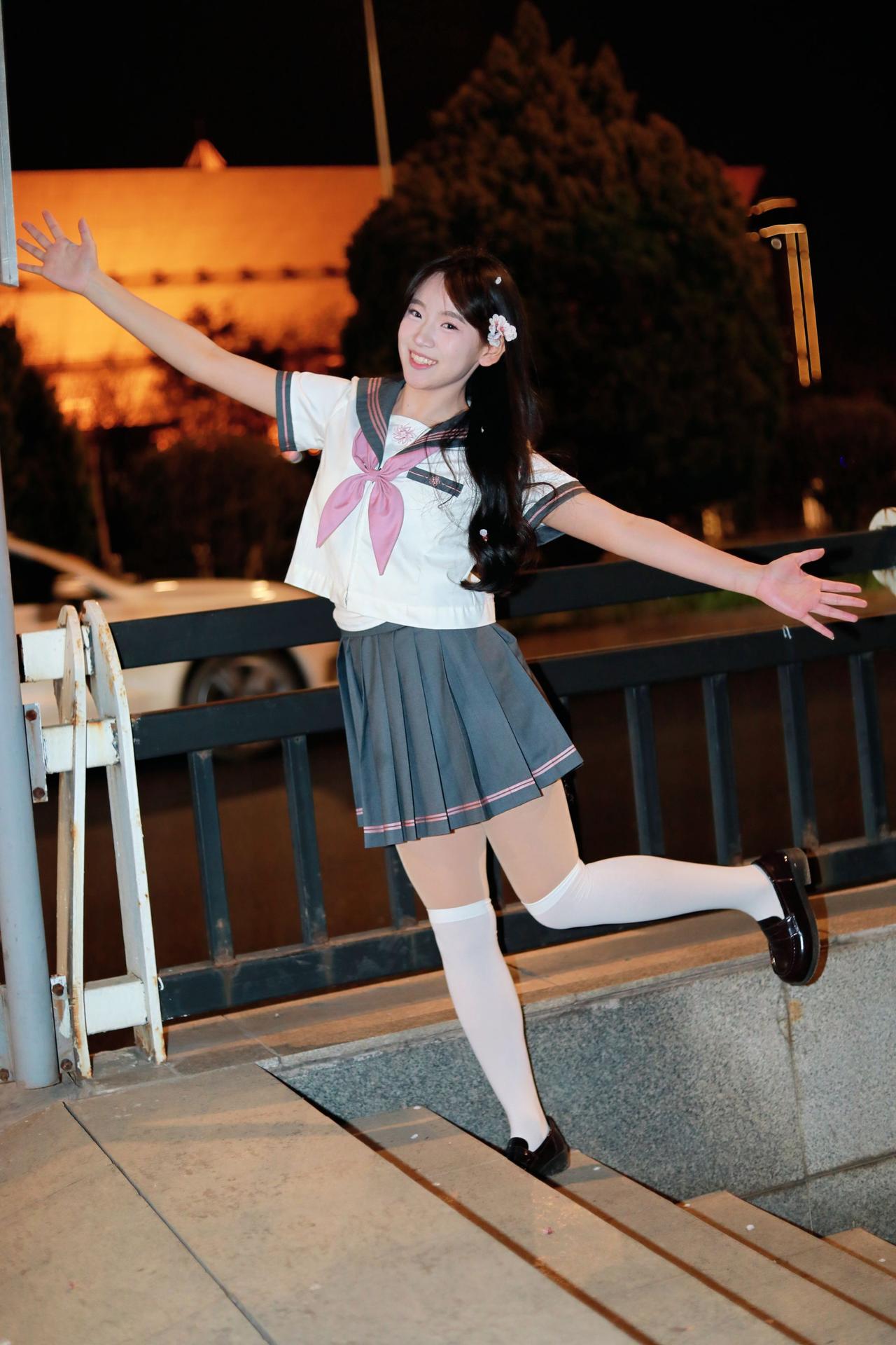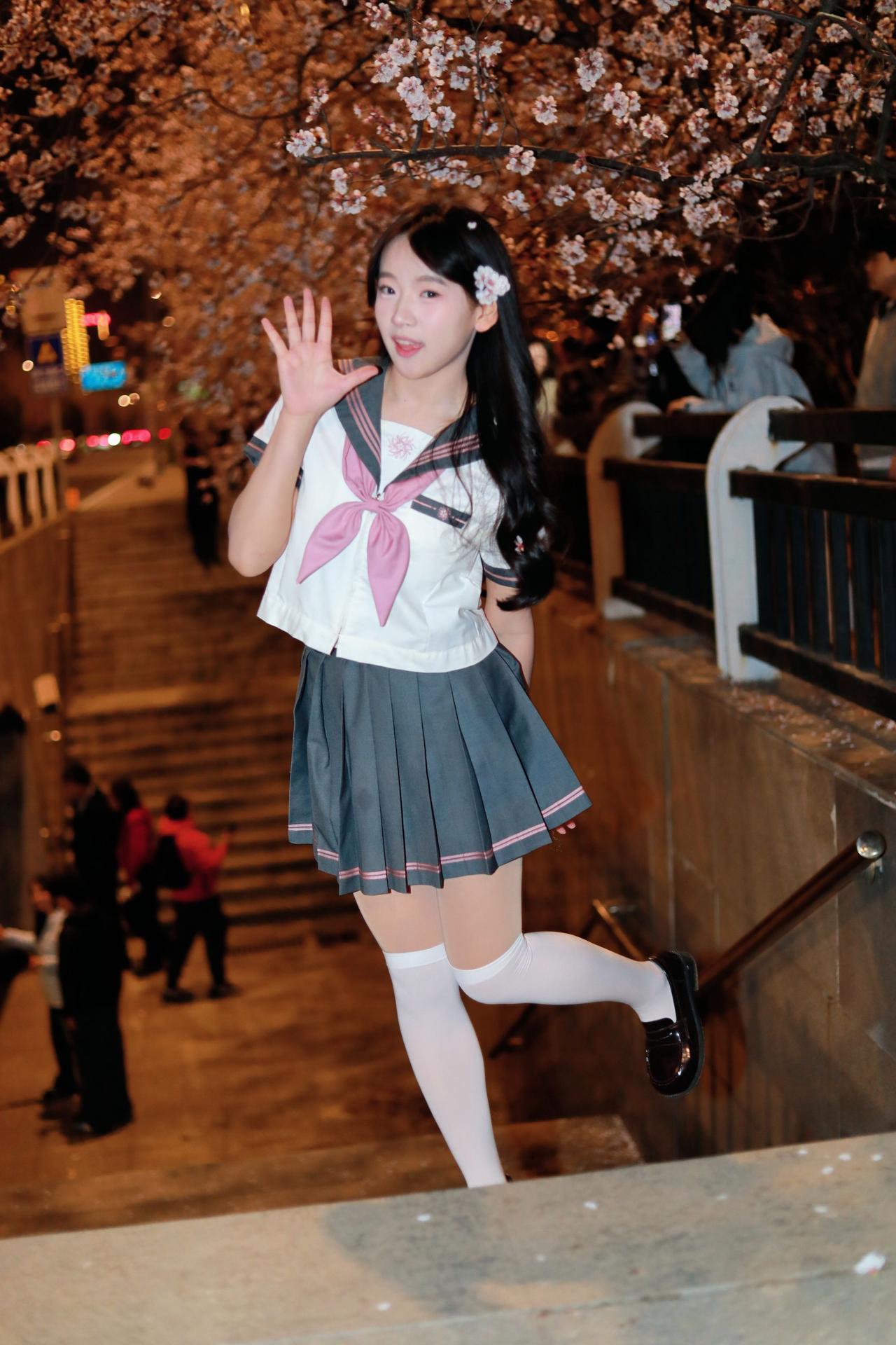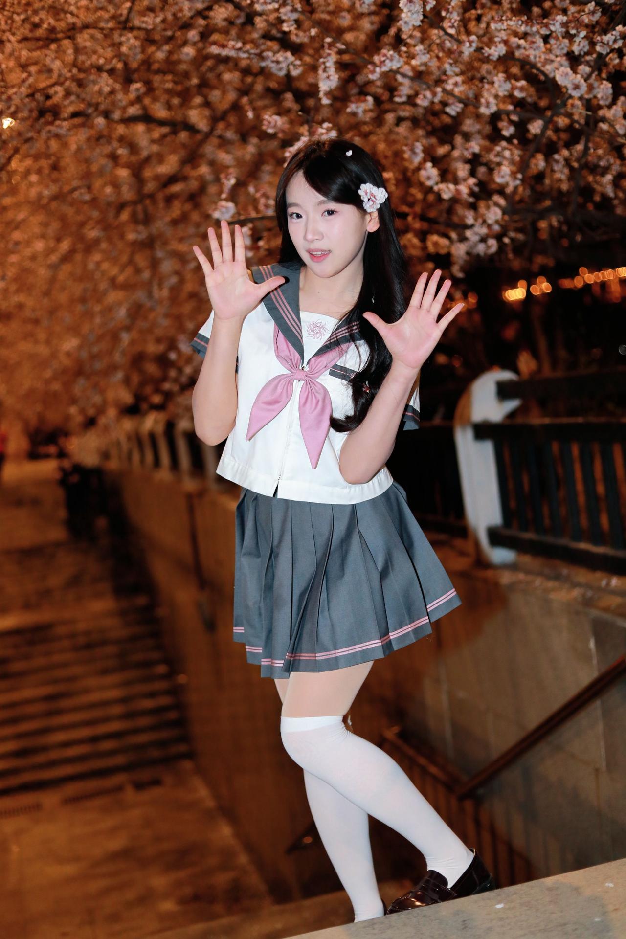 人像摄影约拍跟拍jk与杏花杏花夜景人像原创原图直出照片我镜头里的美女jk制服穿搭