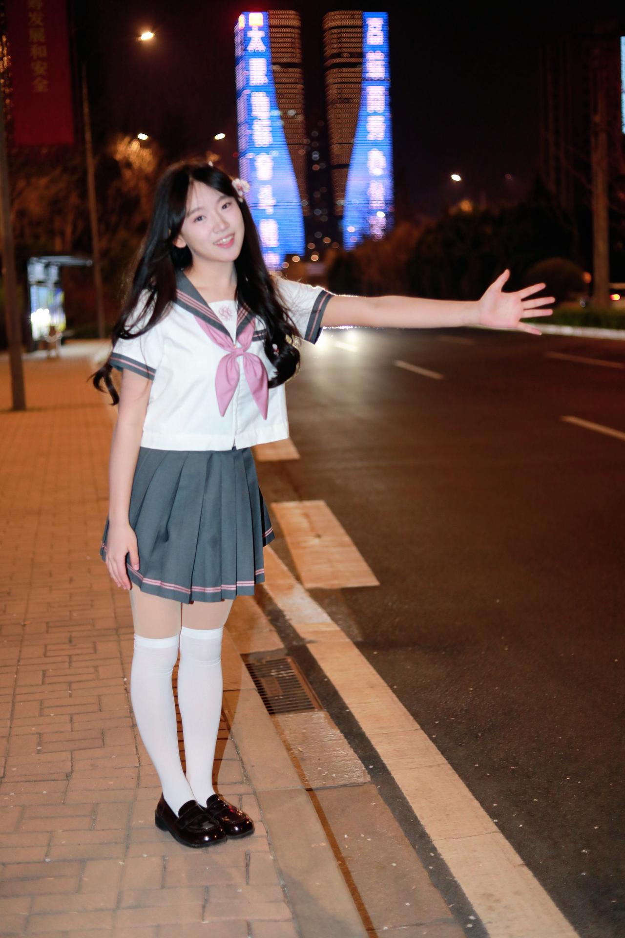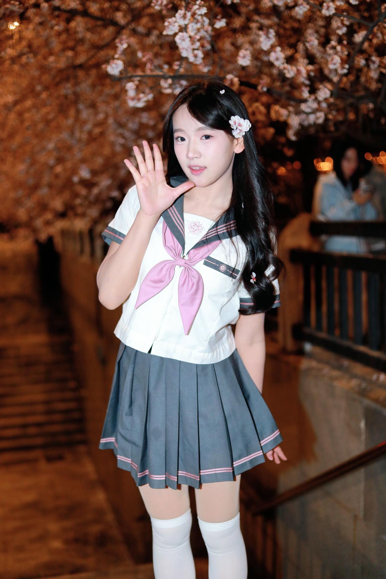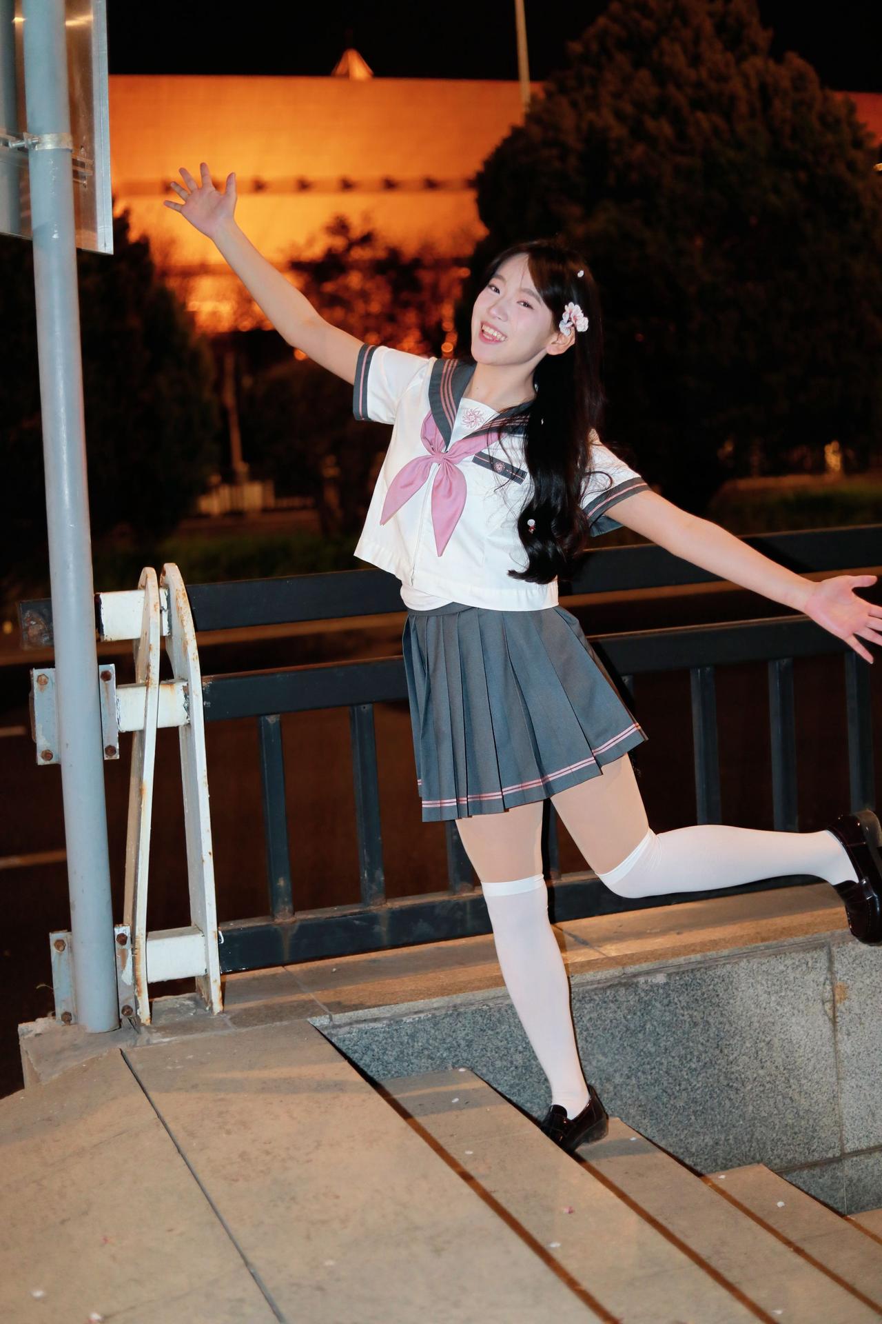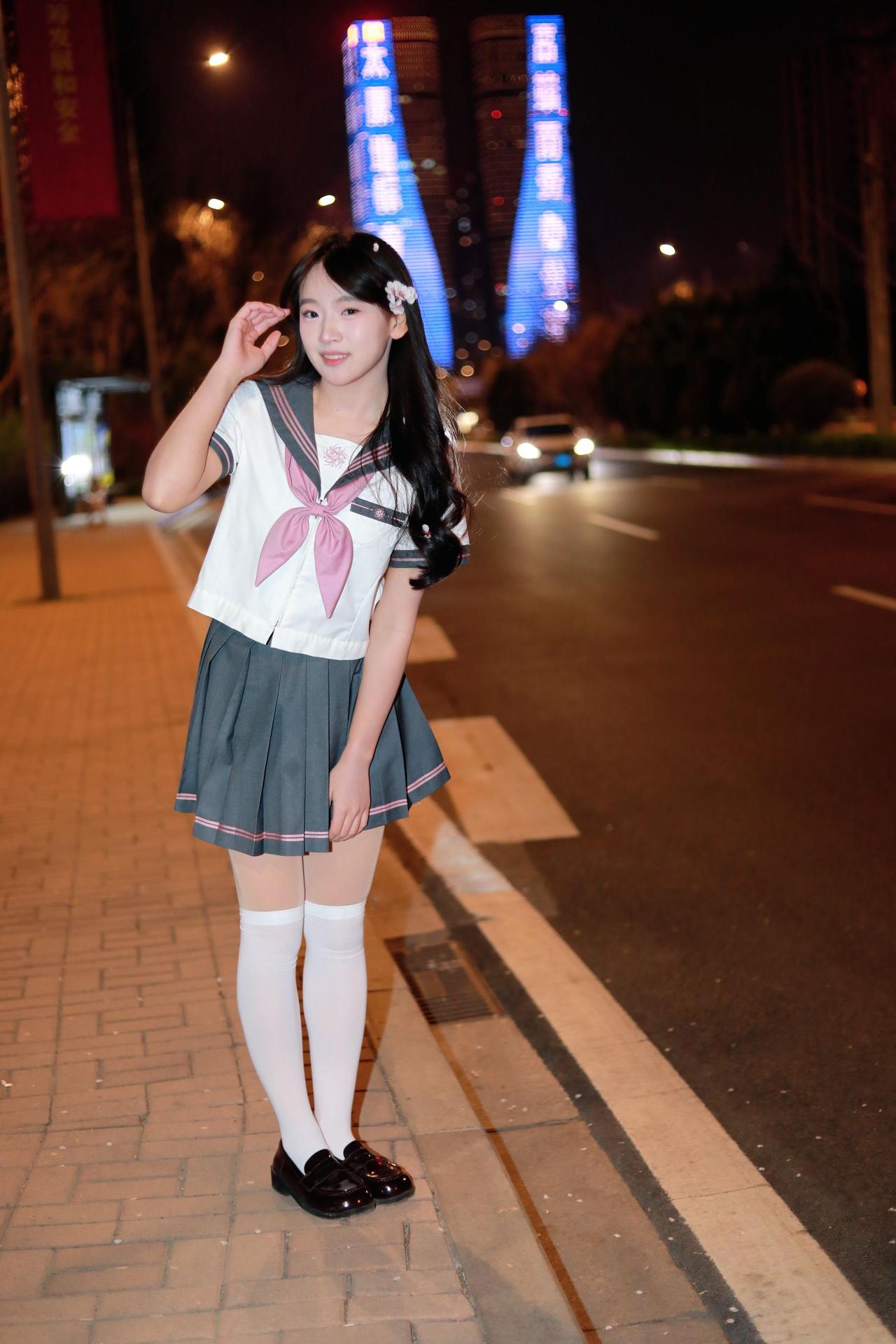 人像摄影约拍跟拍jk与杏花杏花夜景人像原创原图直出照片我镜头里的美女jk制服穿搭