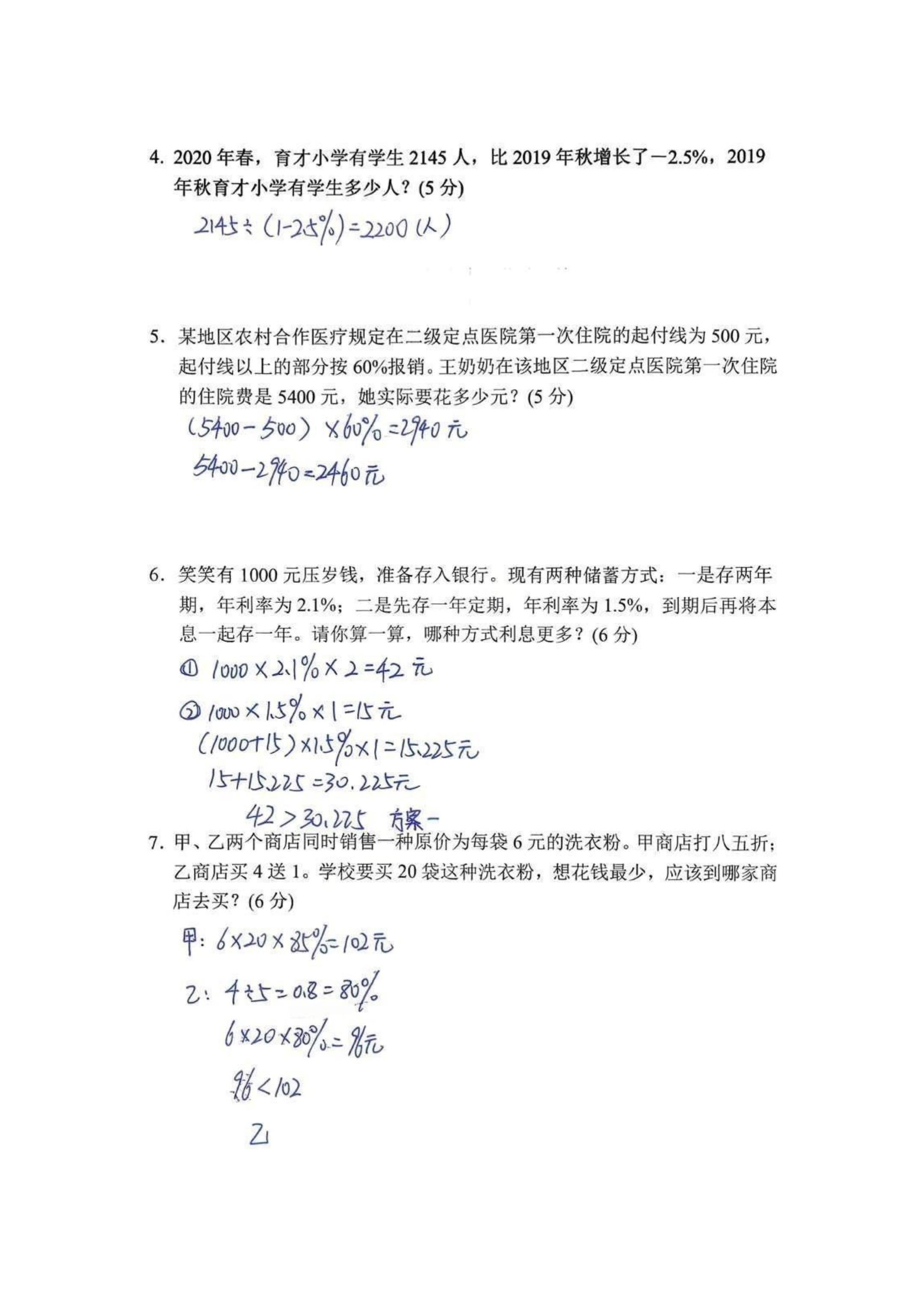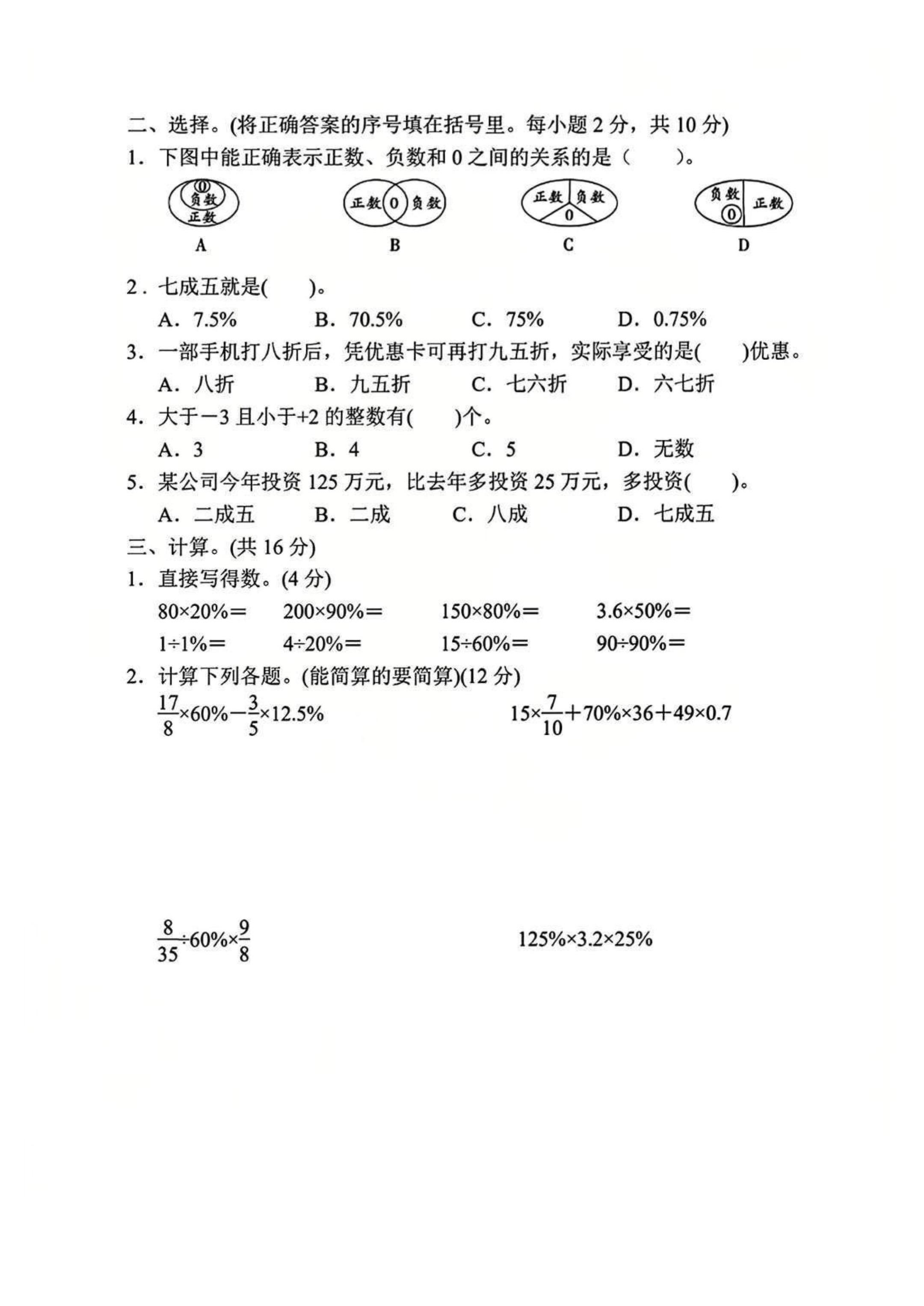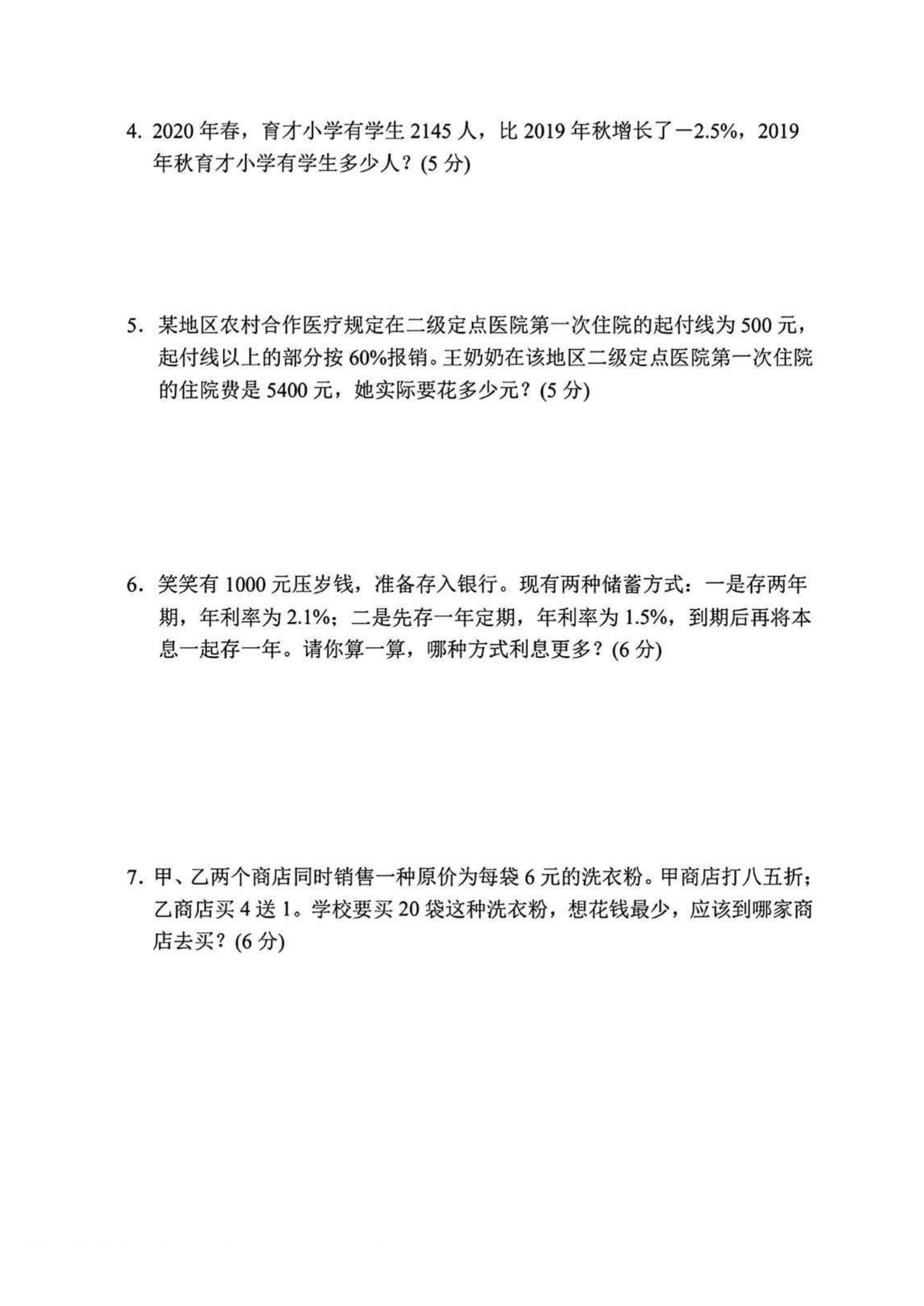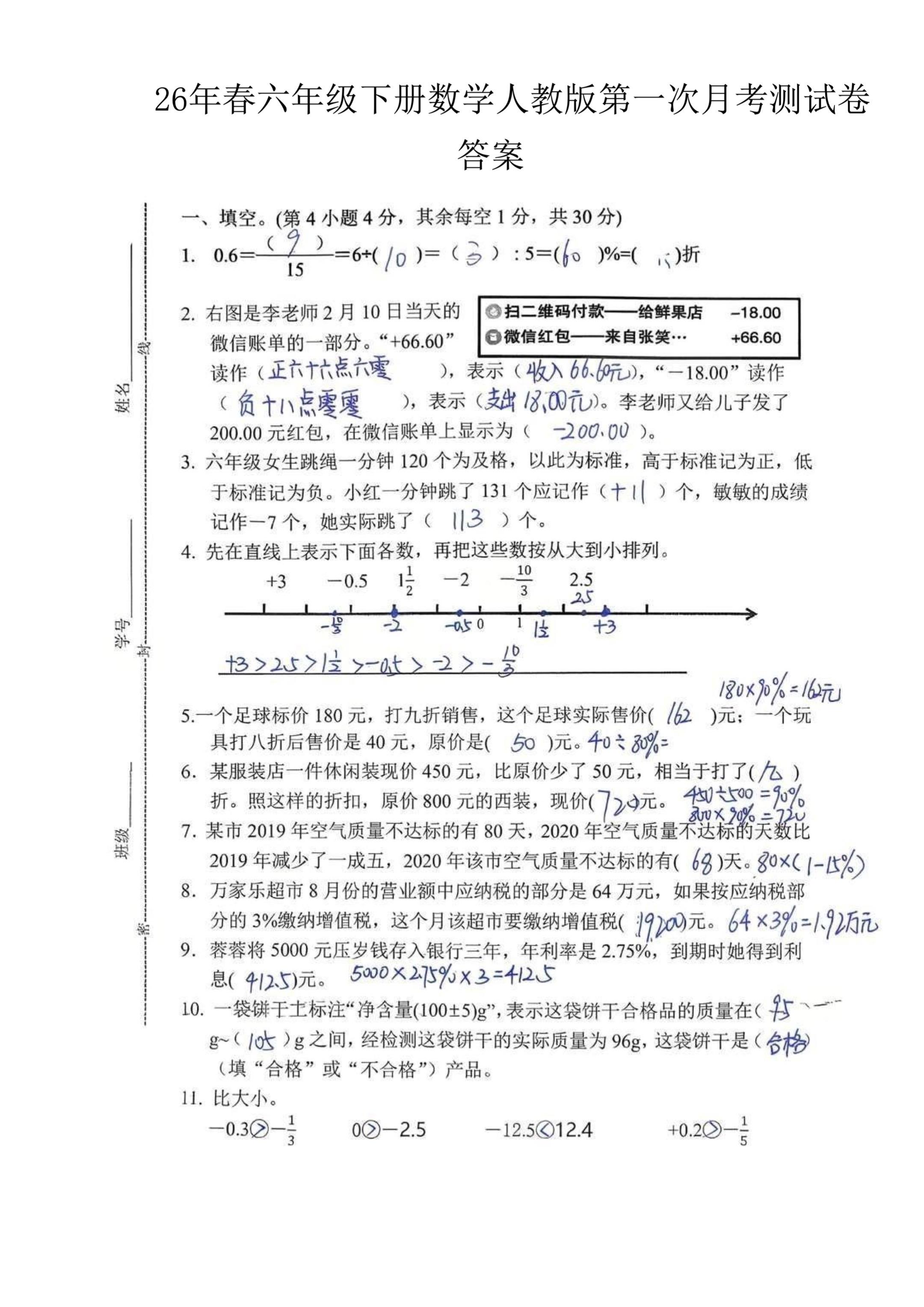 六年级下册数学|月考测试卷(含答案)人教版六年级下册数学 月考测试卷+完整答案 高清可直接打印 需要的家长收藏
