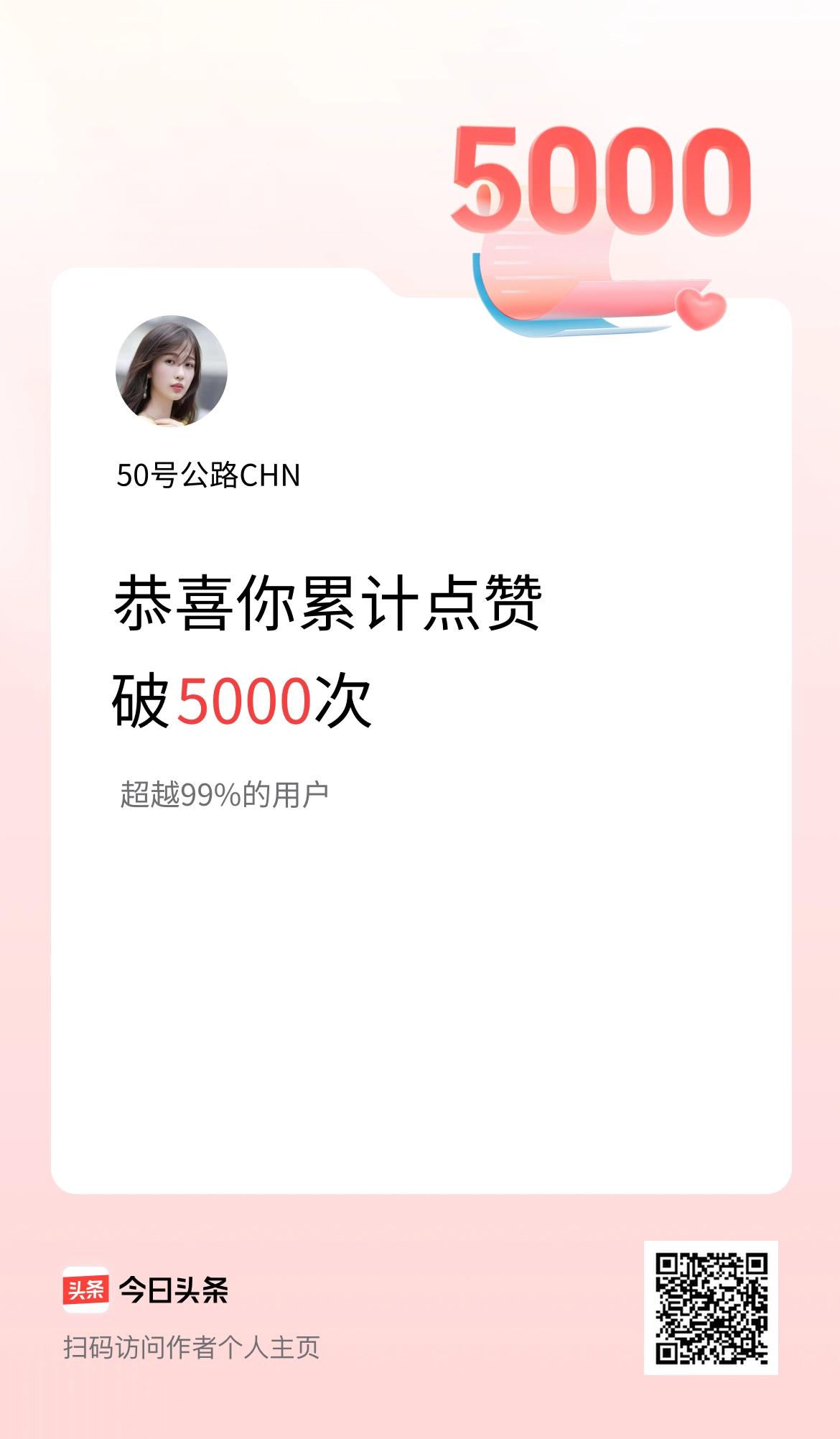 我在头条累计点赞破5000啦!