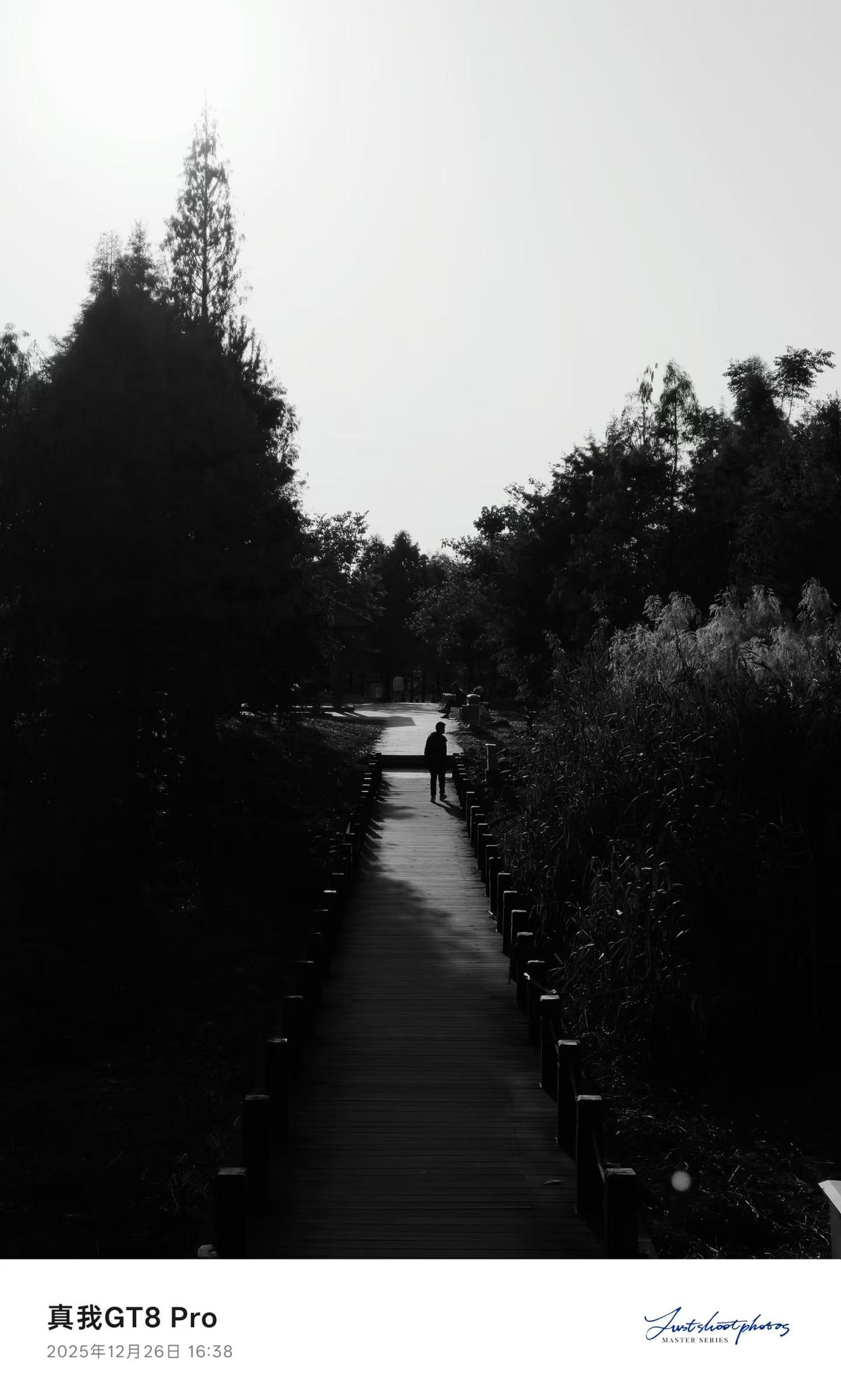 分享手机里的风景照静谧的公园小径,独自漫步的背影,黑白色调下的宁静时光。