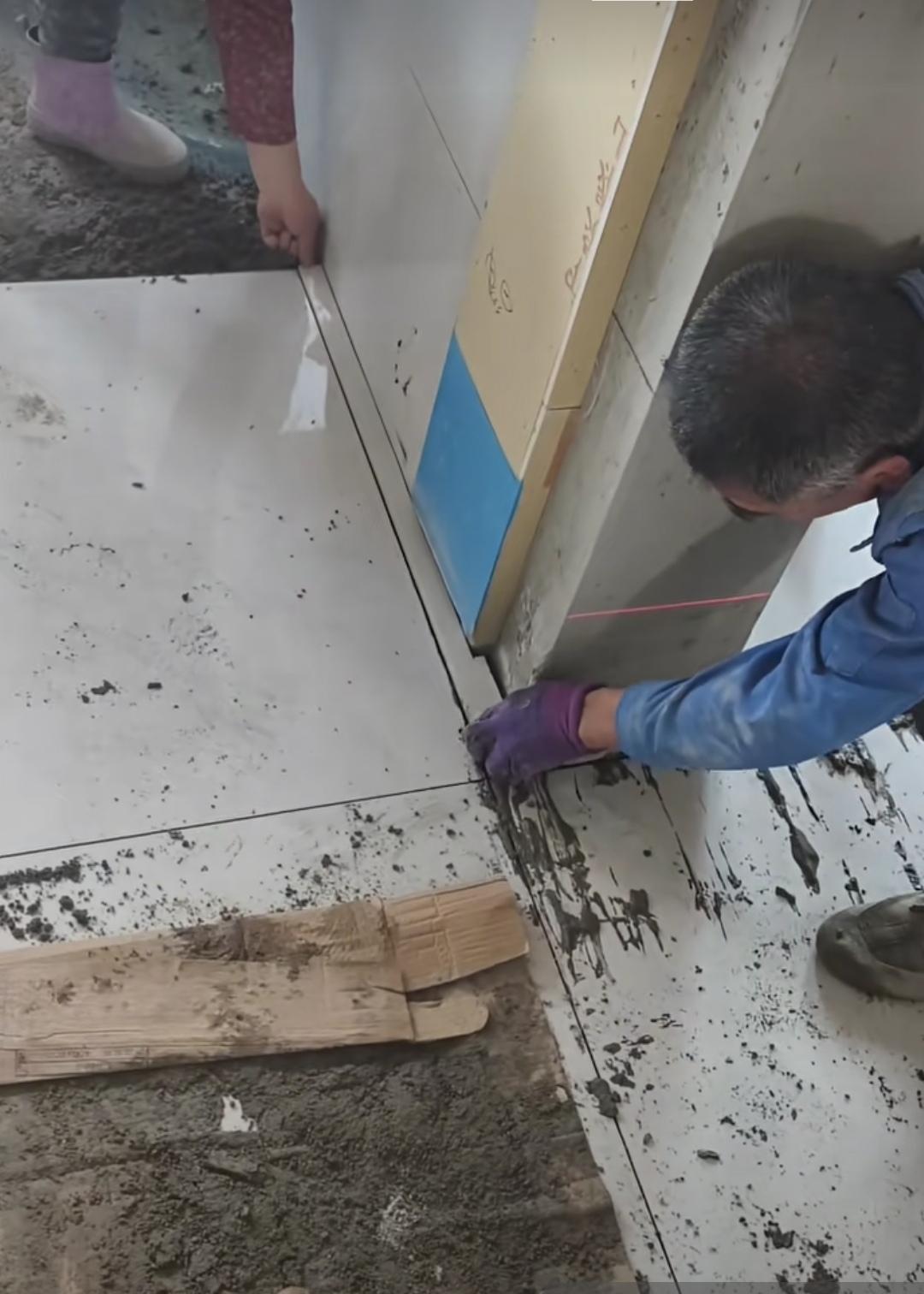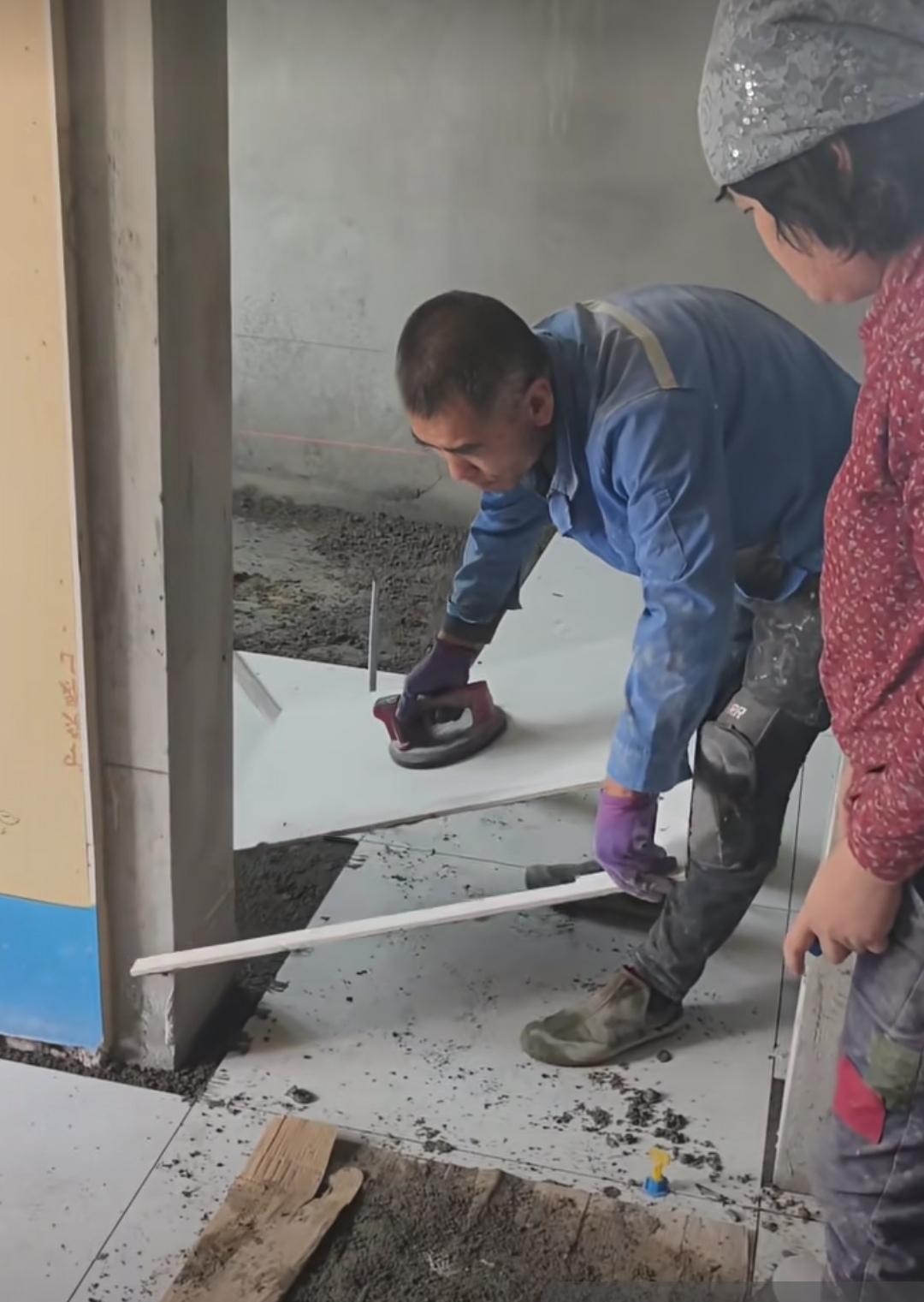 这位师傅真是厉害!连这么高难度的转角地砖都能贴好。就这活儿,一般师傅要是不把瓷砖弄破,还真贴不下去。 瞧画面里的场景,一位瓦工师傅正小心翼翼地把一块切好形状的瓷砖放到转角下方,直至铺贴平整。 就说铺好的这块瓷砖,它之前的每一步操作都得万分谨慎。很多师傅切同样形状的瓷砖时,只要有一处不平衡,转角外侧的小条就会裂开,结果切了一块又一块;而且,拿放这块中间扣掉一块面积的瓷砖时,切成两三公分的小条也容易断裂;最后,拍打平整时,小条和大边之间也容易振开。总之,铺贴这块转角瓷砖,每一步都得格外小心! 画面中的师傅能完好地把瓷砖贴到地面,手艺相当不错,真心为这位技艺精湛的师傅点赞。 在此,我想问问大家,在同样的施工环境下,你们见过师傅弄破瓷砖的情况吗?欢迎在评论区分享! 地砖切割技巧