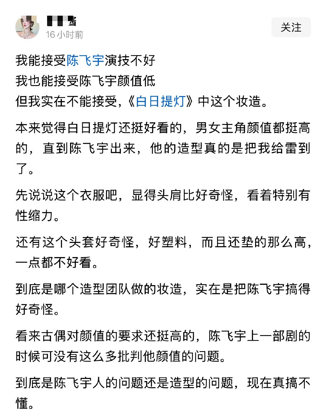 我能接受陈飞宇演技不好我也能接受陈飞宇颜值低但我实在不能接受,《白日提灯》中这个妆造