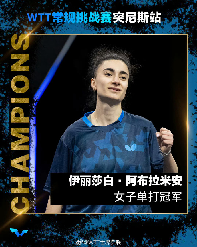 wtt 中立球员首夺WTT常挑冠军在刚刚结束的WTT常规挑战赛突尼斯站中,以个人中立身份参赛的俄罗斯球员阿布拉米安4比3战胜赛会头号种子韩国选手朱芊曦,夺得女单冠军🏆