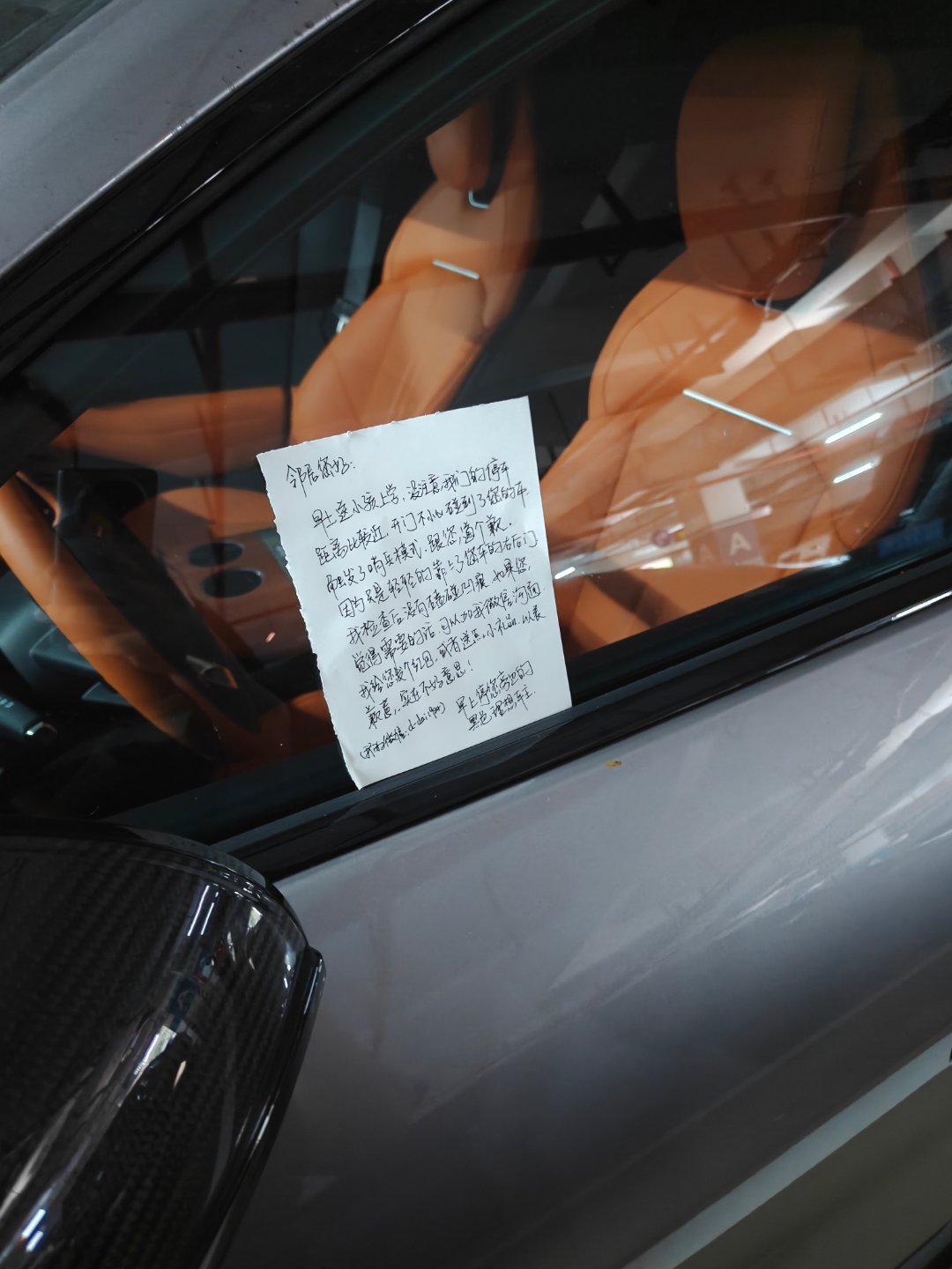 早上送娃上学开后门的时候不小心碰到了隔壁的 YU7只是轻轻的靠上但也触发了他的车哨兵模式回家后手写一封道歉信希望车主能看见理想车主不是差事儿的人!呆总碎碎念