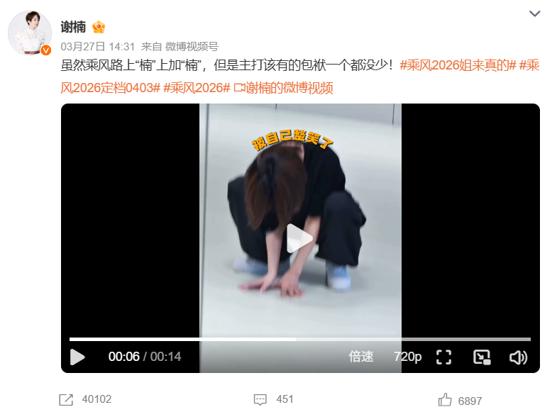 谢楠绝对接了抖包袱kpi 我楠姐一句话完全可以让工作人员笑趴下hhh,好好的练舞怎么就开始抖包袱了,一句“快楠”把老师都整笑了,自己也乐得不行,谁来管管谢楠啊,我想乘风有姐姐在绝对笑料提高百分之八十!乘风2026