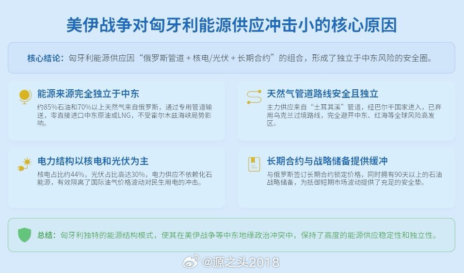 匈牙利可算是欧洲国家中的“一股清流/人间清醒”:在此次美以伊战争导致欧洲绝大多数国家遭受重大能源冲击的背景, 匈牙利不仅国内能源供应保持基本稳定,而且能源价格也仅有不到10%的涨幅(参见图3)。