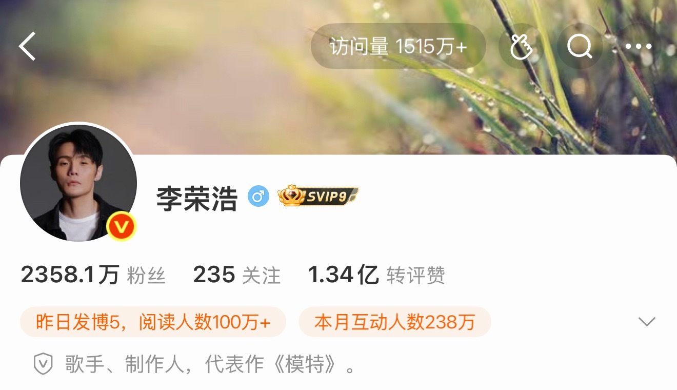 李荣浩的访问量都1500多万了!!!震惊好多啊啊啊啊!果然大家还是爱凑热闹的
