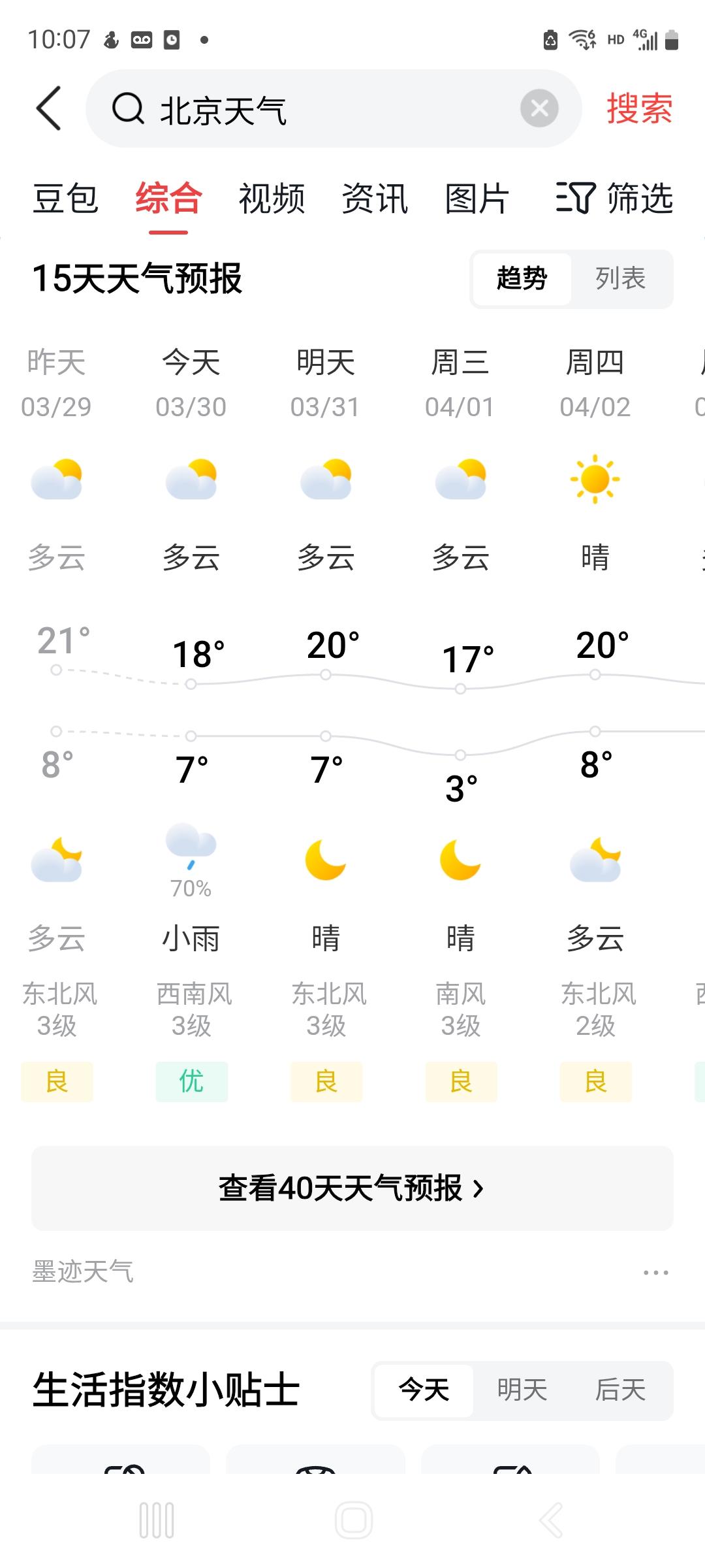 北京今天优了!吸了二十几天霾有点不习惯了,觉得今天空气味道有点怪,不记得新鲜空气的味了。3月份北京仅4天真正蓝天与优,大多日子都连续雾霾,轻中重度变着花样来。 昨天下午晚点转优的,我和老婆马上去奥体洲际泡咖啡厅看玉兰与蓝天云彩。 今天难得好天气好空气,计划下午驱车去门头沟区落坡岭,看山看湖看花看老火车站。 今天北京终于同上海广州坐到一条板凳上了,上海广州过去大多天数是优级,蓝天白云天天爽。 虽然今天优,不过北京也不要乐观,据预报,明后天再后天就转“良”即轻霾了。 附图北京上海广州长沙南京空气质量报告。 /每天一报。