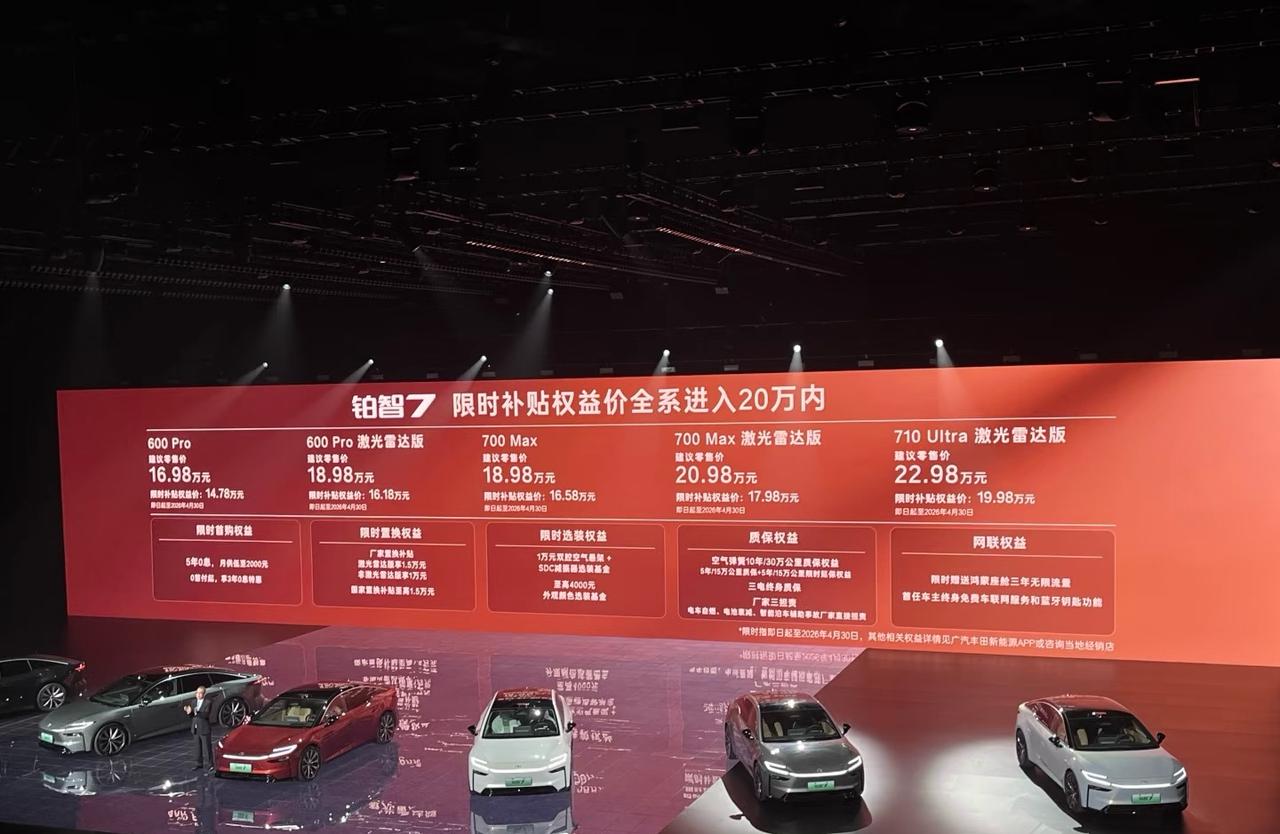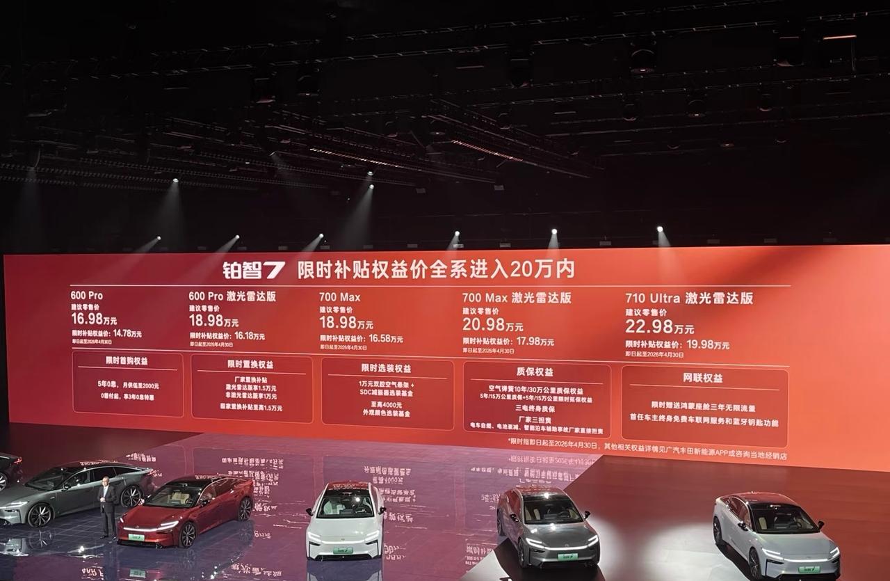 拼了!广汽丰田铂智7限时14.78万 好家伙,丰田铂智7这价格挺狠啊。 600续航限时14.78、16.18万; 700续航限时16.58、17.98、19.98万。 电池衰减,电池自燃,厂家给予保障。 空悬质保10年30万公里,选装1万。 还有5年0息,也是拼了。