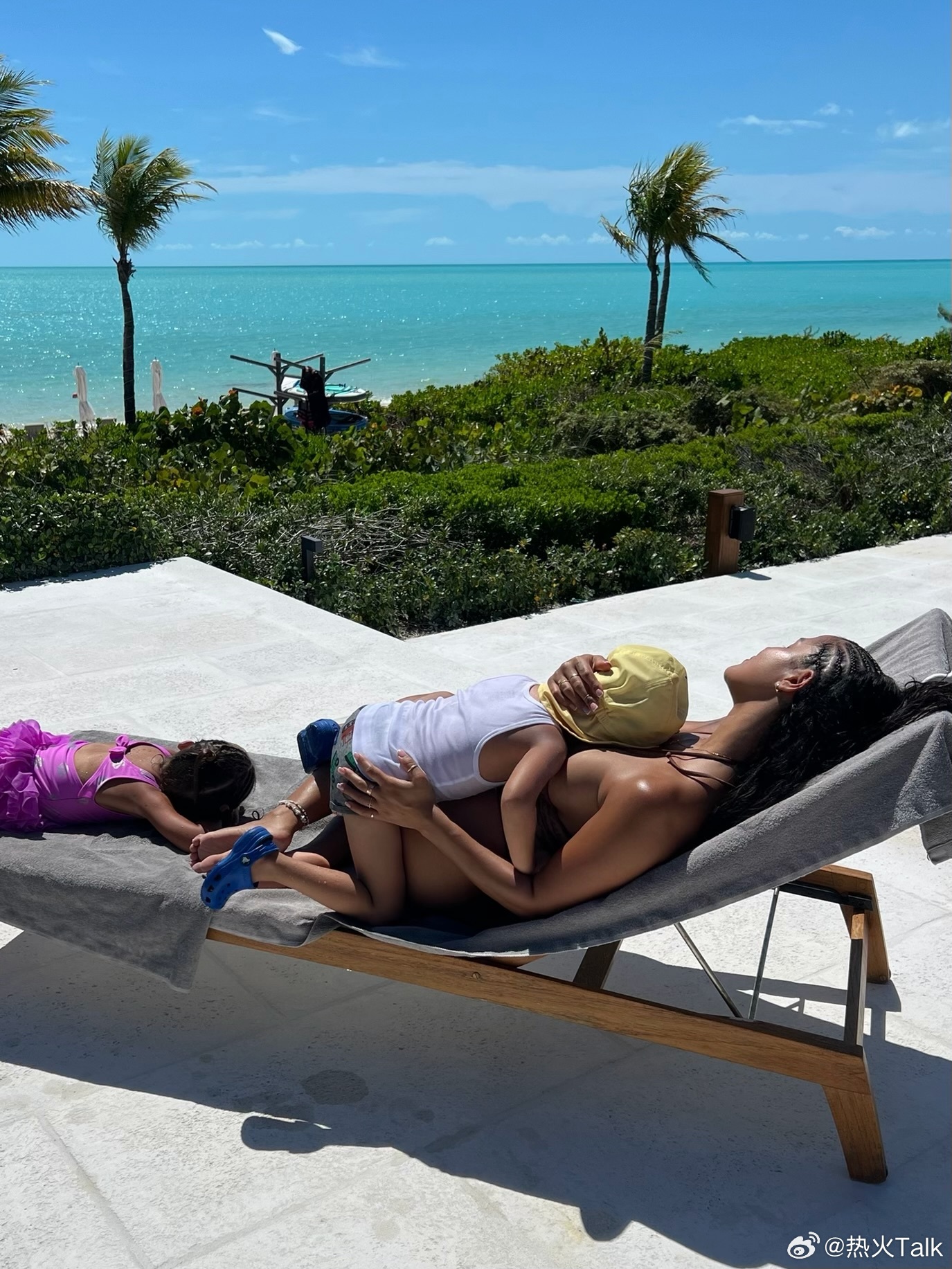希罗嫂带着孩子们在海滩边晒太阳🌞🏖️