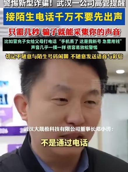 “一个电话,钱包就空了”!湖北武汉,一科技公司高管在接受采访时提醒,接到陌生电话时不要先出声,不要以为识别出对方是诈骗电话就放下戒备,因为我们的声音只需要几秒钟就可能被对方用AI采集下来,到时候受骗的可能就是家人了。 近期,武汉大晟极科技有限公司董事长邓小涛在接受采访时,发出了一则令人警醒的提醒:接陌生电话时切勿先出声。 即便一眼识破对方是诈骗,也不能轻易开口,哪怕只是一句简单的“喂”,都可能给家人带来巨额财产损失。 作为深耕声纹识别领域多年的内行人,邓小涛的提醒并非危言耸听,光明网在2026年3月29日也对此事进行了权威报道,证实了AI声纹诈骗的潜在风险。 据邓小涛介绍,当前AI语音合成技术已进入极低样本学习阶段,门槛低、操作简单,骗子仅凭一部手机和简单软件,就能完成声纹采集与复刻。 该技术可通过5到10秒的清晰语音,精准提取一个人的声纹特征——这种特征如同指纹一般独一无二,能完整复刻出使用者的音色、语调、语速,甚至说话时的细微习惯,复刻后的声音相似度极高,即便最亲近的家人也难以分辨。 而现实中,很多人对声纹安全缺乏认知,总觉得自己警惕性高,不会被诈骗,却不知骗子早已升级套路,专挑人们的疏忽下手,而采集声纹的过程,往往隐蔽到让人毫无察觉。 骗子实施AI声纹诈骗的套路清晰且环环相扣,主要分为三步。 第一步是采集声纹,骗子通常会使用虚拟号码,伪装成快递员、运营商客服、街头问卷调查者等身份,通过询问“您是尾号XXXX的机主吗”“方便核对一下信息吗”等看似正常的问题,诱导目标人群开口回应,只要对方说出只言片语,就能成功采集到清晰的语音样本。 第二步是AI合成,骗子将采集到的几秒语音,通过软件进行拆解、重组,复刻出与目标人群一模一样的声音,无论是哭腔、焦急的语气,还是独特的口音,都能完美模仿,达到以假乱真的效果。 第三步是精准诈骗,骗子利用合成后的声音,冒充目标人群给其亲友打电话,编造出车祸、绑架、生意周转困难等紧急理由,刻意营造紧张氛围,反复强调“别告诉别人”“赶紧转钱,晚了就来不及了”,利用亲情或信任压制对方的理性判断,让其来不及核实就盲目转账。 这种新型诈骗的杀伤力极大,全国各地已出现多起真实案例,受害者涵盖不同年龄段、不同职业。 武汉一位大爷今年年初接到陌生电话,电话那头传来“孙子”带着哭腔的求助声,称自己闯祸撞伤他人,急需8万元医药费,否则会被抓起来。 大爷心急如焚,连夜凑齐16万转给对方,直到第二天联系上真正的孙子,才得知声音是骗子用3秒语音克隆的,16万养老钱全部被骗。 不仅普通老人容易中招,精明的生意人也难以幸免。 邓小涛反复强调,这类骗局最可怕的地方,在于其精准利用了人与人之间的亲情和信任。 人们或许会对陌生人保持警惕,但面对亲友熟悉的声音,尤其是带着哭腔的求救声,大多会瞬间慌乱,理智被情绪压倒,即便平时再精明、再谨慎,也容易陷入骗局。 针对AI声纹诈骗,邓小涛给出了简单易记的防范建议,能有效避开大部分风险。 首先,接到任何陌生电话,都要等对方先开口,若对方迟迟不说话,或一直诱导自己发声,应直接挂断,切勿与陌生号码闲聊,避免泄露语音样本。 其次,只要电话中提到“钱”,无论对方声音多熟悉、身份多可信,都要立即挂断,然后从手机通讯录中找到对方常用号码重新回拨核实,切勿回拨陌生来电——骗子可伪造来电显示,却无法篡改手机通讯录中存储的真实号码。 除此之外,公众还需注意,平时不要在社交平台、短视频等公开渠道发布个人语音,也不要随意给陌生账号发送语音、彩信,从源头减少声纹泄露的可能。 尤其要反复叮嘱家中老人,这类人群对新技术了解较少、心肠较软,是骗子的重点目标,需提醒他们,遇到吓人的求助电话,只要涉及转账,务必先挂断,再找家人核实,切勿慌乱转账。 日常中,很多人接到陌生电话时,要么随手接起调侃两句,要么直接怼回去,很少意识到其中的风险。 AI技术本身并无对错,它能为公共安全、社会治理等领域提供便利,但若被不法分子利用,就会变成害人的工具。 面对快速发展的AI技术,人们无法阻止其迭代升级,只能提高自身警惕心,重视声纹隐私保护。 接陌生电话时多等几秒、保持沉默,不轻易泄露自己的语音,就能有效筑牢防范防线,避免因一时疏忽,让亲情成为骗子利用的软肋,让家人陷入财产损失的困境。 如果各位看官老爷们已经选择阅读了此文,麻烦您点一下关注,既方便您进行讨论和分享,又能带来不一样的参与感,感谢各位看官老爷们的支持!
