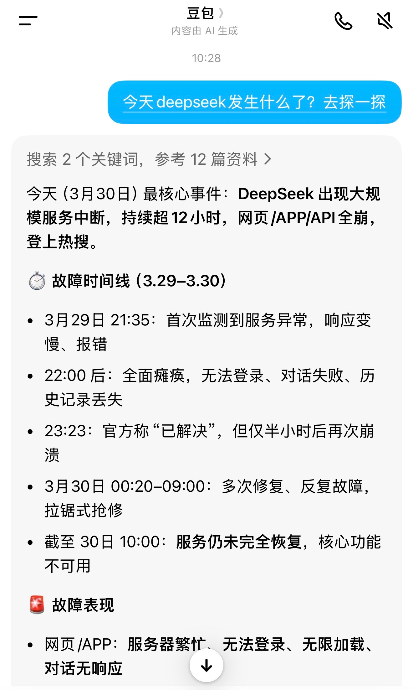 DeepSeek公告服务出现重大中断