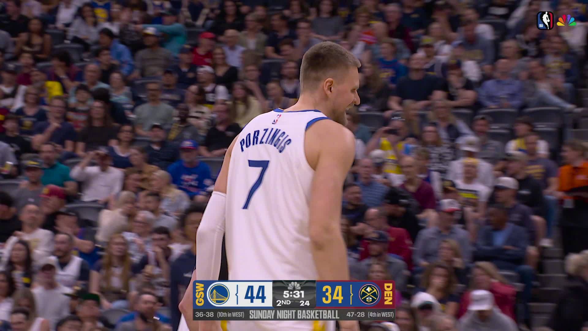 波尔津吉斯再中三分!勇士vs掘金