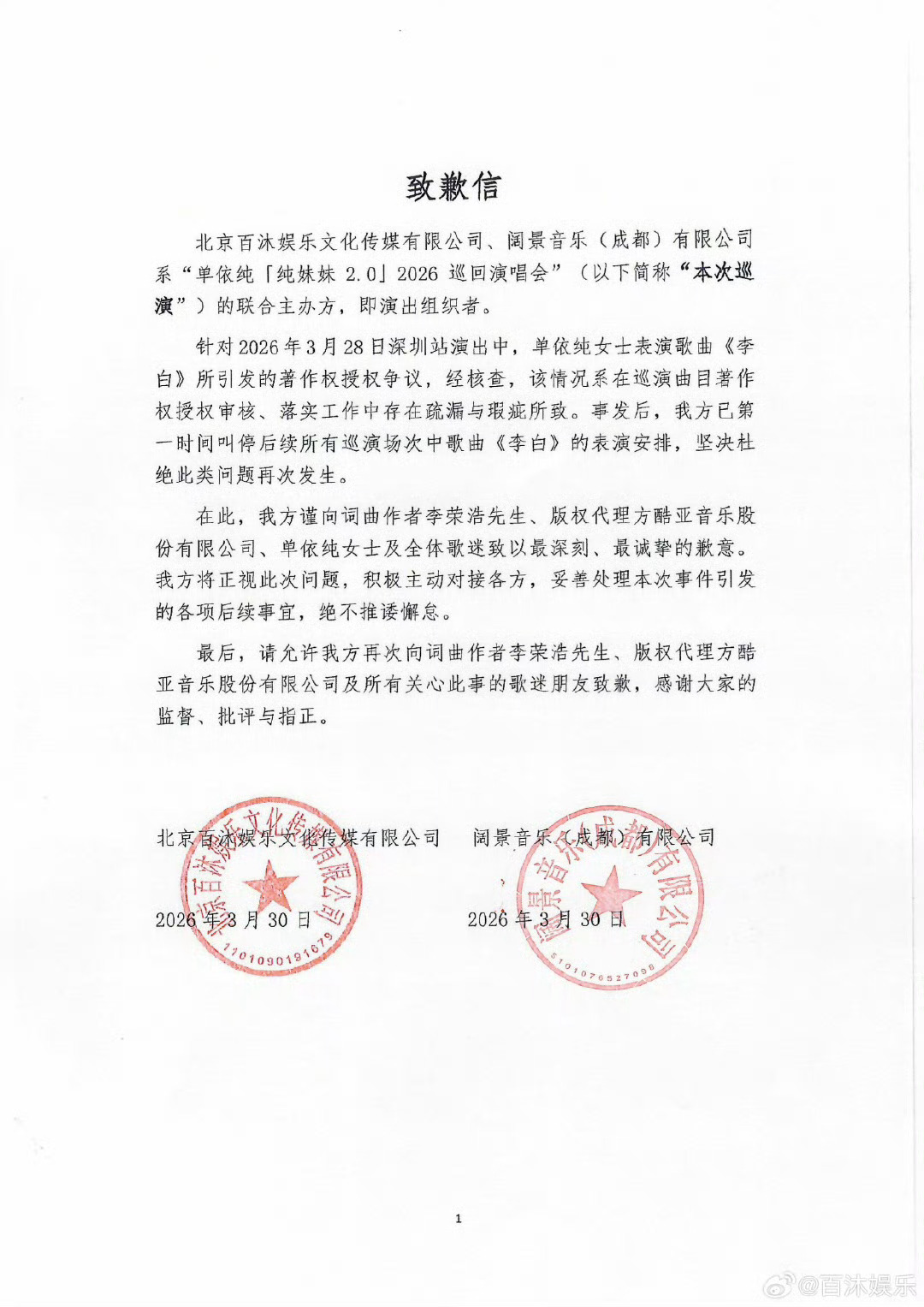 第三波是主办方道歉,工作纰漏。全是套话。没有实质性的补偿歌迷和大众。也没说怎么纰漏的。