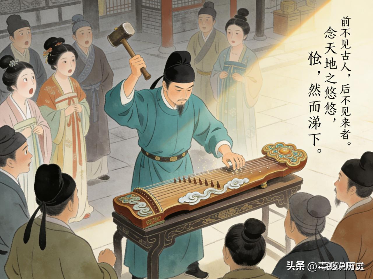 唐朝大诗人陈子昂为了出名,花百万买下一把琴,假意邀长安名流来听琴,却当众砸碎!请大家看他写的诗! 唐高宗年间,长安街头一个年轻人徘徊在卖琴的摊位前。摊主吆喝着:“这把胡琴,价值百万!”百万钱,在当时可以买下几十亩良田。围观的人越来越多,却没人敢出手。 年轻人突然开口:“我买了。” 满街哗然。有人好奇:“他买这么贵的琴,一定是个高手,我们得去听听。” 年轻人说:“我叫陈子昂,明天在宣阳里设宴,请大家来听我弹琴。” 第二天,宣阳里挤满了人。陈子昂抱着那把价值百万的胡琴,环顾四周,然后—— 他把琴摔在地上,砸得粉碎。 众人惊愕。陈子昂朗声道:“我陈子昂,文章写得不比任何人差,却无人知晓。弹琴是乐工的事,岂是我辈所为?” 说罢,他拿出自己的诗文集,分发给在场的每一个人。 一夜之间,陈子昂的名字传遍长安。 这个故事被记录在《独异记》中,一千多年来被人津津乐道。但很少有人知道,这个用一把琴砸开仕途大门的天才,最终竟被县令冤死在狱中。 他到底经历了什么? 陈子昂的起点,与大多数诗人不同。 他出身梓州射洪(今四川射洪)一个豪族家庭,父亲陈元敬是当地首富。年少时的陈子昂,不爱读书,喜欢舞刀弄剑,是个标准的“富二代”。十七八岁时,他与人比剑伤了人,才幡然悔悟,从此弃武从文,闭门苦读。 然而,天才的道路从来不平坦。 唐高宗调露元年(679年),二十一岁的陈子昂第一次进京赶考,落第而归。他回到老家,继续苦读。两年后,他再次进京,结果又是名落孙山。 就是在这第二次落第后,他想出了那个惊世骇俗的办法——买琴、砸琴、散诗文。 这一招果然奏效。京兆府功曹王适读了他的诗文,惊叹道:“此人必为海内文宗!”武则天也注意到了这个年轻人。二十四岁那年,陈子昂进士及第,从此步入仕途。 陈子昂进入官场后,很快展现出与常人不同的一面——他敢说真话。 武则天称帝后,为了巩固政权,大开告密之门,重用酷吏。满朝文武噤若寒蝉,没人敢说一个“不”字。陈子昂却站了出来,连上两道奏疏,直指时弊。 他在《谏用刑书》中写道:“今陛下以酷吏为爪牙,以告密为耳目,天下之人,无不震恐。”他甚至批评武则天“大杀无辜,以彰威德”。 一个从八品的小官,敢这样骂皇帝,简直是不要命了。 但武则天没有杀他。女皇虽然暴虐,却爱才如命。她欣赏陈子昂的勇气,不仅没有治他的罪,反而擢升他为右拾遗——一个专门负责进谏的官职。 陈子昂是硬骨头。他上书反对征伐吐蕃,反对穷兵黩武;他上书请求减轻赋税,体恤百姓。他的每一篇奏疏,都像一把刀,直插时政的要害。 然而,他的谏言,武则天一条都没有采纳。 万岁通天元年(696年),契丹叛乱,武则天派武攸宜率军征讨。陈子昂被任命为参谋,随军出征。 武攸宜是武则天的侄子,一个只会吃喝玩乐的纨绔子弟。到了前线,他轻敌冒进,导致全军溃败。陈子昂多次进谏,请求分兵出击,武攸宜不但不听,反而将他贬为军曹——一个管后勤的小官。 一个秋天的傍晚,陈子昂独自登上幽州台。 幽州台是燕昭王招贤纳士的地方。战国时期,燕昭王在此筑黄金台,广招天下贤才。而此刻的陈子昂,空有报国之志,却被一个无能之辈踩在脚下。 他站在台上,望着苍茫的天地,想起燕昭王的故事,想起自己的遭遇,胸中涌起一股说不出的悲凉。他张口吟道: “前不见古人,后不见来者。念天地之悠悠,独怆然而涕下。” 这首诗没有一个字写幽州台,却让幽州台永远活在了诗里。它写的是一个时代的孤独,一个理想主义者的绝望。 圣历元年(698年),陈子昂以父亲年老为由,辞官回乡。 回到射洪后,他建了一座“拾遗亭”,打算在此读书著述,终老林泉。然而,命运没有放过他。 县令段简盯上了陈子昂家的财产。他罗织罪名,将陈子昂逮捕入狱。陈子昂在狱中为自己占卜,卦象显示“不吉”。他仰天长叹:“天命不佑,吾其死矣!” 据《新唐书》记载,陈子昂在狱中忧愤而死,时年四十二岁。 他死前写了一首《感遇》诗:“谁知将相孙,独守蓬蒿居。本为贵公子,平生实爱才。”一个曾经砸琴惊天下的天才,最终死在了一个小小县令的牢房里。 陈子昂死后,他的好友卢藏用收集了他的诗文,编成《陈伯玉集》。他在序言中写道:“道可以济天下,而命不通于时;才可以致尧舜,而运不逢于主。” 四十二岁的人生,短暂得像一颗流星。但他在诗史上留下的印记,比许多活到八九十岁的人都深。 他砸碎的那把琴,砸开了一个时代的诗风。他把初唐诗歌从宫廷的脂粉气中解放出来,让诗重新有了风骨。杜甫专程去射洪拜谒他的故居,写诗赞道:“有才继骚雅,哲匠不比肩。公生扬马后,名与日月悬。” 有人说,陈子昂最大的悲剧,是他生错了时代。他不该生在武则天时代,他应该生在燕昭王的时代。 可他自己早已给出了答案: “前不见古人,后不见来者。” 他站在两个时代之间,孤独得像一块碑。