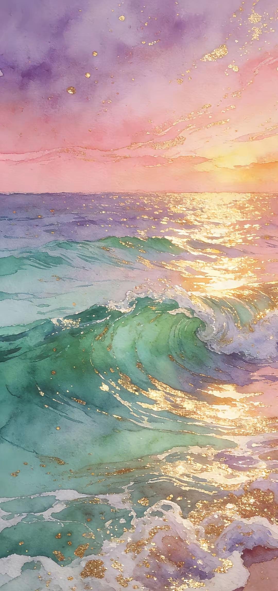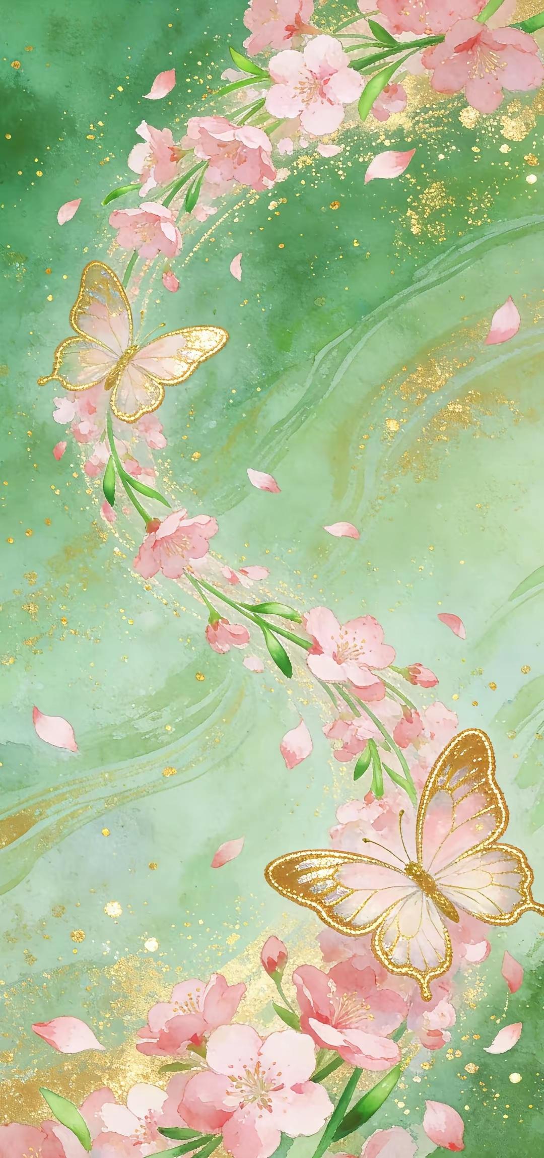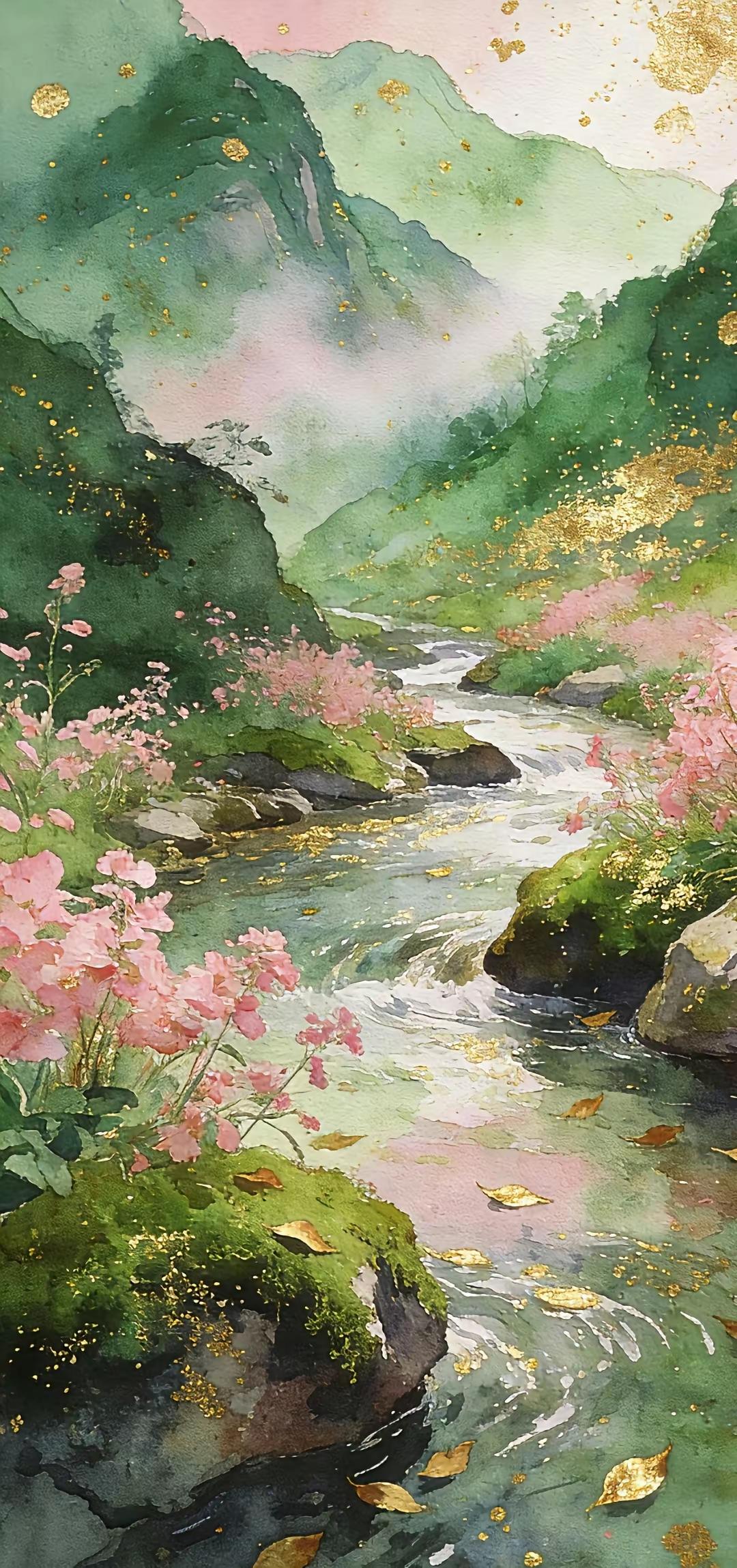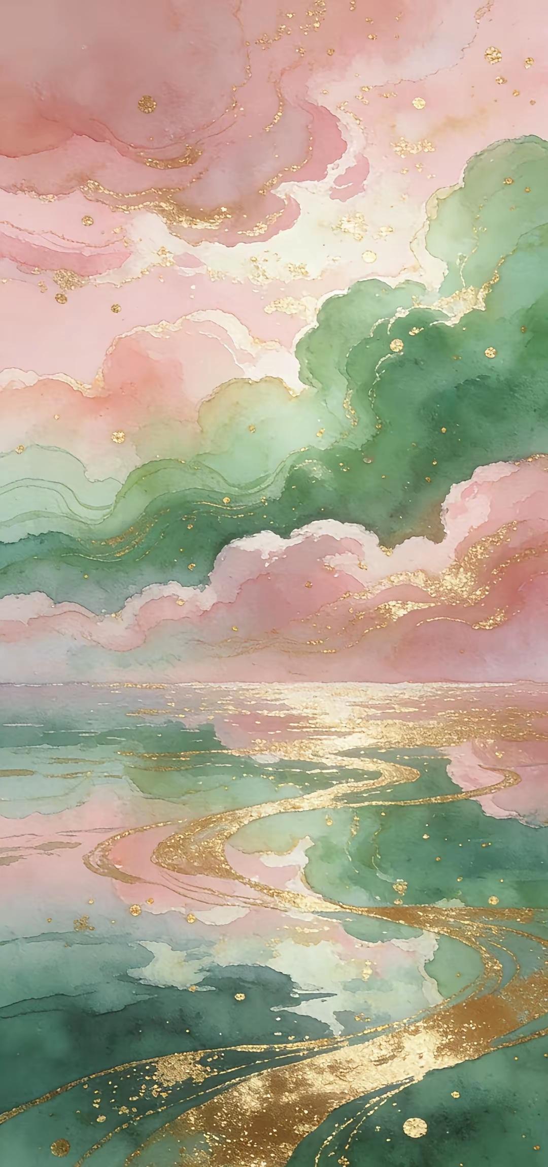 手机壁纸~粉绿晕染成云与水,金箔在风里流淌成光。一帧帧,都是岁月里最动人的诗意与