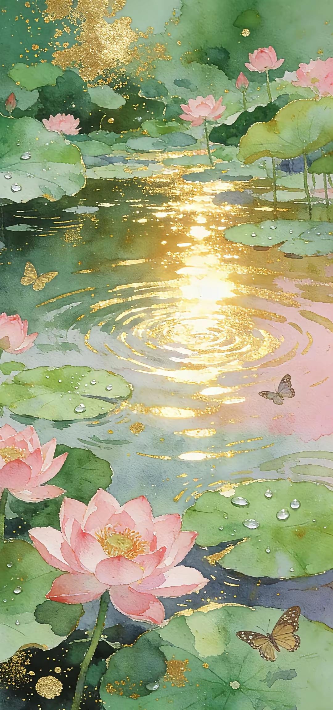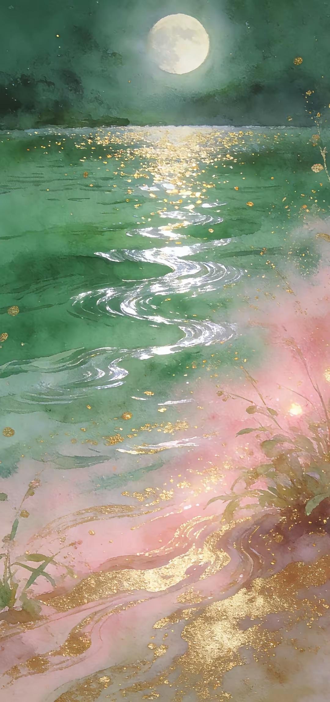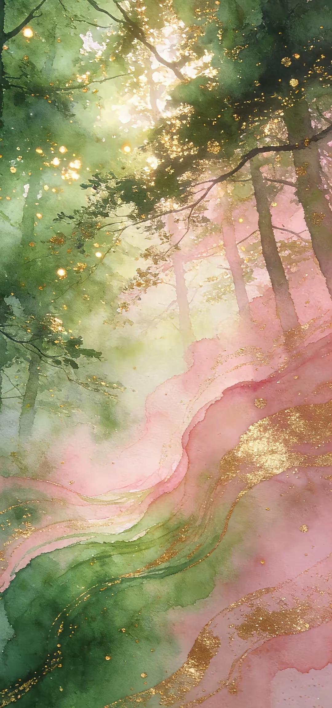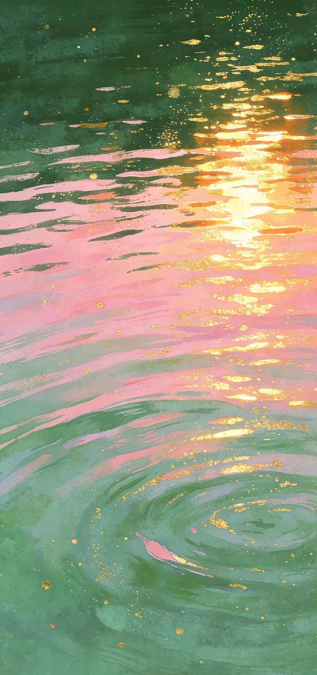 手机壁纸~粉绿晕染成云与水,金箔在风里流淌成光。一帧帧,都是岁月里最动人的诗意与清欢