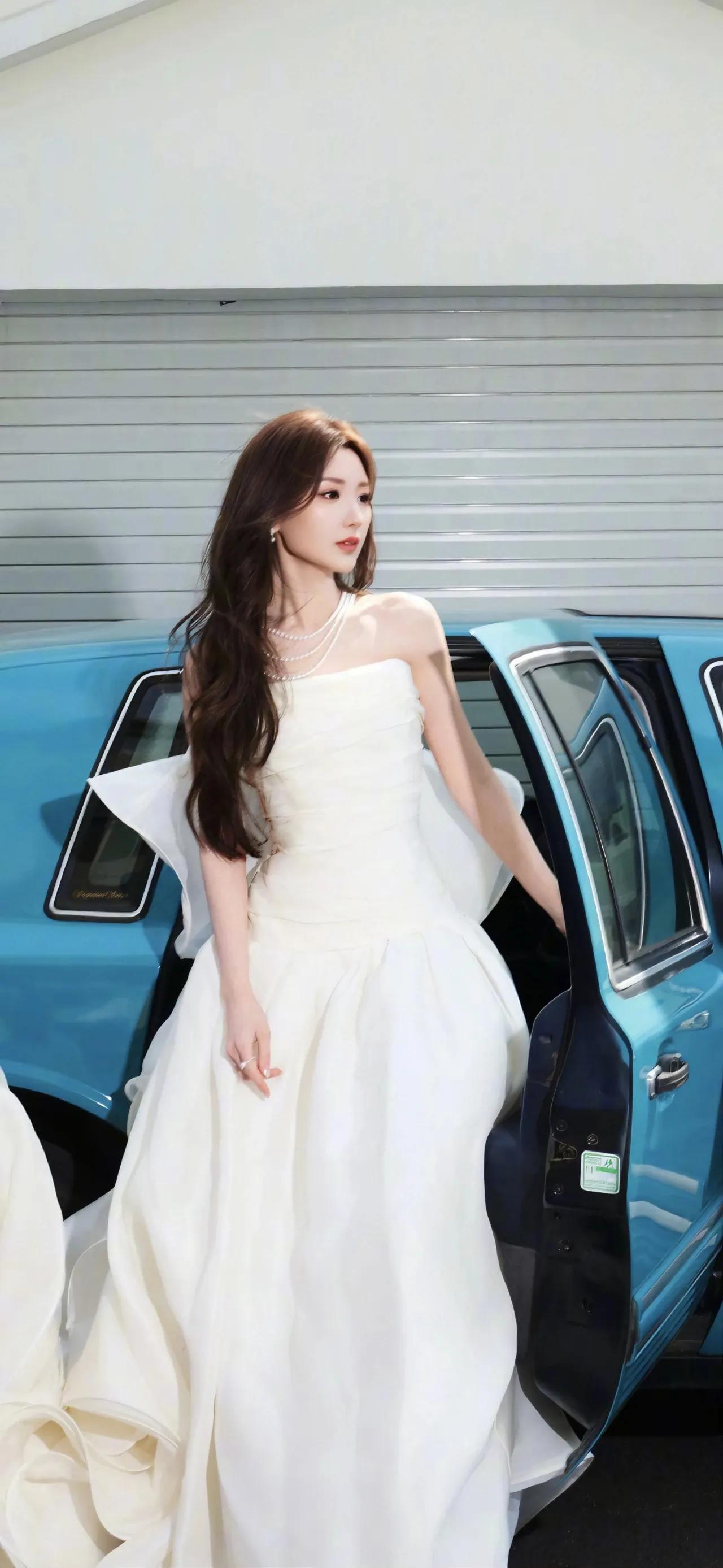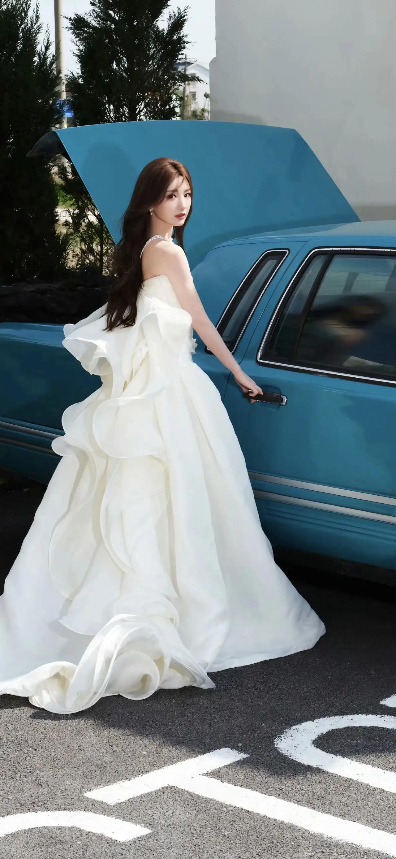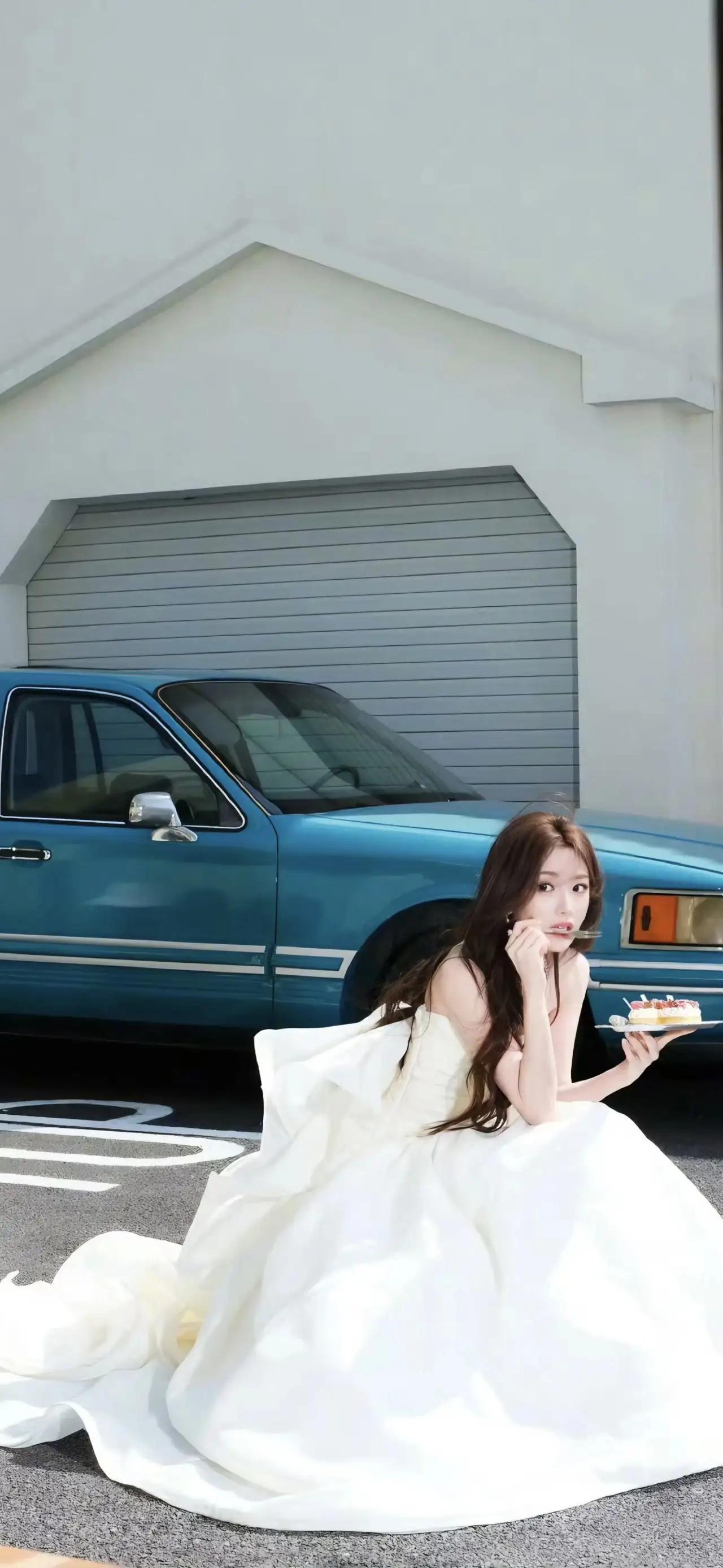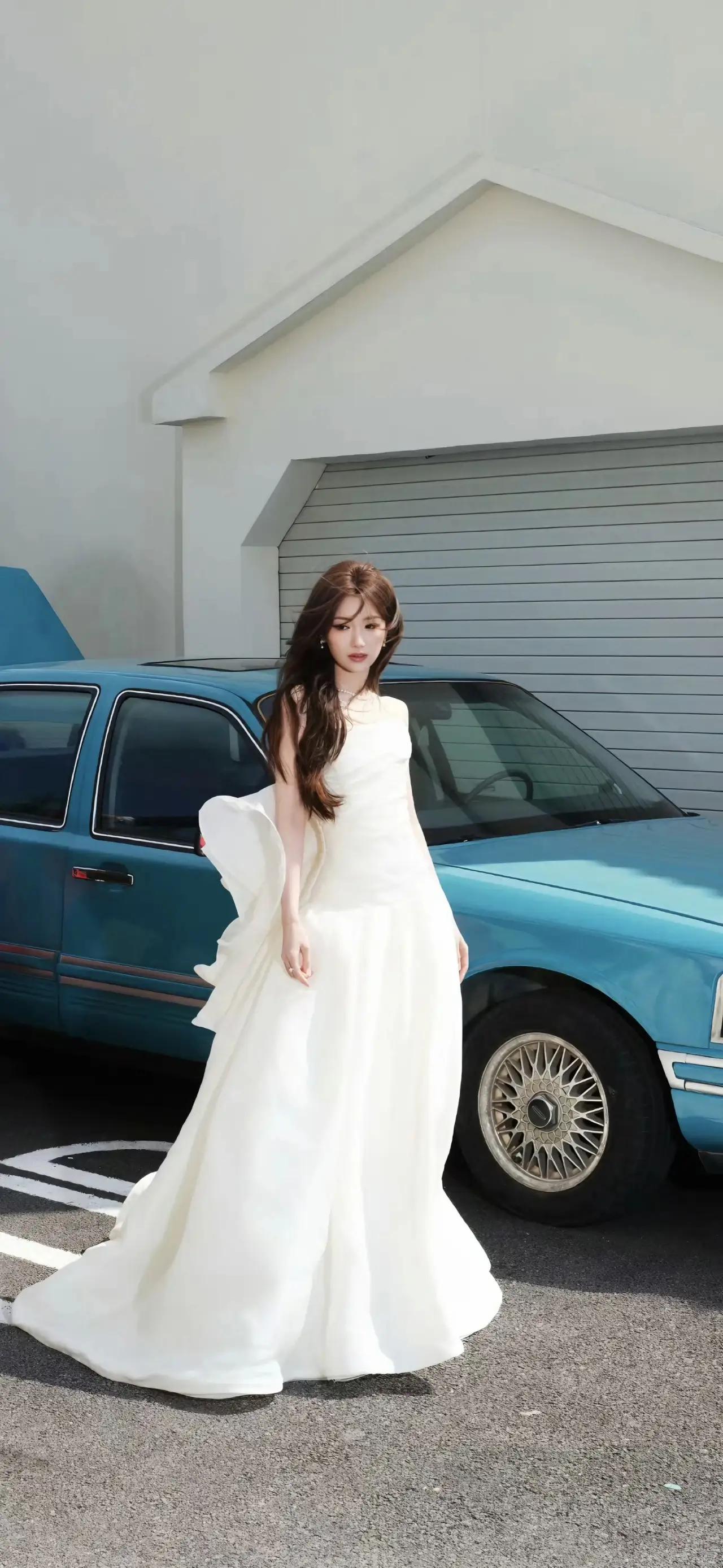 美女壁纸~毛晓彤,白裙与复古蓝车撞出浪漫,阳光里的每一步都带着自由的风2026.3.30
