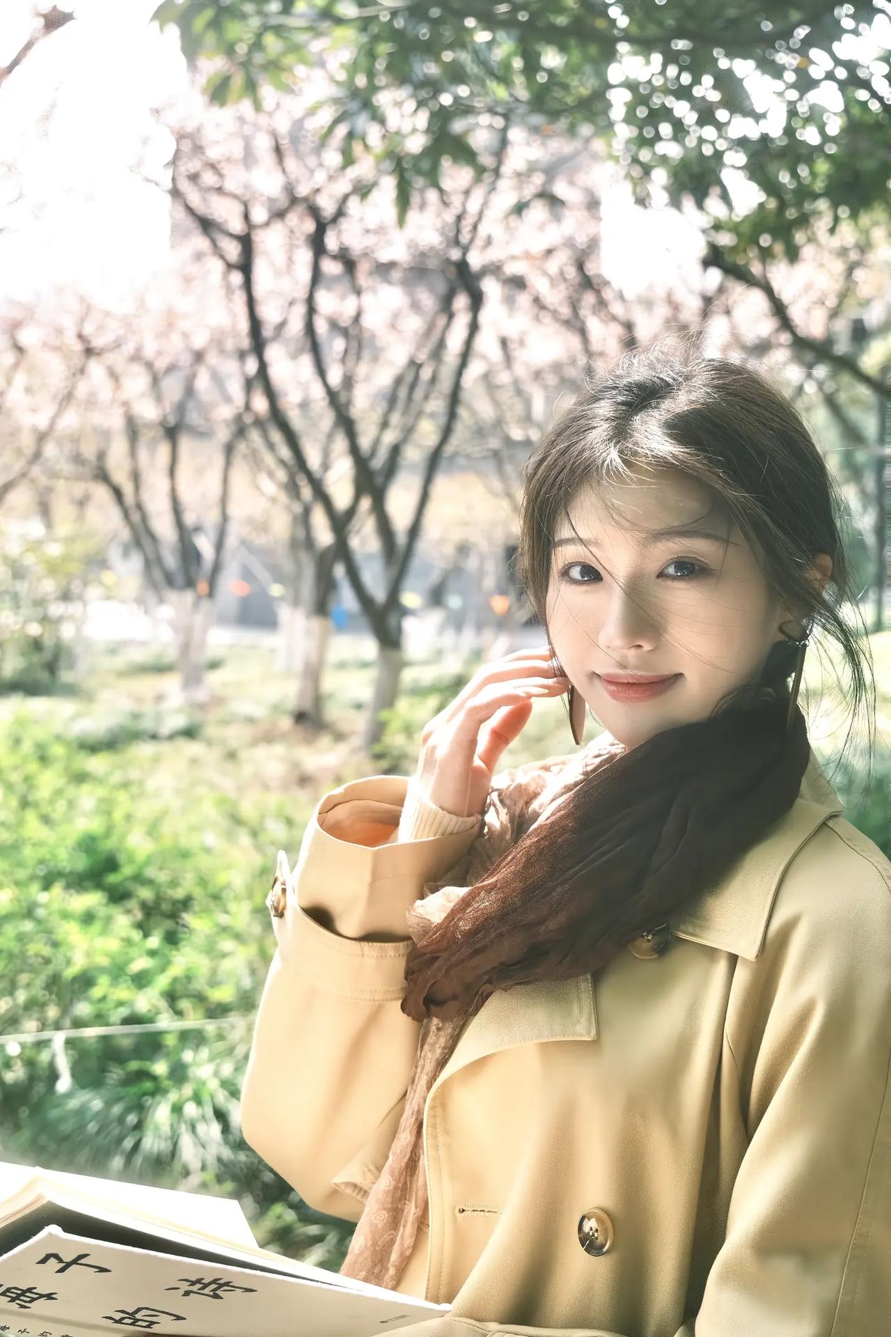 春日暖阳下,粉裙少女静坐花丛中,温柔如水。