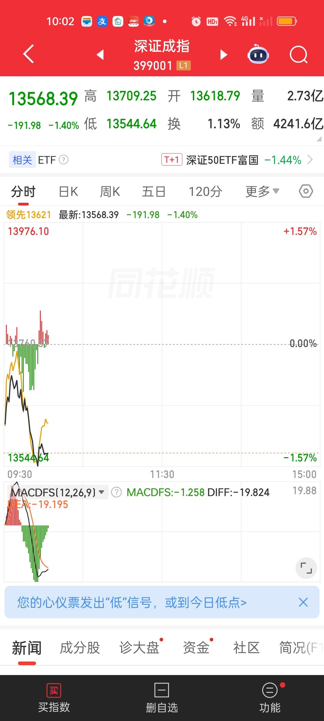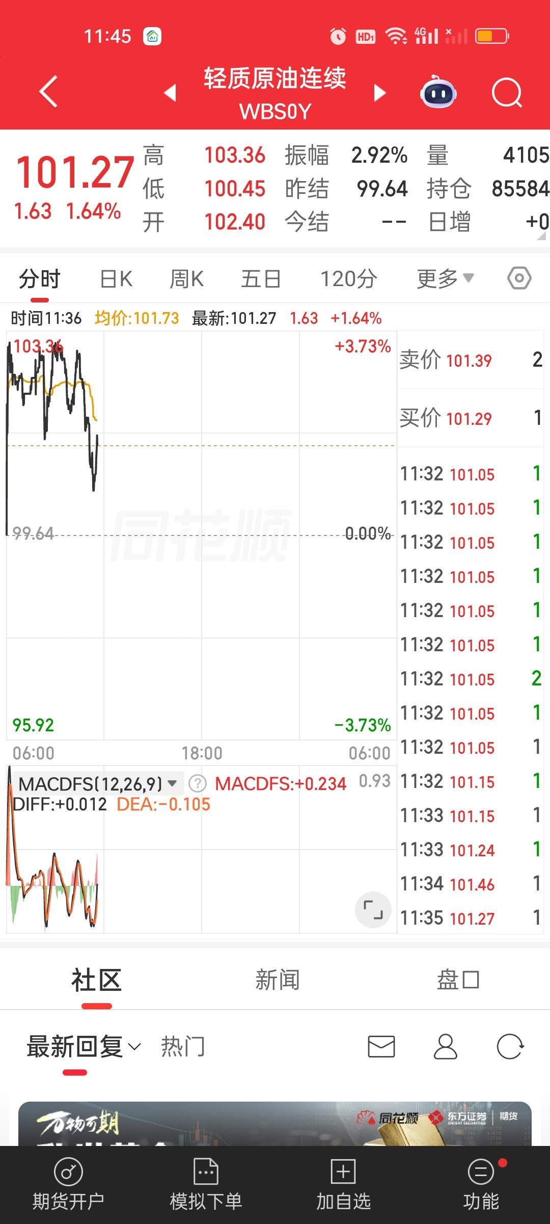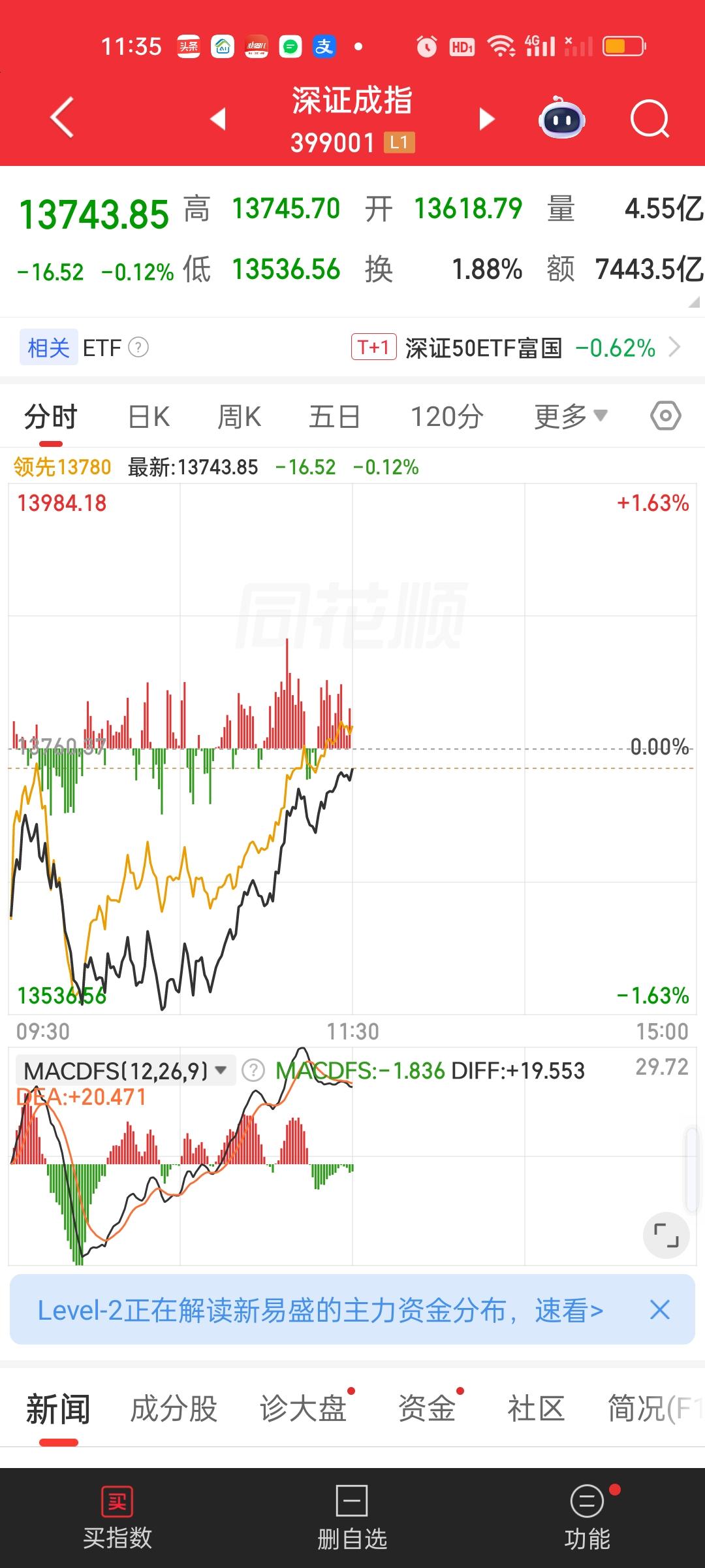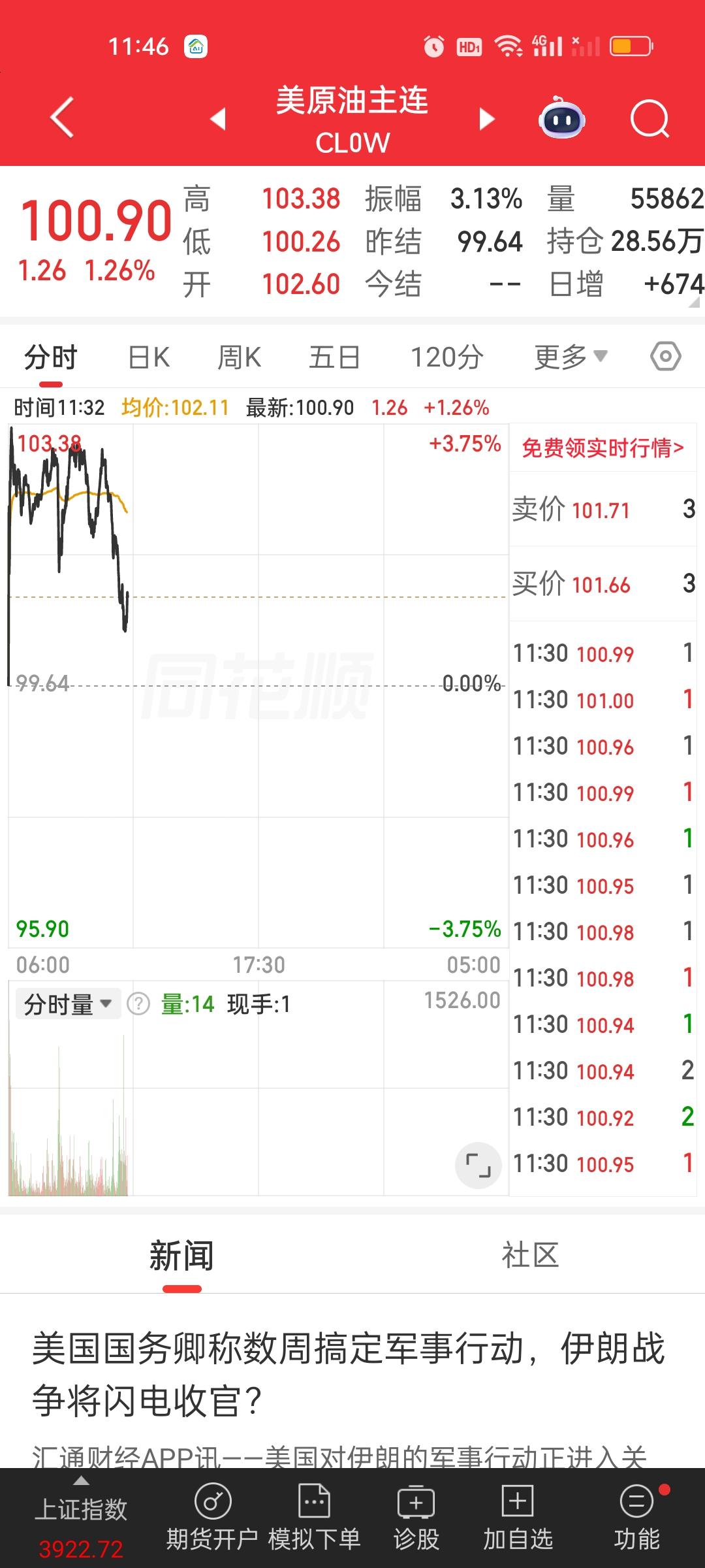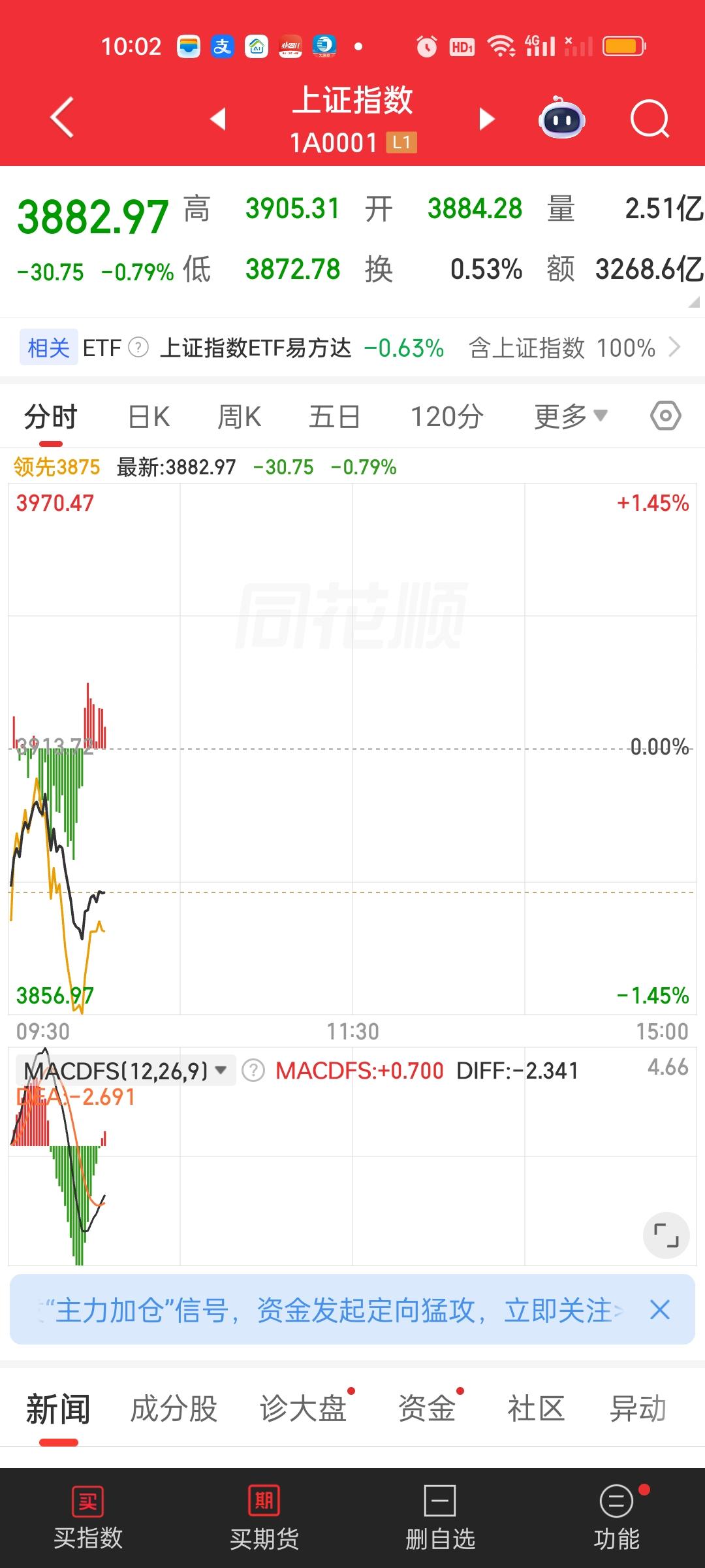 中午收盘了,成交量放量了1820亿,大盘资金净流出401.97亿,成交量相比开盘半小时是放量的状态,大盘资金也净流入了32亿,指数尾盘是爆拉的状态。说明尾盘买进的人很多。中午收盘也收到了日内最高点。这说明下午还会有高点。 但不要高兴太早,有高点不代表会维持在高点,下午下杀是肯定跑不掉的。要密切关注石油走势。上午尾盘石油有急速跳水,从涨3.75%掉到了涨0.98%。下午如果又涨到3.5%以上,指数还要掉不少。另外,很长时间没动的商业航天是今天涨得最好的板块。