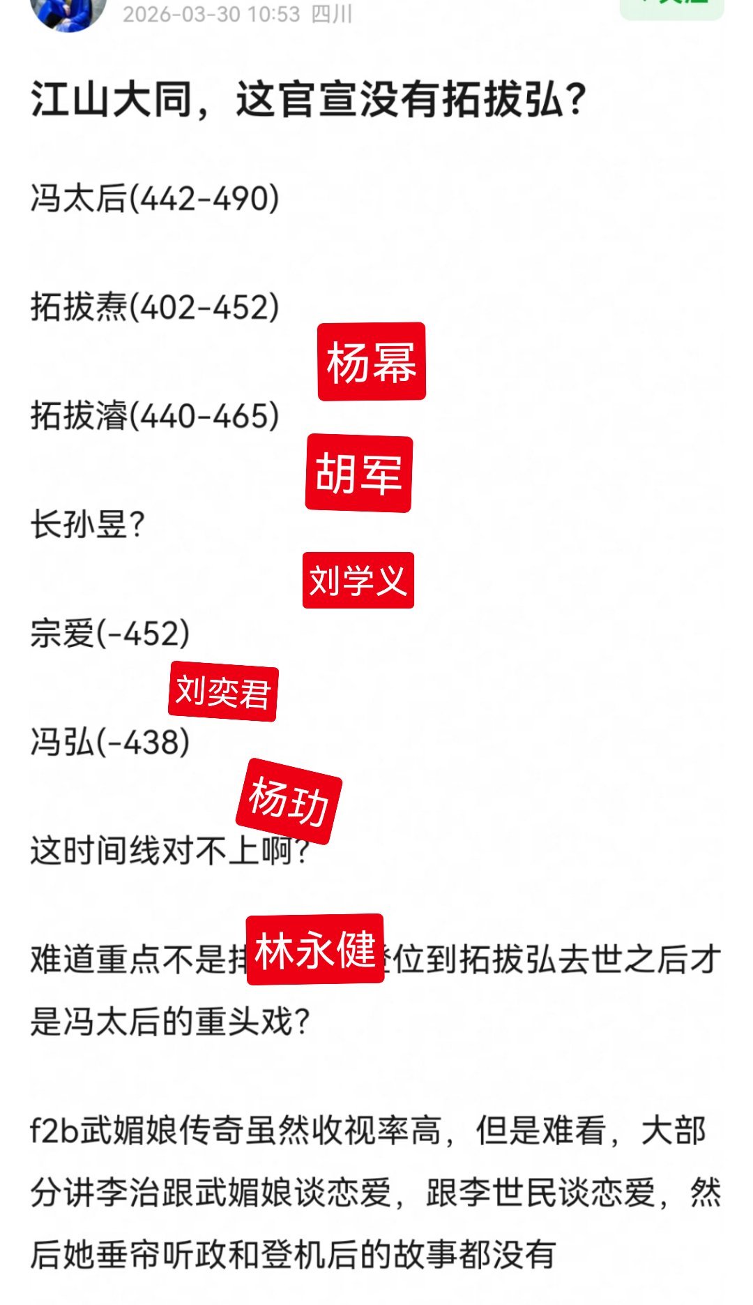 不知道编剧要怎么编才能在没有拓跋弘和拓跋宏的时间线里让冯太后主持汉化改革。