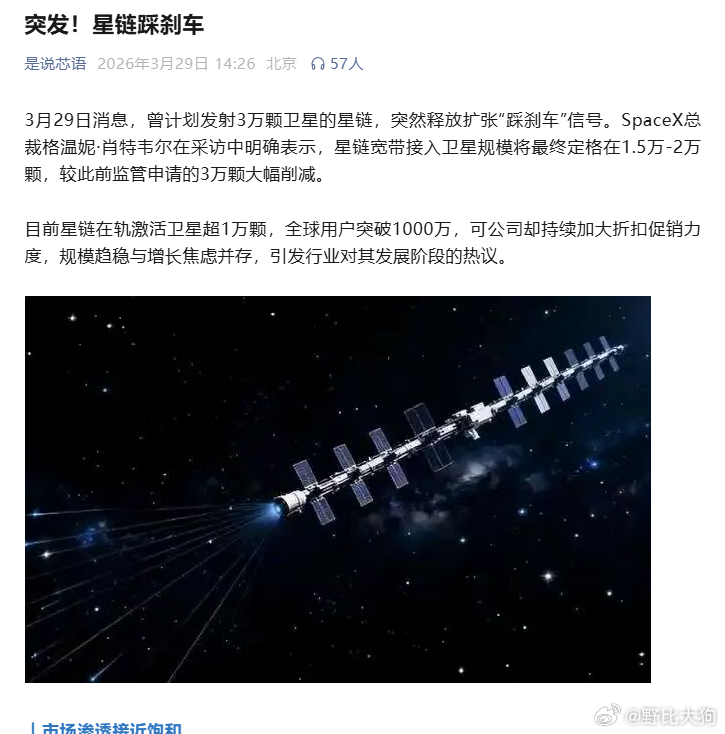 星链卫星数量规模大幅度裁减