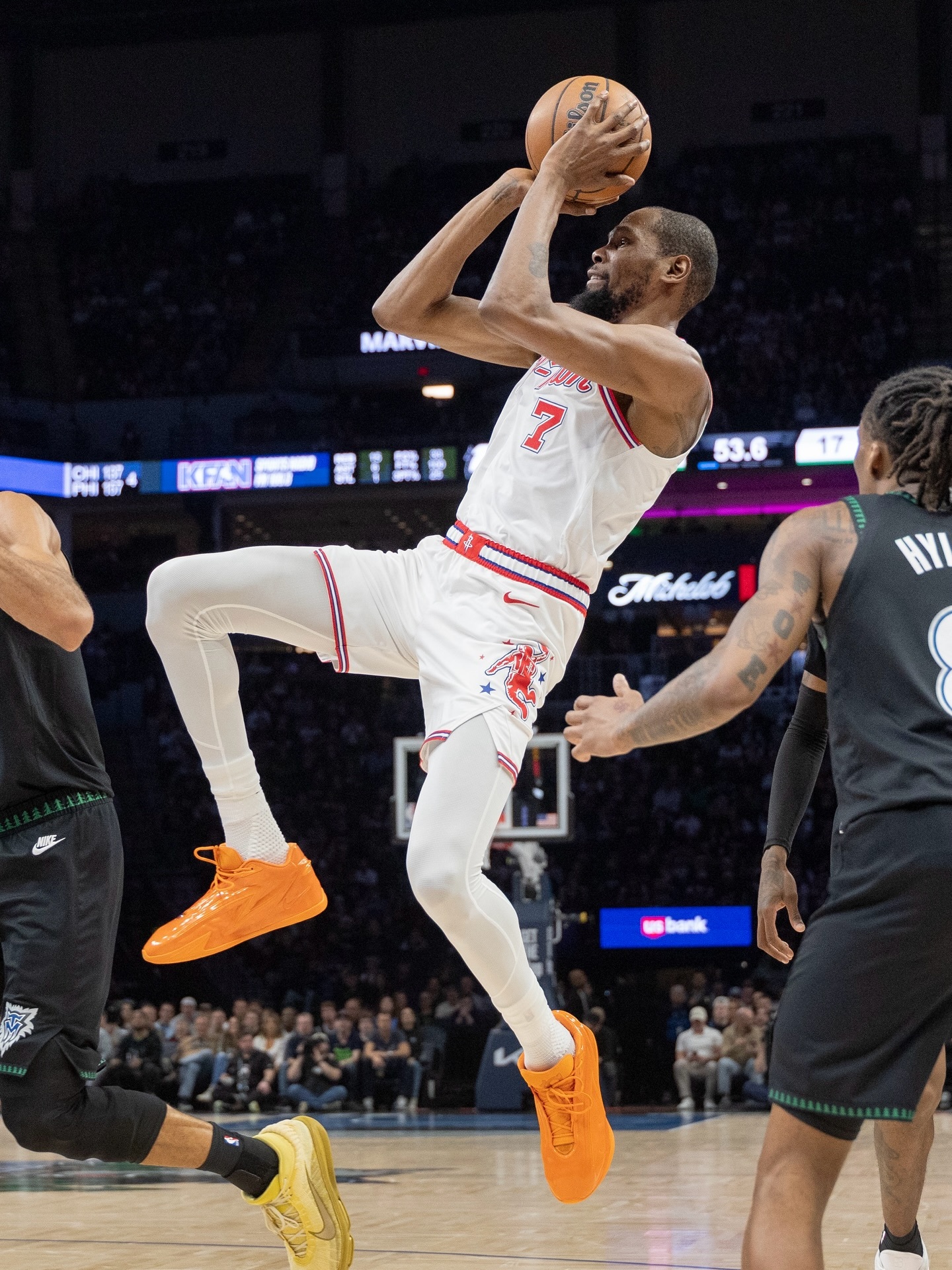 杜兰特夸张的一次试探步中投。脚踝终结者训练营