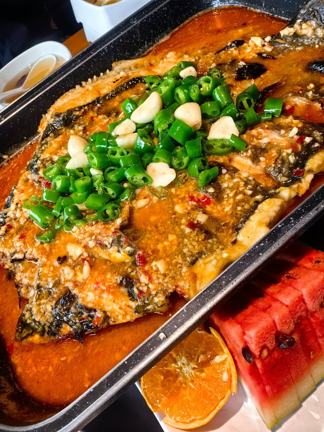 *在路上*26年春自驾游第41天...济宁了,大新说来他工作的地方吃大包子糁汤吧。哈哈,再问说吃中午还是吃烤鱼吧...蒜香的鮰鱼,微微辣,不错哟...山东济宁... 济宁·太白楼
