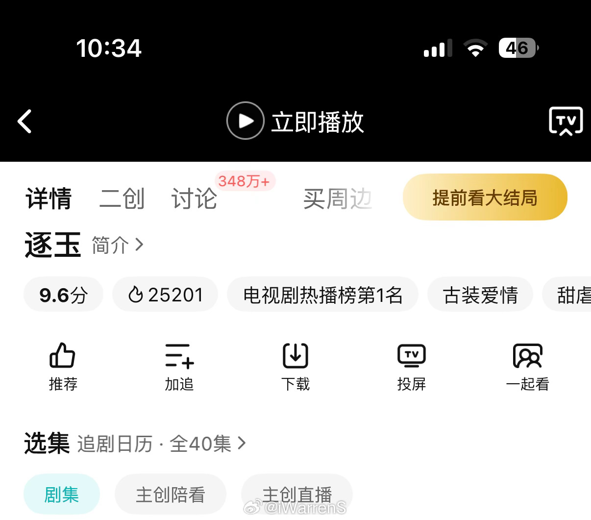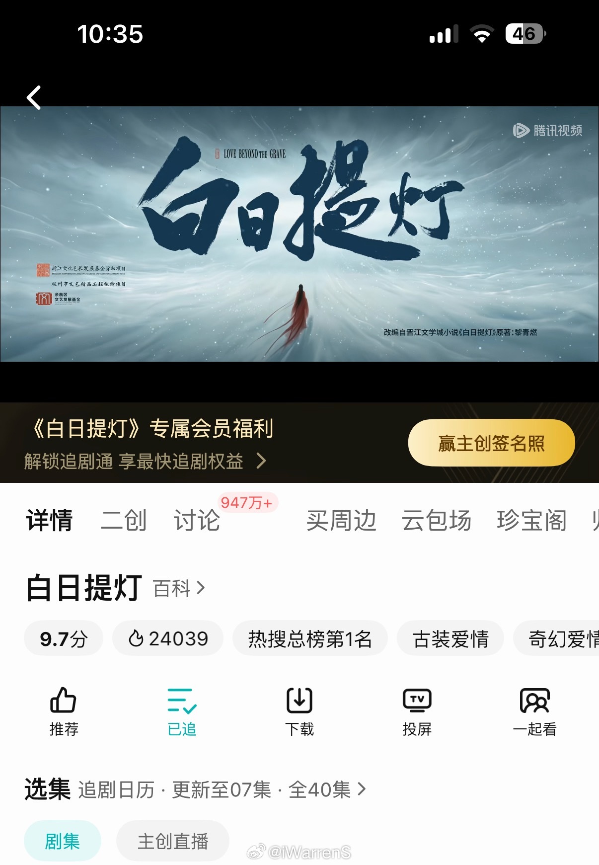 逐玉播完了40集讨论量才348w+,而白日提灯才刚播三天站内讨论量就已经947w+……白日提灯播放指数超逐玉