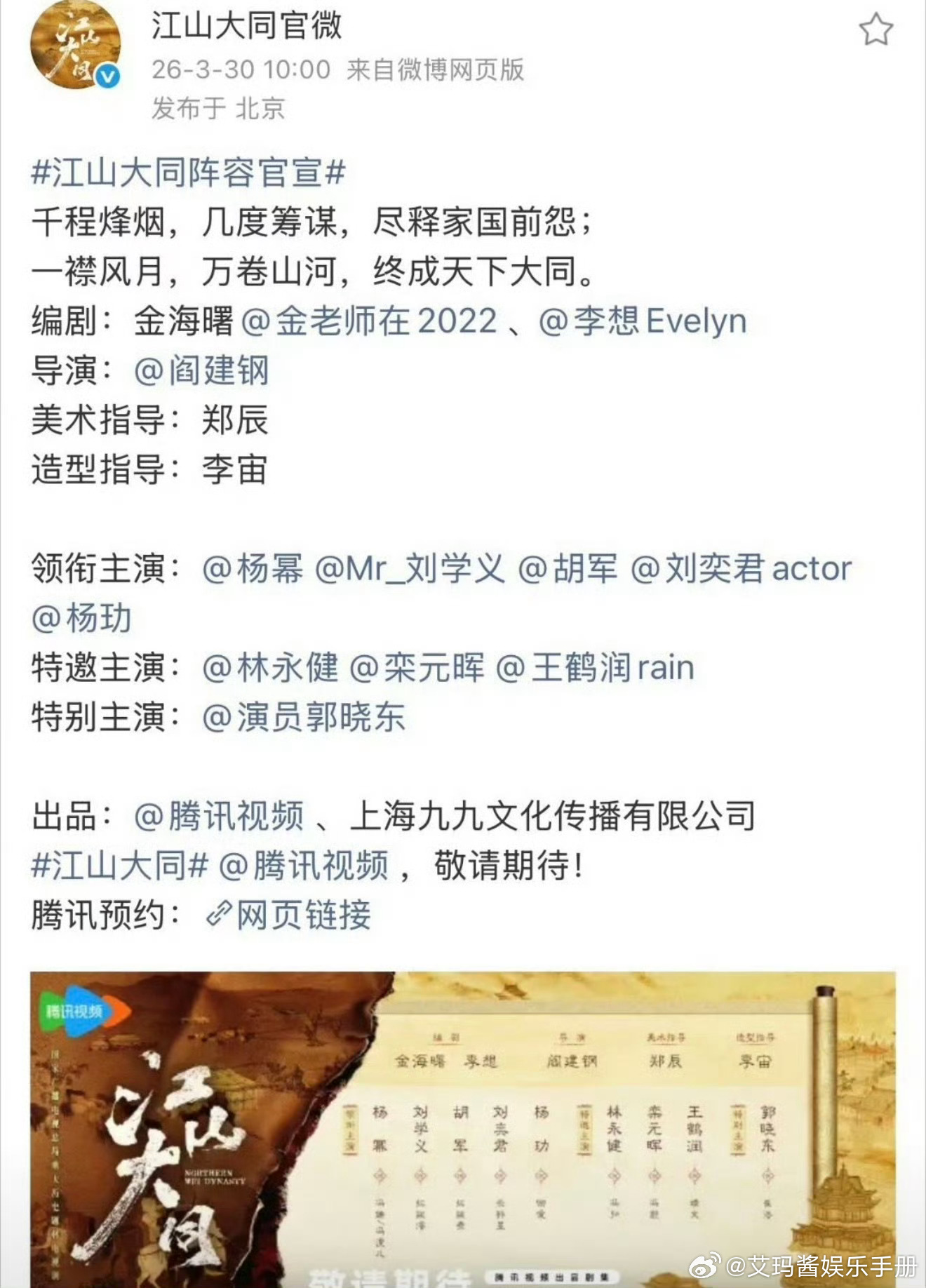 因《江山大同》官宣杨幂没有单独一行或单独官宣,现在杨幂工作室实时都是粉丝质问和维⭕江山大同
