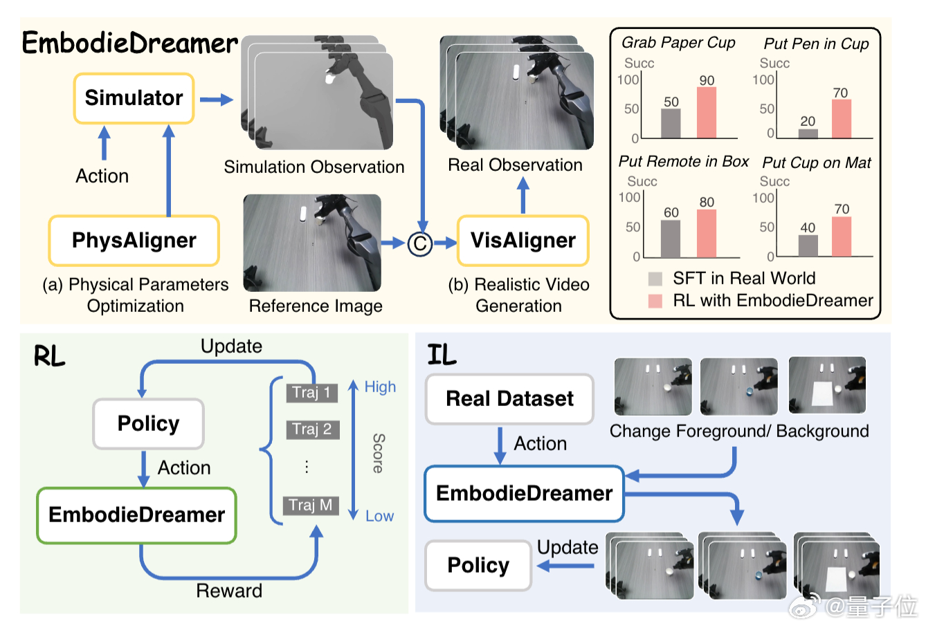也就是说,GigaWorld-1是真正的全能型具身世界模型,不仅视觉真实,而且几何精准、物理准确。