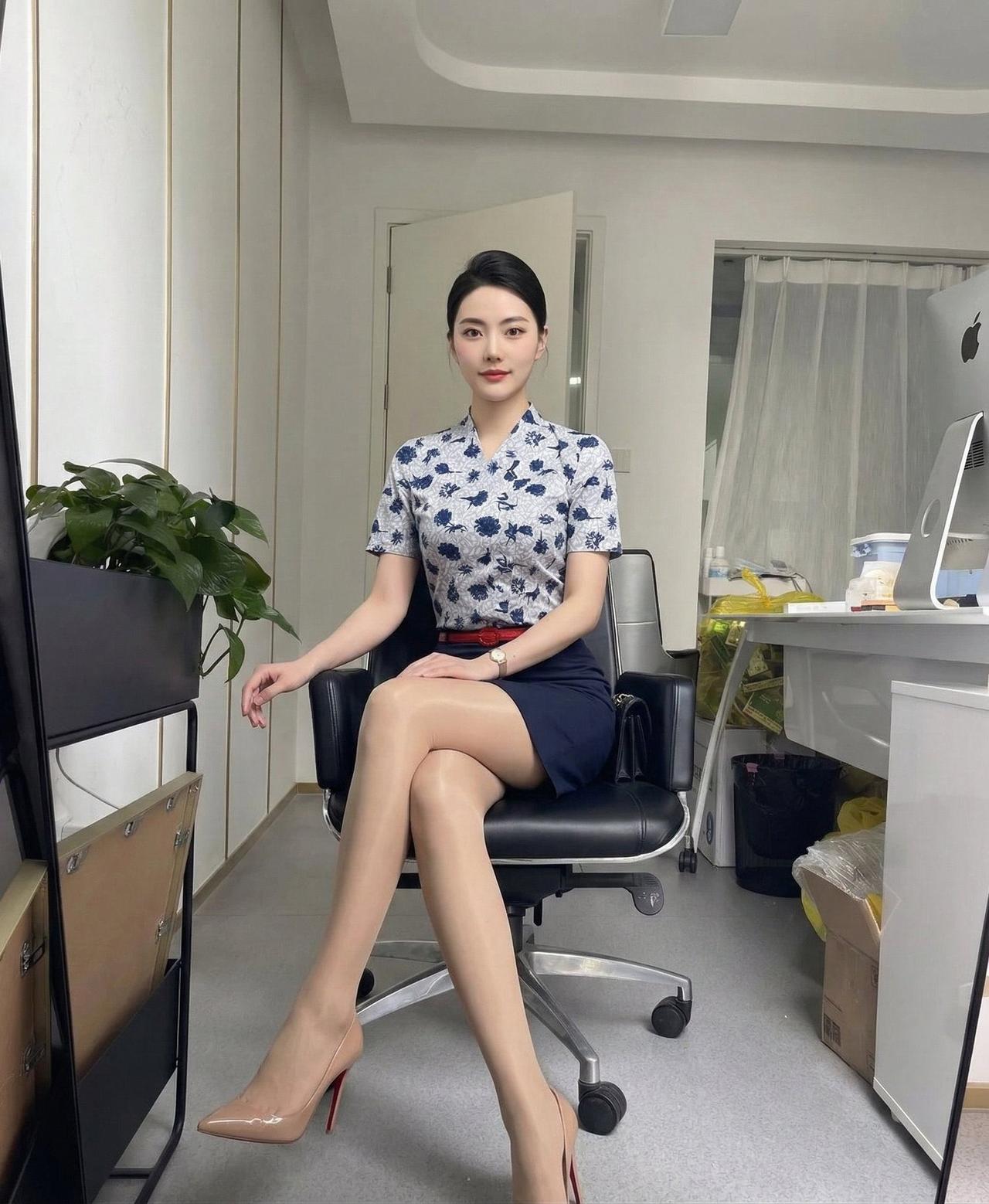 这个好像也不是东航的制服, 应该是仿品。 这个气质也不太像空姐, 有点风尘味道了。