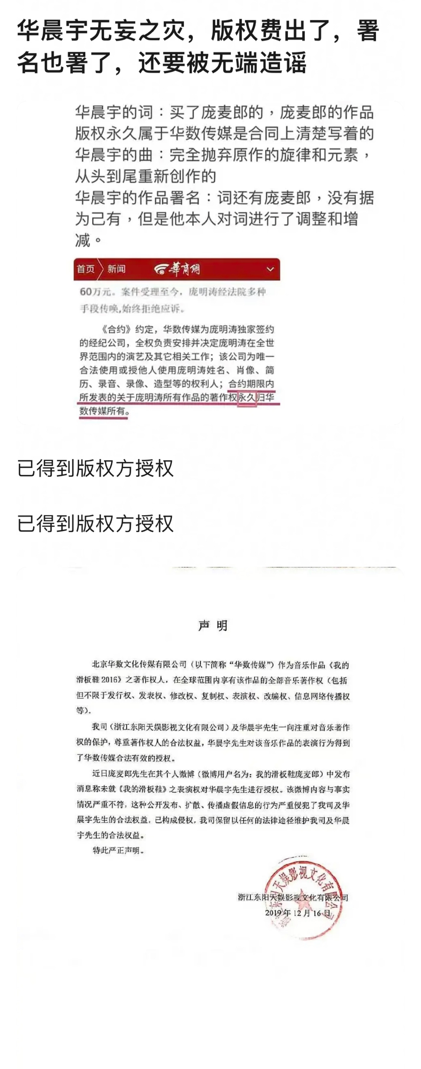 庞麦郎 华晨宇 华晨宇好惨吧,手续齐全,在滑板鞋版权方处得到授权后,因为庞麦郎本人和其经纪公司纠纷,开始造谣华晨宇方😅庞麦郎事后还向华晨宇道歉了