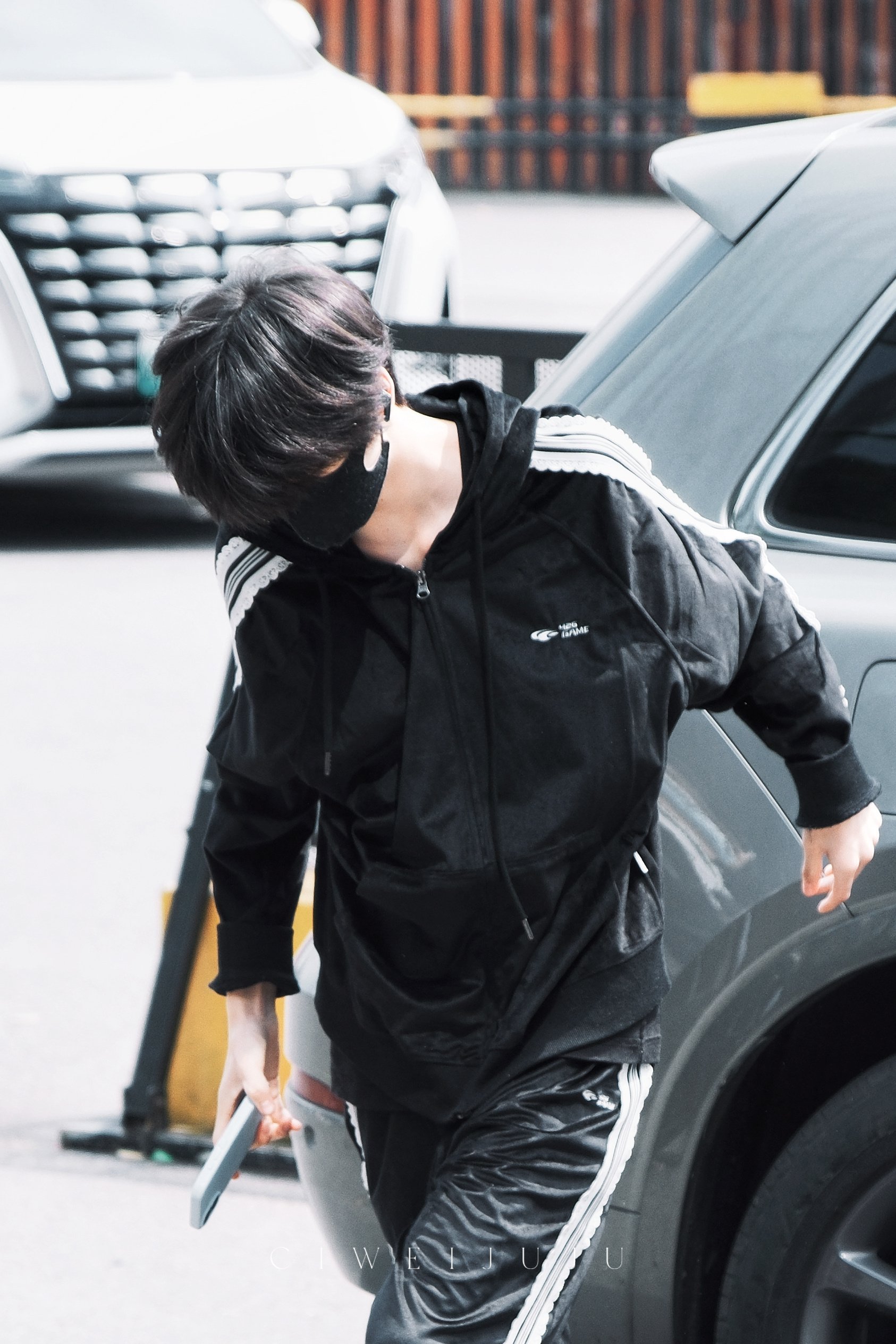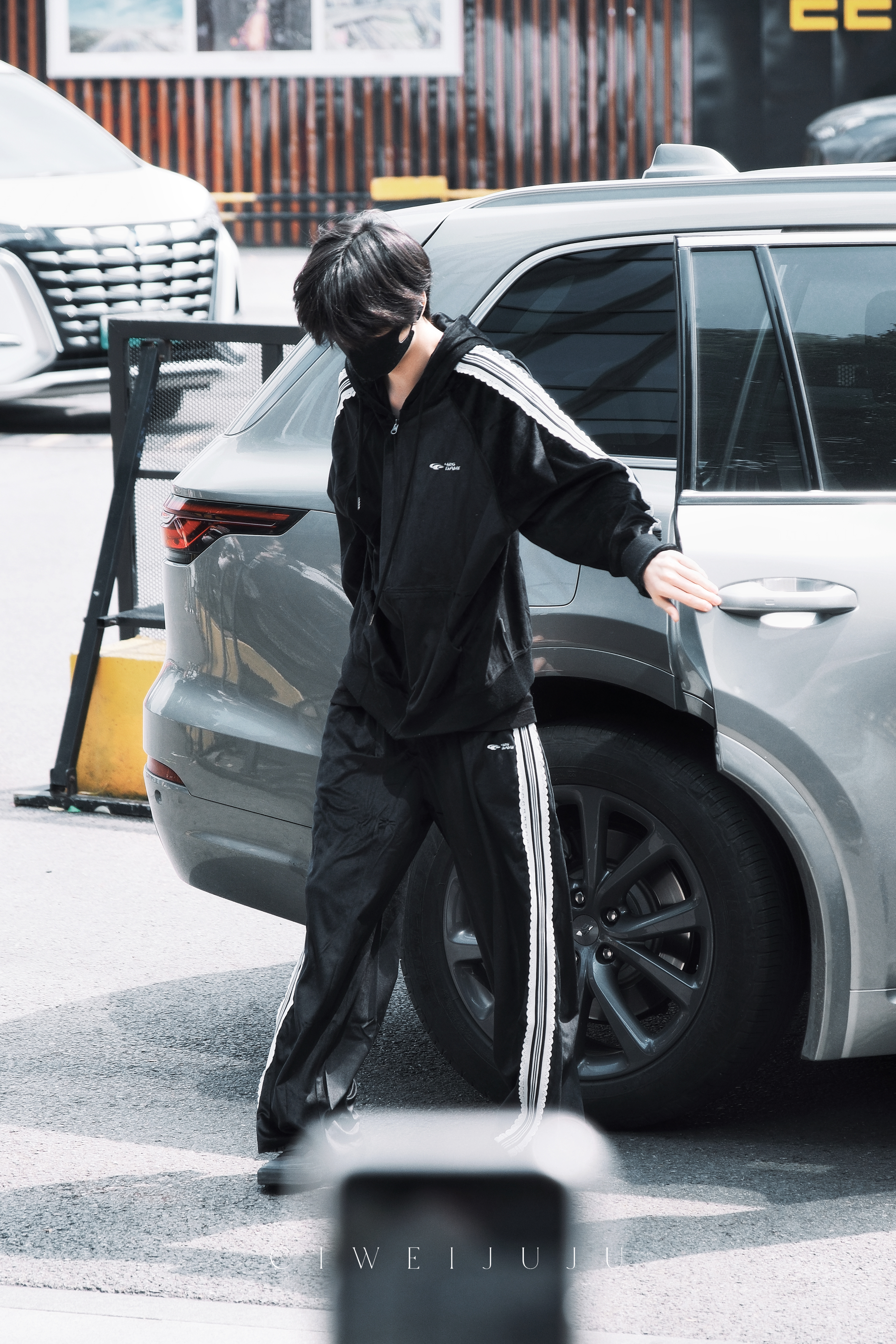 王奕AllBlackLook王奕今日下班饭拍路透ALL BLACK LOOK走路