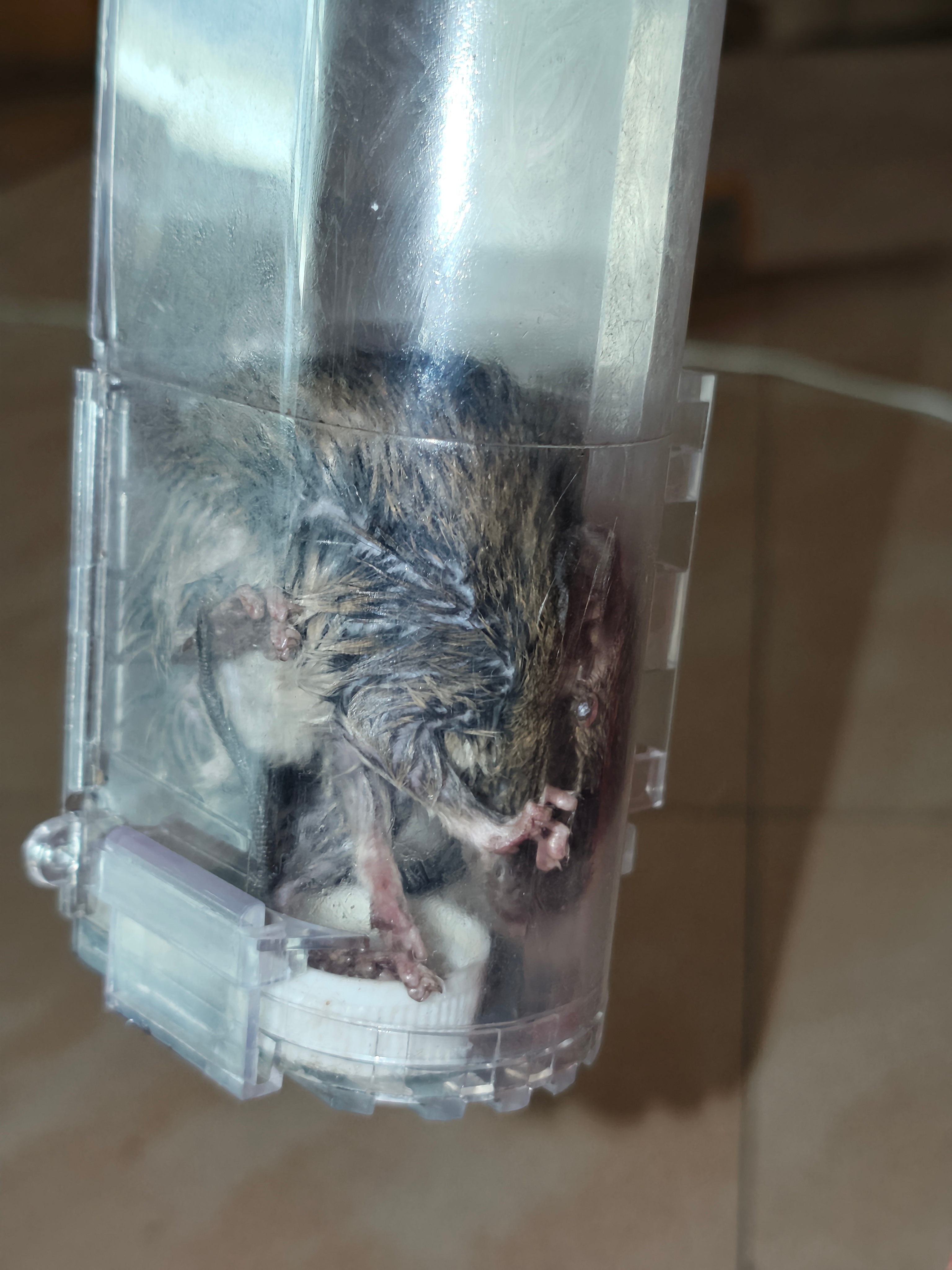 这玩意不是我们本地的老鼠,是两栖的南方物种,特点是尾巴比身体长很多,毛发尾端白色,末端金黄。擅长攀爬,飞檐走壁。