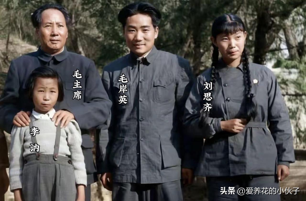 幸福的一家人 1946年1月,毛主席的长子毛岸英回到了他阔别故土10年了,在1936年他离开故土去了苏联,当他回国的第一件事就是去看望父亲,当他到了延安王家坪时,终于见到了阔别18年的父亲,从1927年5岁的他看着父亲出走,为了革命,他们这一别就是18年,在这18年时间,他经历了母亲牺牲,自己独自流浪,以及远赴苏联留学,中间多少坎坷,只有他自己知道,当他见到父亲时,所以的不开心都划为虚无! 这张合影是他们在王家坪合影的,毛岸英带着女友刘思齐和父亲以及妹妹李讷合影,留下这张珍贵合影!