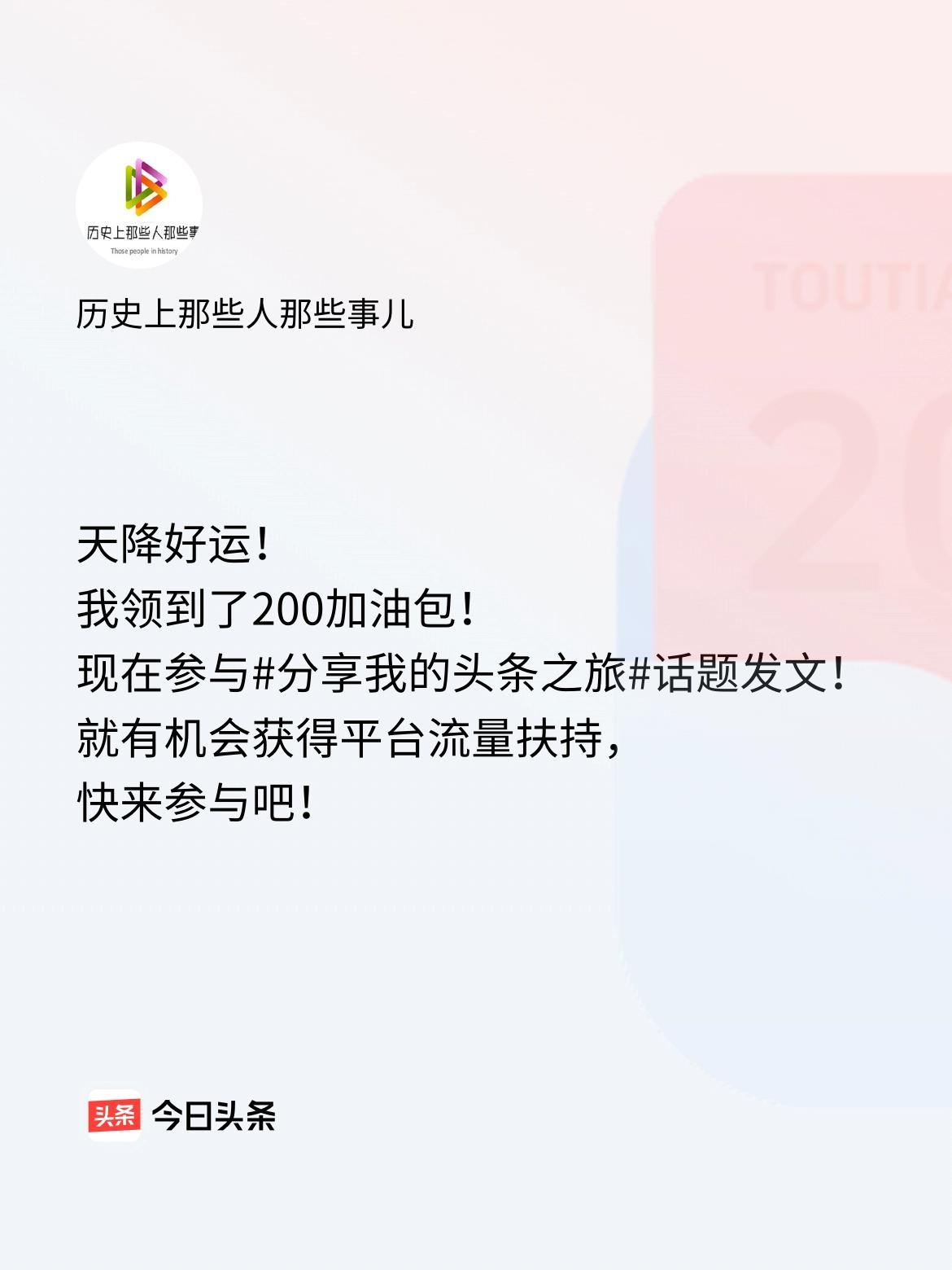 天降好运!我领到了200加油包!现在参与话题发文,就有机会获得平台流量扶持,快来参与吧!