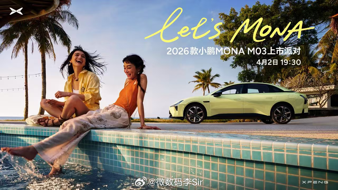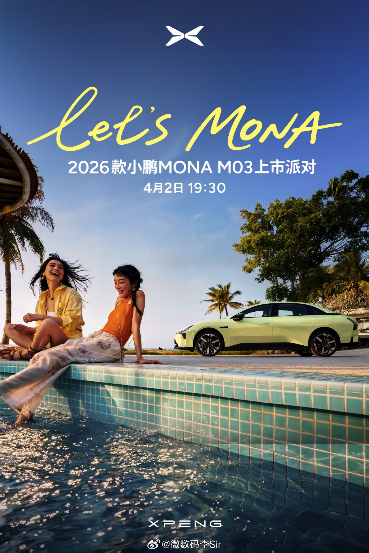 欧阳娜娜将参加小鹏MONA发布会2026款小鹏MONA M03上市派对正式定档4月2日19:30!欧阳娜娜将倾情助阵出席,作为真实的小鹏MONA车主,此前她的用车建议为2026款小鹏MONA提供了重要启发,新款在细节、色彩与体验上全面贴合年轻用户需求,实现更精致、更越级、更智能的全面升级。一场科技与春日交融的潮流盛宴即将开启,Let's MONA!2026款小鹏MONA上市定档4月2日