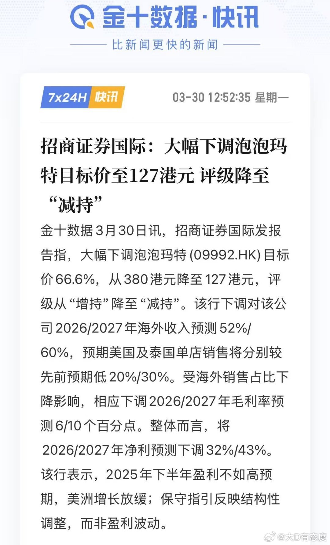 中午招商证券发研报大幅下调泡泡玛特目标价至127港币,第一次看到国内劵商分析师给这么激进的卖出评级。泡泡玛特