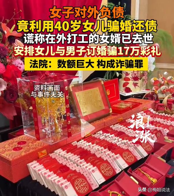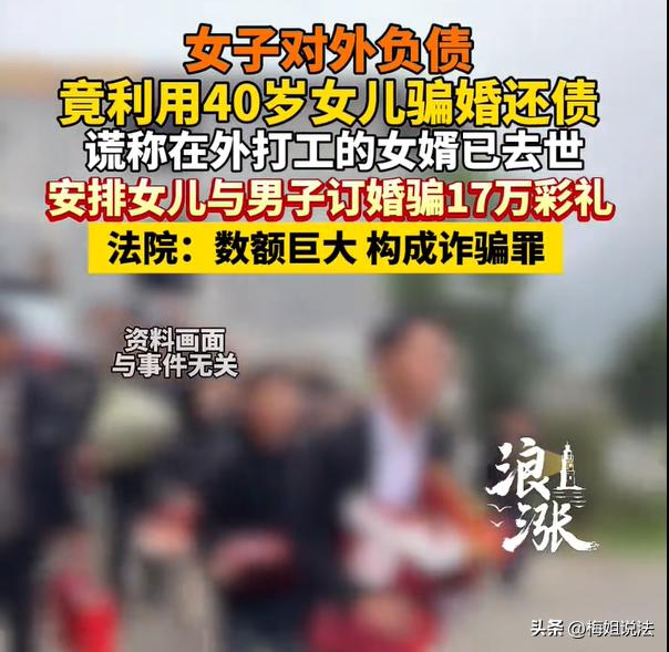 湖北咸宁,一女子欠下了不少外债,每天被电话催的头疼,她就想到利用女儿来骗钱。女婿常年在外打工很少回家,女儿年近40到还有一丝美貌,女子就准备说女儿“丈夫已死”,托人给女儿找单身男子相亲。没想到,还真的碰到一个老实人,对方表示愿意结婚,也给彩礼钱,后来女方索要金饰、改口红包等合计17万元。女子一部分用来还债,剩下的就跟女儿一起开销。 浪涨新闻3月29日报道了这则新闻。 骗子在缺钱的时候,真的什么坏脑筋都能动上,哪怕是亲情,她也毫不珍惜。 家住咸宁的一位女子朱某,因为在外面欠了不少外债,常年来,被债主要钱要的崩溃。 可惜她自己两手空空,根本无力还钱,奈何每天还是会接到各种催要电话。 正苦恼着呢,朱某不知道该去哪里搞钱了。 突然,她把坏心思动到自己女儿徐某身上了,因为徐某年纪快40岁了,也不算老的,充其量正值壮年。 而且朱某联想到,自己女儿成天在自己眼面前逛,女婿也不在家的,因为女婿出远门打工了,一年到头回不了几次家。 想到这里,朱某心想:我可以把我女儿打造成“丈夫去世”的人设啊,给她再安排一门亲事,收些彩礼钱。 这不,钱不就来了嘛! 跟女儿徐某一商议,这个徐某还挺听妈妈的话,表示愿意配合她这样做。 主意已经敲定,朱某还真的去找了个媒婆,跟对方说,自己的女儿徐某命苦,丈夫也走了,一直就一个人过活,希望她可以帮忙再找个合适的人家。 媒婆一听,还真的很乐意帮忙,找到一位姓华的男士。对方先是对徐某的“悲痛遭遇”很同情,另外还表示,愿意迎娶徐某。 就这样,徐某跟华先生,真的就开始谈婚论嫁了。 在朱某的撺掇下,她让女儿徐某找华先生要钱、要红包、要改口费、要黄金首饰、要彩礼钱,合计17万元。 华先生心想:反正两个人迟早走到一起,迟早都是夫妻俩,这些钱迟早也都是徐某的,他是非常乐意开销,很愉快的就把钱转给了徐某。 看到钱,朱某母女俩心里真的乐开了花。 之后,朱某就先拿钱把自己的外债给还清了,剩下的钱,则母女俩一起开销,购买各类生活用品等。 可是,这件事就这样结束了吗? 拿钱可以啊,这婚得结啊。谁料想,徐某一直搪塞,怎么也不肯跟华先生去领证,这下,就引发了华先生一家的怀疑。 华先生一家赶到了徐某老家,在跟村里人一打听才知道,这个徐某早就结婚了啊,而且还在婚姻的存续中,老公也没死,只不过在外打工呢! 得知自己被欺骗,华先生立刻就报了警,朱某母女俩很快也就被抓捕归案。 在一番审判之后,母女俩均被判了刑。朱某被判有期徒刑3年5个月;徐某属于从犯,依法被判1年10个月。 这份案件,属于母女俩合谋骗婚。 母亲编造女儿丧偶,安排婚事并且骗取男方17万元的彩礼钱,已经构成了诈骗罪。 根据《刑法》第二百六十六条规定,编造事实、捏造故事,试图非法占有他人财物,已经构成诈骗罪,并非普通婚恋纠纷。 另外,骗取的17万元,已经远超“数额巨大”的标准,犯此罪,会被处以3年以上、10年以下有期徒刑。 另外,在本案件中,母女俩分工明确,刑罚有别。 主犯母亲,朱某。她涉嫌策划整个骗局,虚构事实,收款分配,在审判时被认定为属于主犯,起到组织、指挥的作用,被判有期徒刑3年6个月。 从犯女儿,徐某。她属于从犯,配合母亲的计划,出演寡妇一个角色,参与欺骗,起到辅助作用,依法从轻处罚,被判处有期徒刑1年10个月。 本案的法律依据是,骗婚并不是“家务事”,而是刑事犯罪。根据《刑法》第二十六条、第二十七条,主犯按照其所参与的全部犯罪处罚,从犯从轻、减轻或者免除处罚,按照诈骗案件的原则去处理。 不要认为“彩礼纠纷”指示普通的民事问题,一旦涉嫌到,要非法占有他人的财物,虚构婚姻事实,以此去骗取钱财,必定就会触碰刑法红线。 如果出现这类情感纠纷,发现异常就要及时报个警,避免陷入“人财两空”的困境。 看完此案,大家都作何感受呢,欢迎评论区讨论。