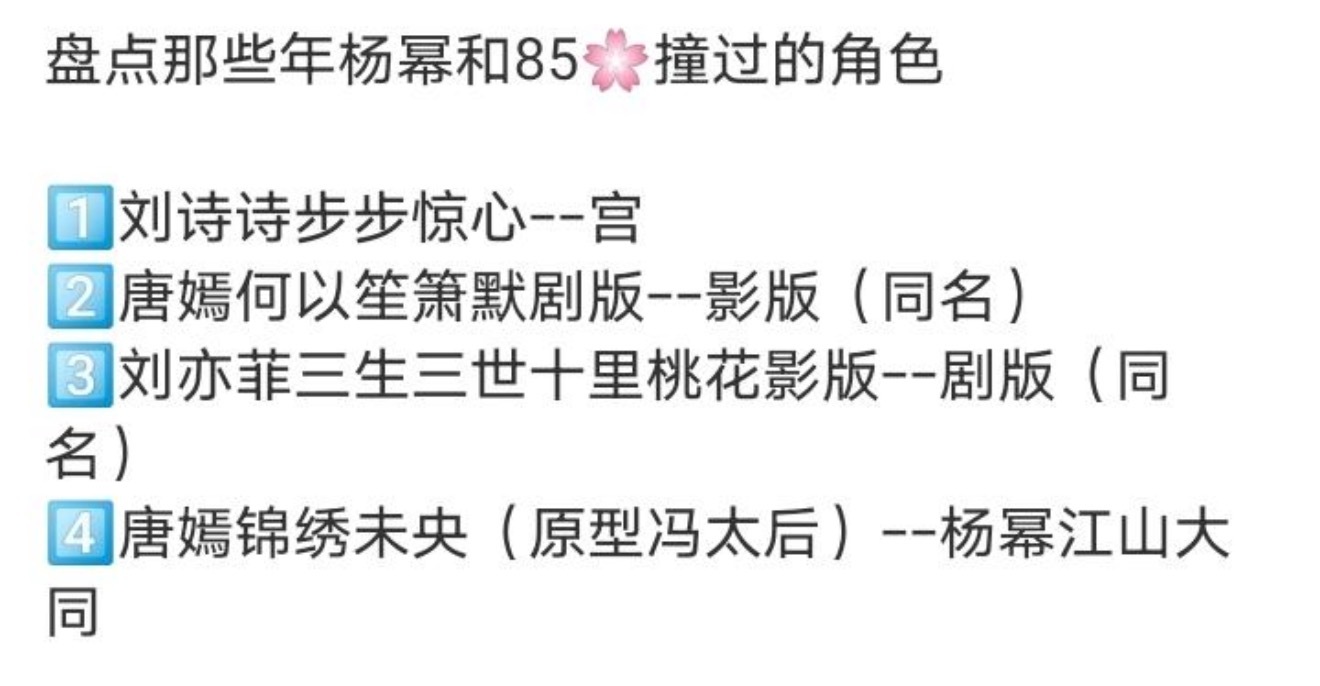 杨幂和别的85花演过很多类似的角色诶