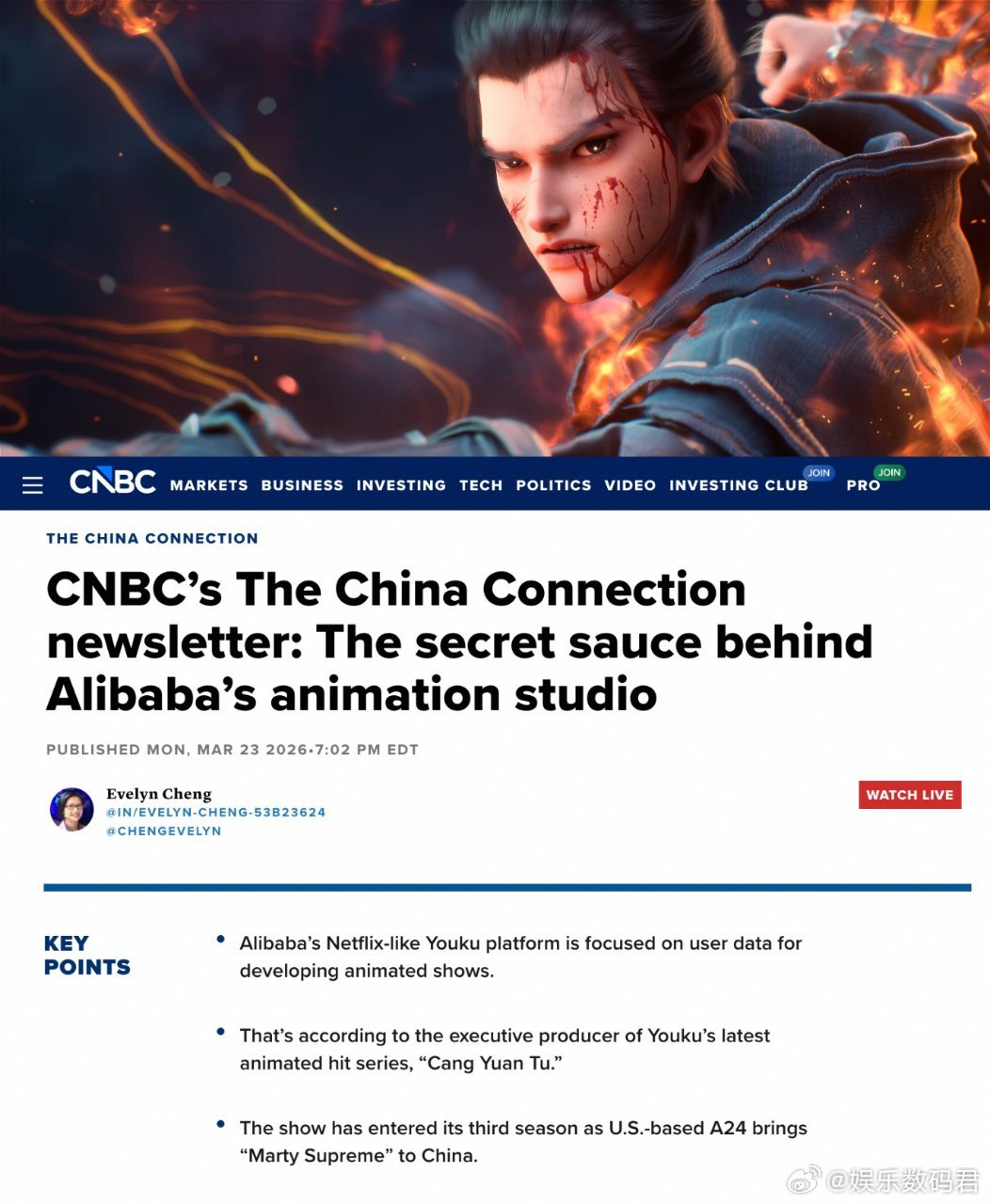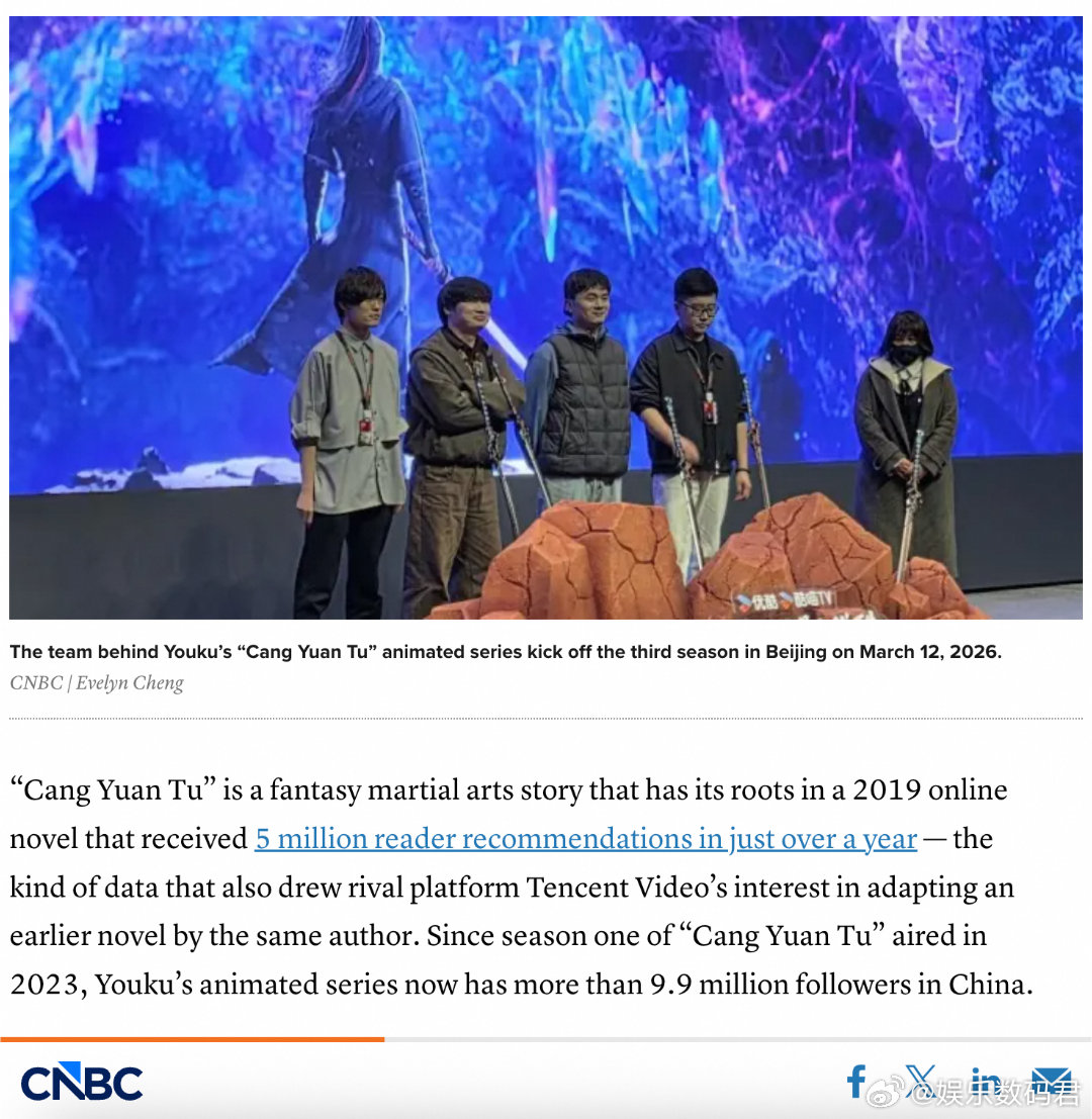 美国权威媒体报道国漫沧元图国漫之光!《沧元图》被CNBC首页报道,水墨国风与精彩故事圈粉欧美,多国大屏轮番预热,海外观众催更不停,坐等第三季热血开播。