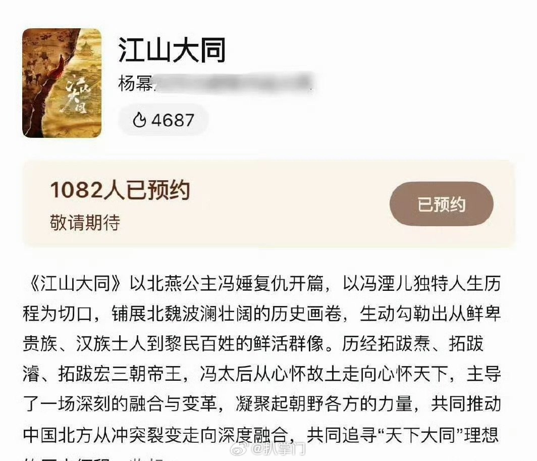 杨幂江山大同故事梗概杨幂选剧本的眼光,也是好起来了!电视剧《江山大同》今日官宣后。杨幂饰演女主冯太后,从《江山大同》的故事梗概来看,杨幂又能靠这部剧,把口碑和观众缘挣回来了啊,侯燥开机啦~江山大同女主人设