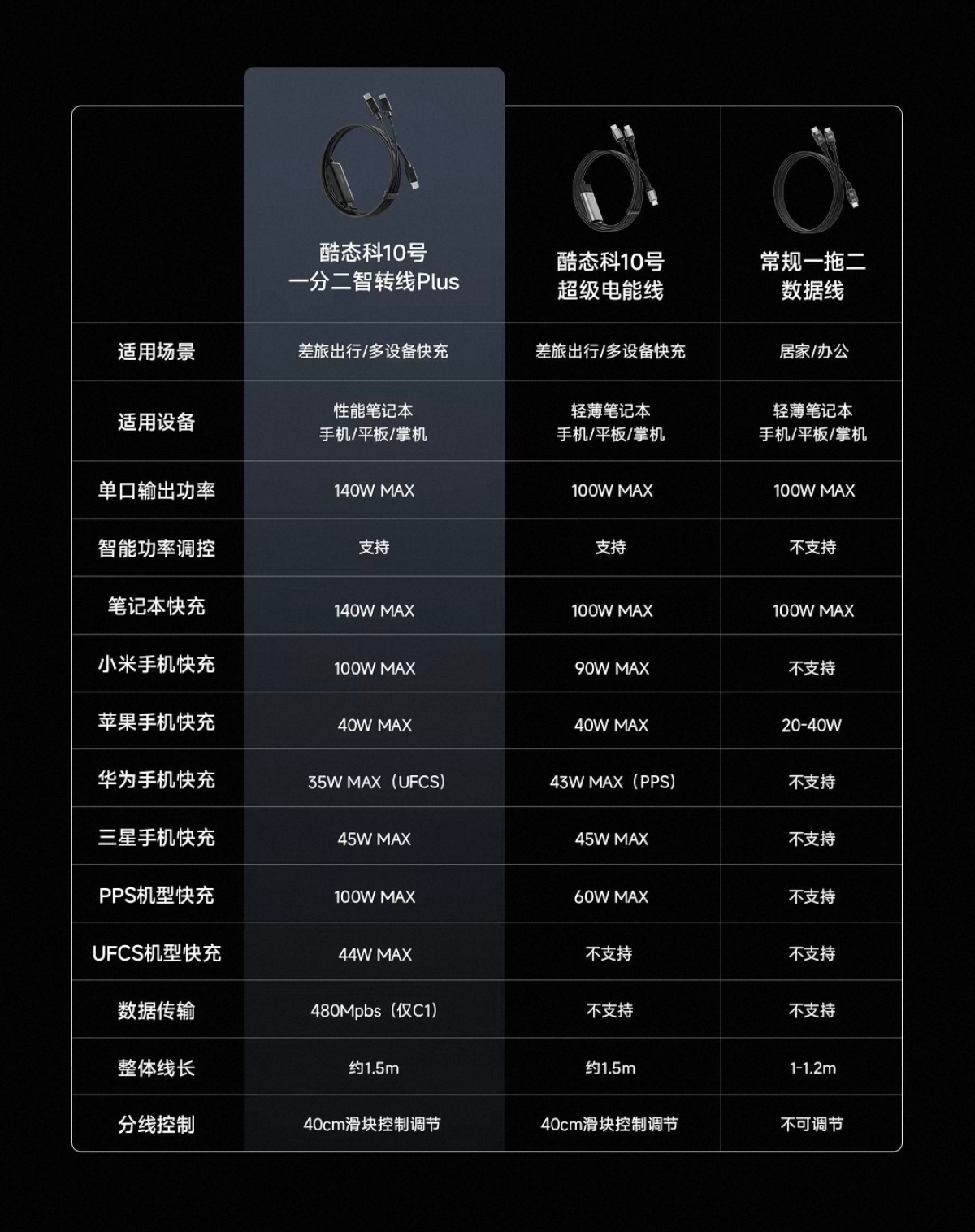 好物安利,cuktech酷态科 10号超级电能线Plus(一拖二)1.5m。