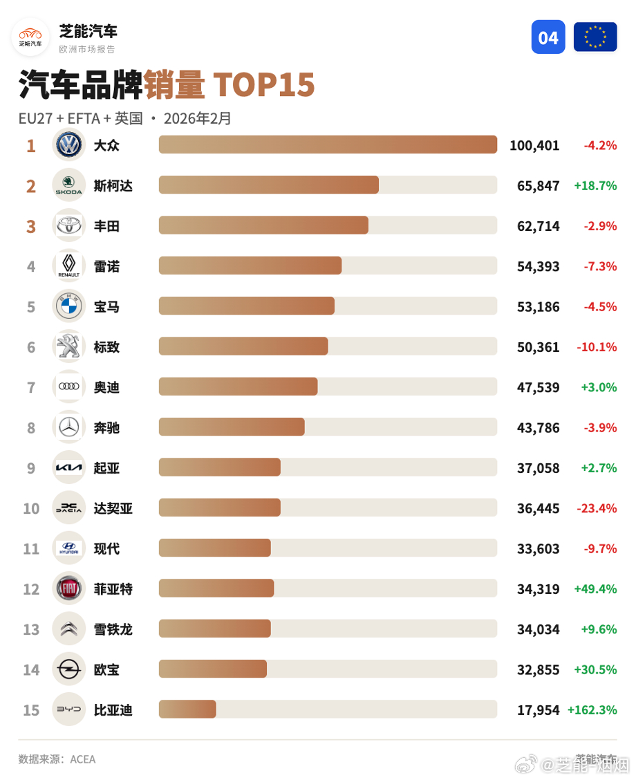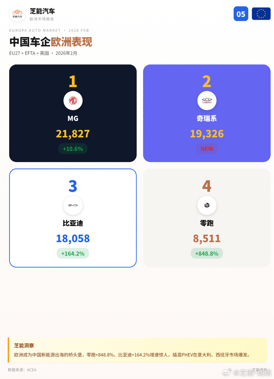 纯电整体体量稳步抬升,混动依旧是现阶段市场核心支撑,燃油车型保持持续收缩趋势。车企格局同步变化,国产品牌在欧洲的增长势头亮眼,存在感稳步提升,欧洲也长期维持多元过渡的电动化节奏。