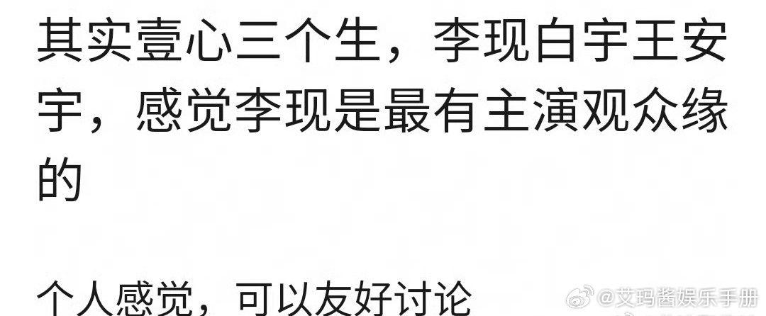 壹心三位男星:李现白宇王安宇,你觉得谁最有观众缘?