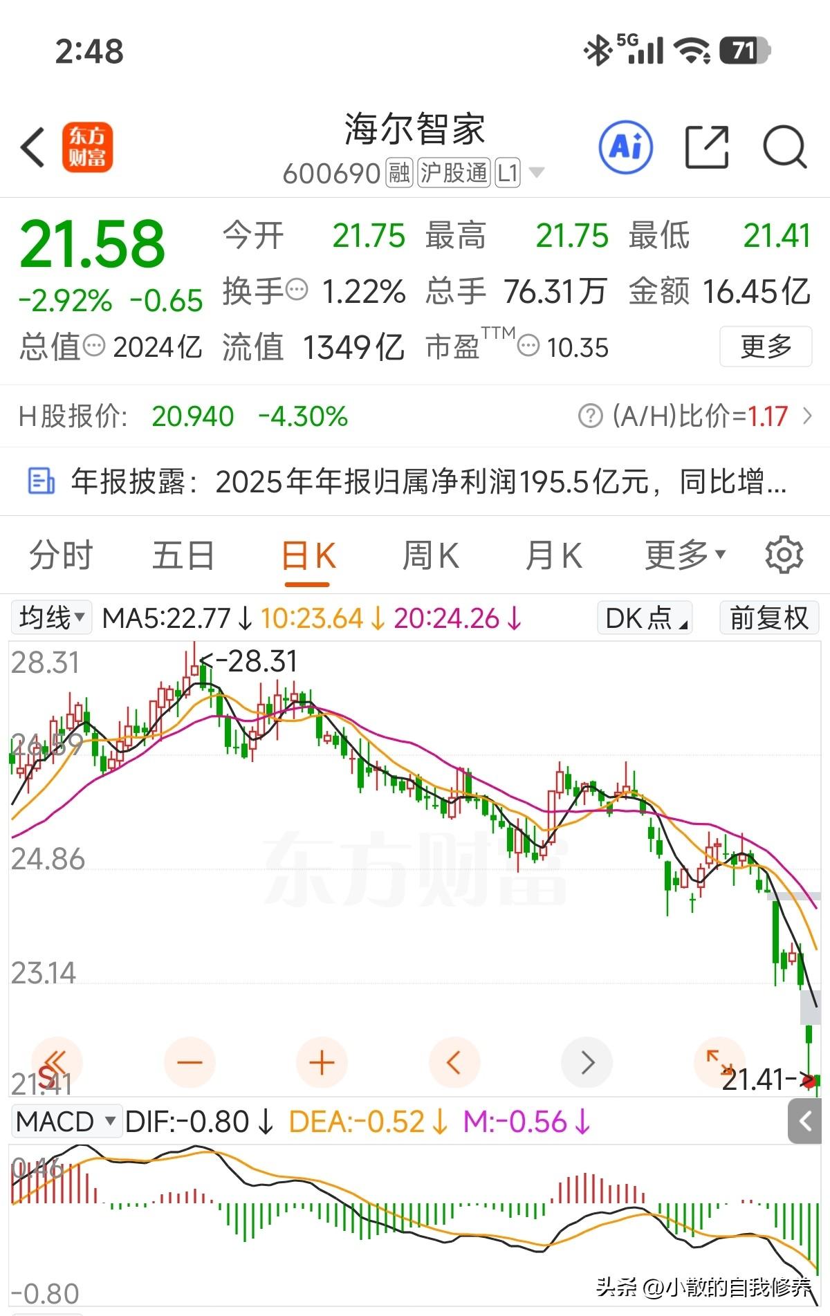 其实海尔的海外业务占比高,短期受汇率影响大,但长期看全球化布局反而是优势,市场有点反应过度了